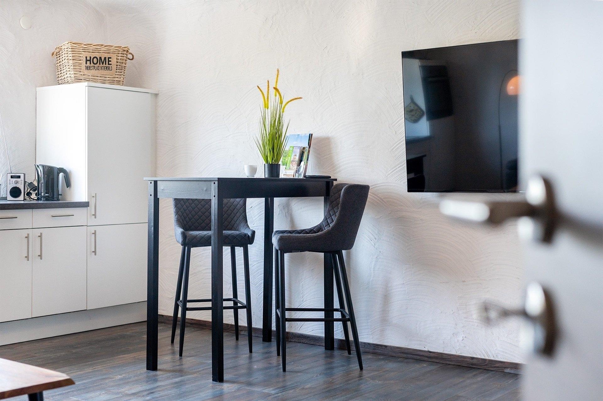 Die Ferienwohnung mit ihrem extravaganten Schnitt und dem imposanten Rundbogenfenster bietet einen Ausblick auf den idyllischen Badesee Tannenhausen. Ein Ort, der durch seine Faszination für Entspannung und Erholung bekannt ist.Das kompakte Schlafzimmer mit Dachschräge dieser behaglichen Wohnung ist mit einem gemütlichen Boxspringbett ausgestattet, das geradezu zum Verweilen einlädt. Ein geräumiger, vom Wohnzimmer aus zugänglicher, begehbarer Kleiderschrank und stilvolle Nachttische mit sanften Nachtlampen vervollständigen das behagliche Ambiente.Der offene Wohnzimmer- und Küchenbereich ist einladend gestaltet und bietet eine voll ausgestattete Küche mit modernsten Geräten wie Cerankochfeld, Backofen, Kühlschrank, Gefrierfach und Geschirrspüler. Eine klassische Kaffeemaschine sowie eine Kaffeepadmaschine (Senseo) stehen für die Zubereitung von Kaffeespezialitäten bereit. Ein Bartisch mit zwei bequemen Hockern verleiht dem Raum eine besondere Atmosphäre.Das Herzstück des Wohnzimmers ist zweifellos das großzügige, gemütliche Sofa, das zum Entspannen und Verweilen einlädt. Ein hochauflösender 65 Zoll Smart-TV und eine zeitgemäße Einrichtung runden das Wohlfühlambiente ab und garantieren einen erholsamen Aufenthalt.Im Badezimmer erwartet die Gäste ein komfortabler und geräumiger Bereich, der keine Wünsche offen lässt. Eine großzügige Dusche sowie eine entspannende Badewanne sorgen für ein rundum angenehmes Wohlbefinden.Die Wohnung befindet sich im zweiten Obergeschoss und ist bequem und barrierearm mit einem Aufzug erreichbar. Hunde sind in dieser Wohnung herzlich willkommen, und es besteht die Möglichkeit, bis zu zwei Hunde unterzubringen oder individuelle Anfragen zu stellen.Für zusätzlichen Komfort stehen eine Waschmaschine und ein Trockner gegen Gebühr im zweiten Stockwerk zur Verfügung. Ein abschließbarer Abstellraum für Fahrräder und E-Bikes mit Ladestationen ist ebenfalls vorhanden, um den Aufenthalt der Gäste noch angenehmer zu gestalten.Die Zufriedenheit und das Wohlbefinden unserer Gäste, insbesondere Familien, liegen uns sehr am Herzen. Auf Wunsch stellen wir gerne kostenfreie Babybetten mit passender Bettwäsche, Wickelkommoden, Babybadewannen, Rausfallschutz und Tritthocker zur Verfügung, um den Aufenthalt für Eltern und ihre Kleinen so angenehm wie möglich zu gestalten.Darüber hinaus bieten wir in unserem Abstellraum kostenfrei Bollerwagen zur Ausleihe an, damit Familien bequem ihre Ausflüge in die Umgebung oder zum nahegelegenen Strand unternehmen können. Unsere Gäste sollen sich bei uns wie zu Hause fühlen und einen unbeschwerten Urlaub genießen können, ganz gleich, ob sie als Familie oder in anderer Konstellation anreisen.