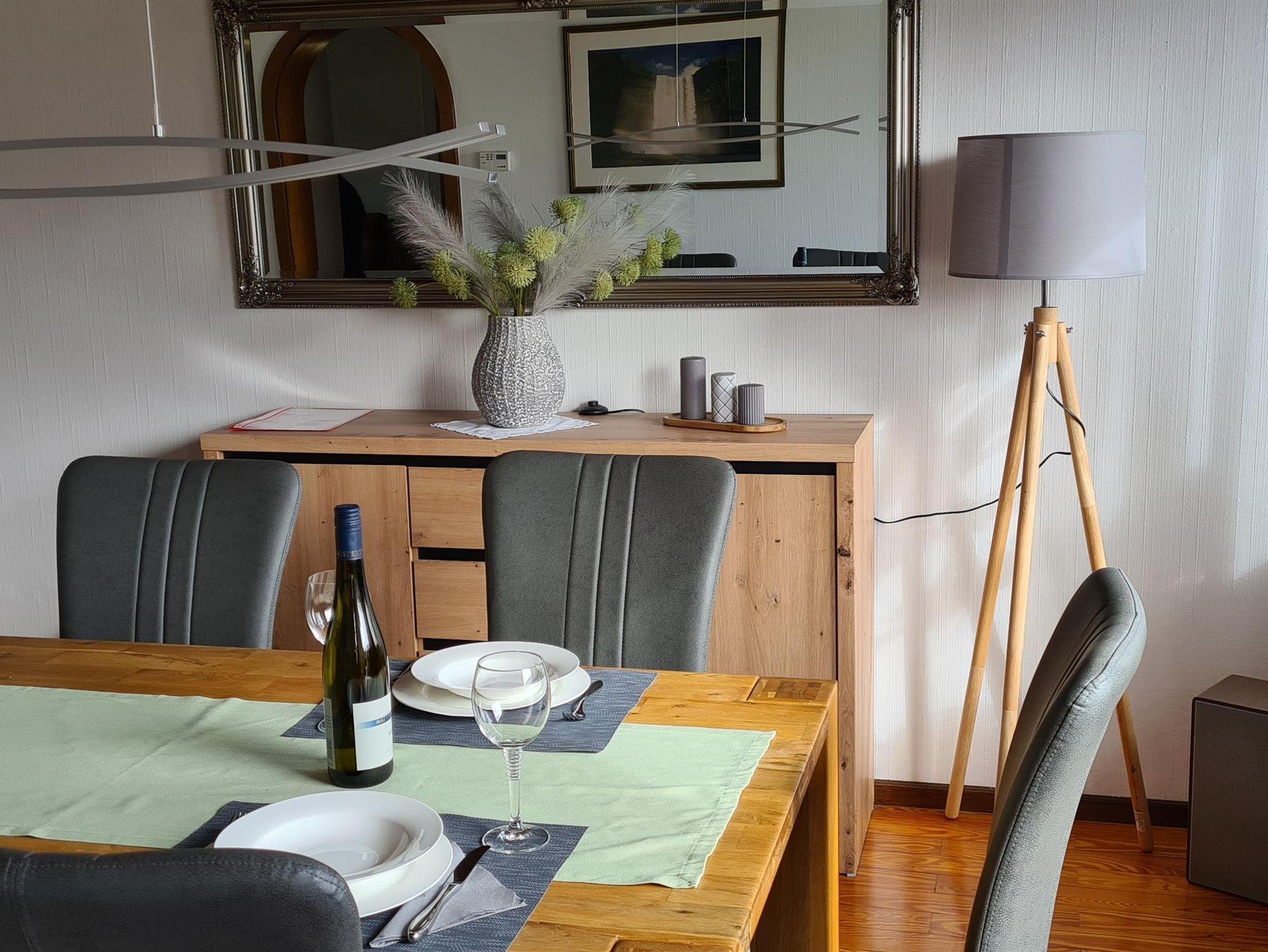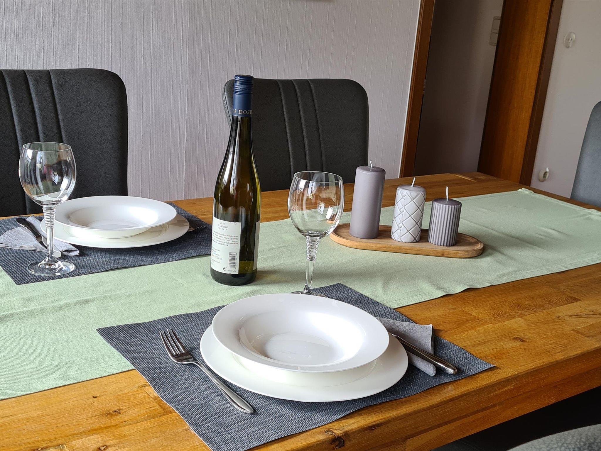 Zur Begrüung erwartet Sie ein kleiner Obstkorb, eine Flasche Wein und eine Flasche Wasser.