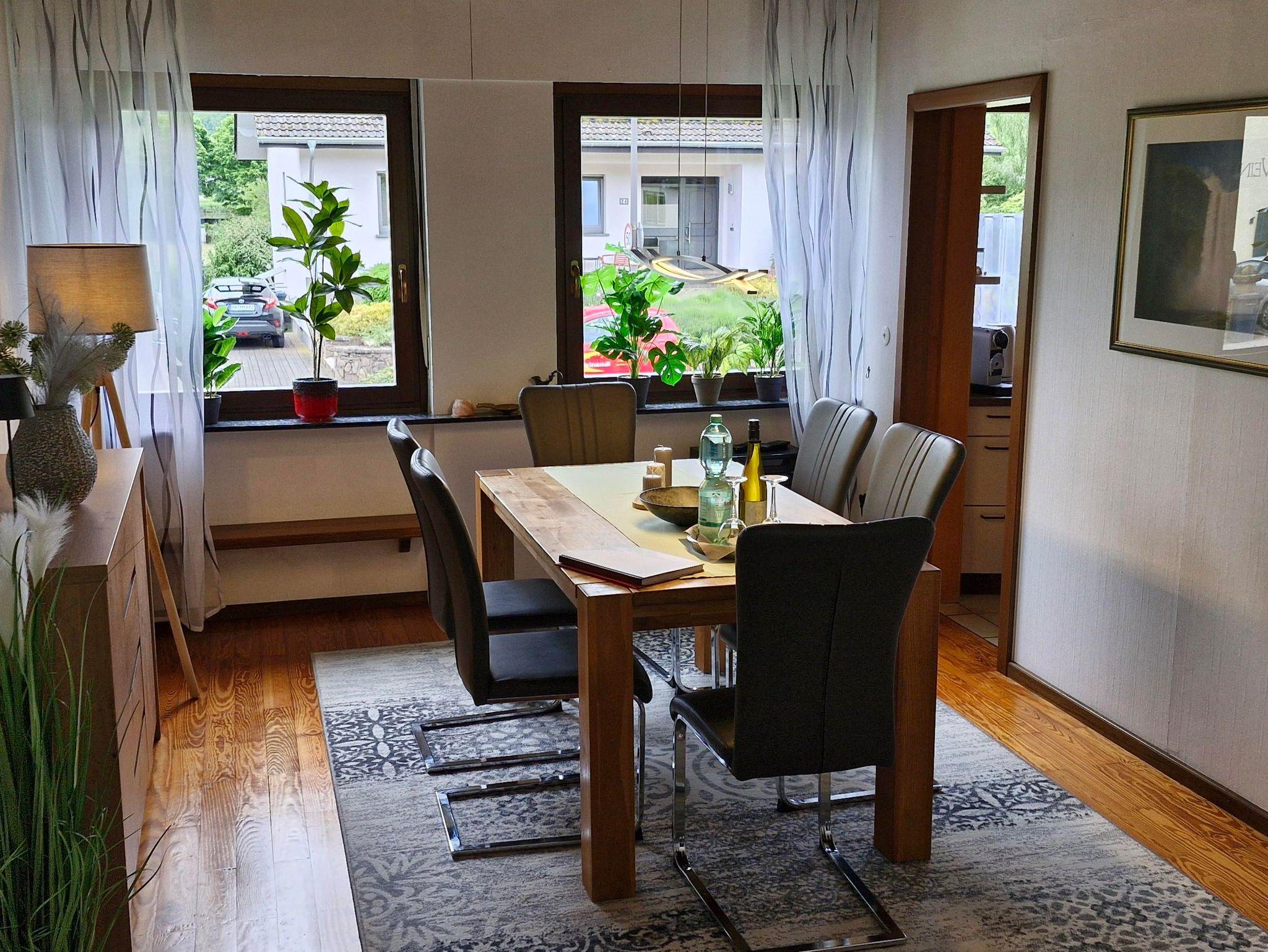 Das Ferienhaus in Ayl-Biebelhausen ist komplett renoviert und neu eingerichtet. Der schöne Garten und das 1700 Quadratmeter große Grundstück bieten viel Platz zum Entspannen und Spielen. Es bietet Platz für bis zu sechs Personen mit zwei separaten Doppelschlafzimmern und einem Ausklappsofa im Vorzimmer. Die Küche ist separat und das Wohn-Esszimmer ist geräumig. Das Badezimmer verfügt über Dusche und WC. Auf der Außenterrasse mit gemütlicher Sitzecke, Grill, Liegestühlen und Sonnenschirm können Sie entspannen und den Urlaub genießen.