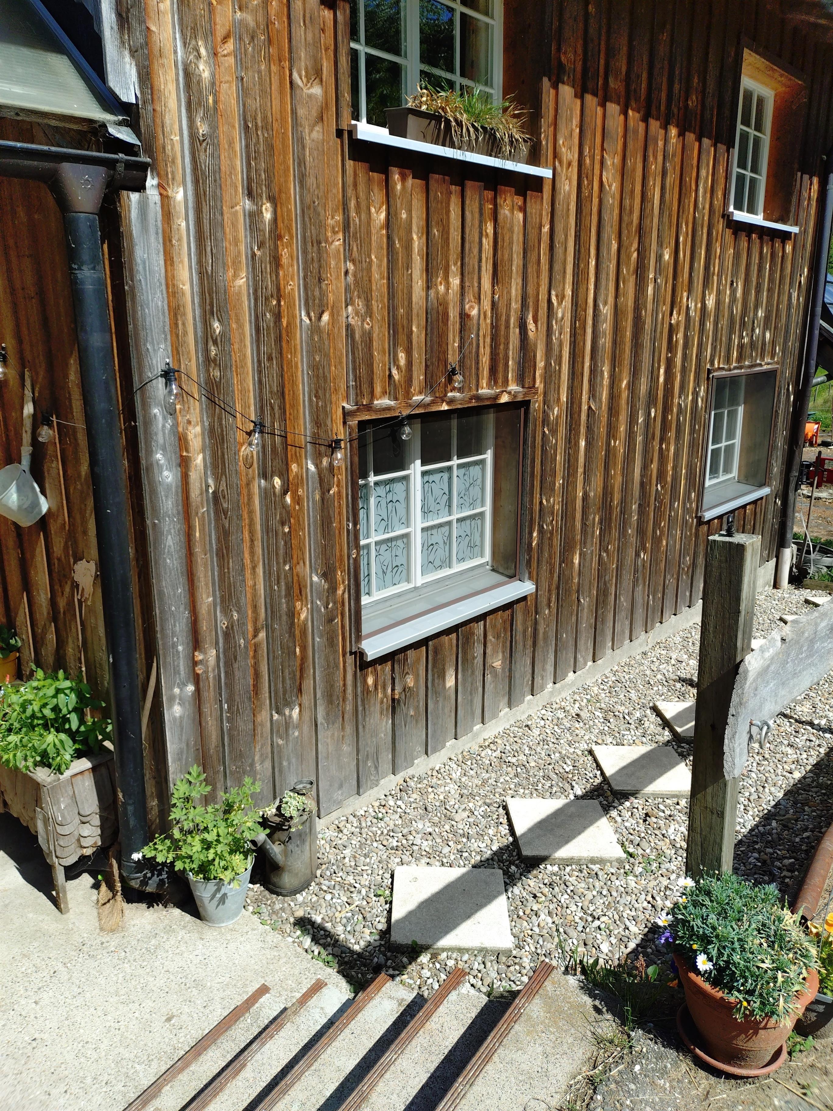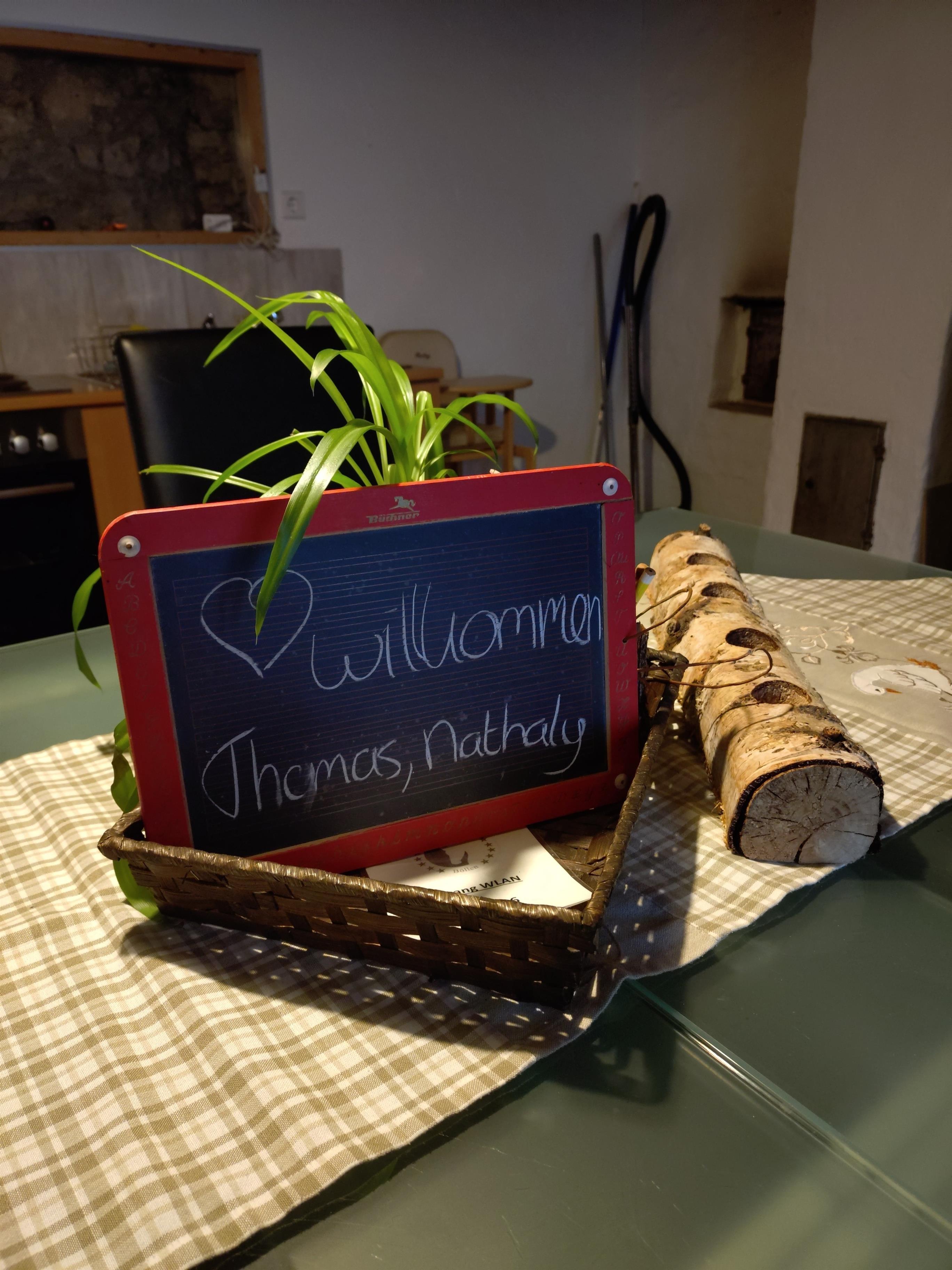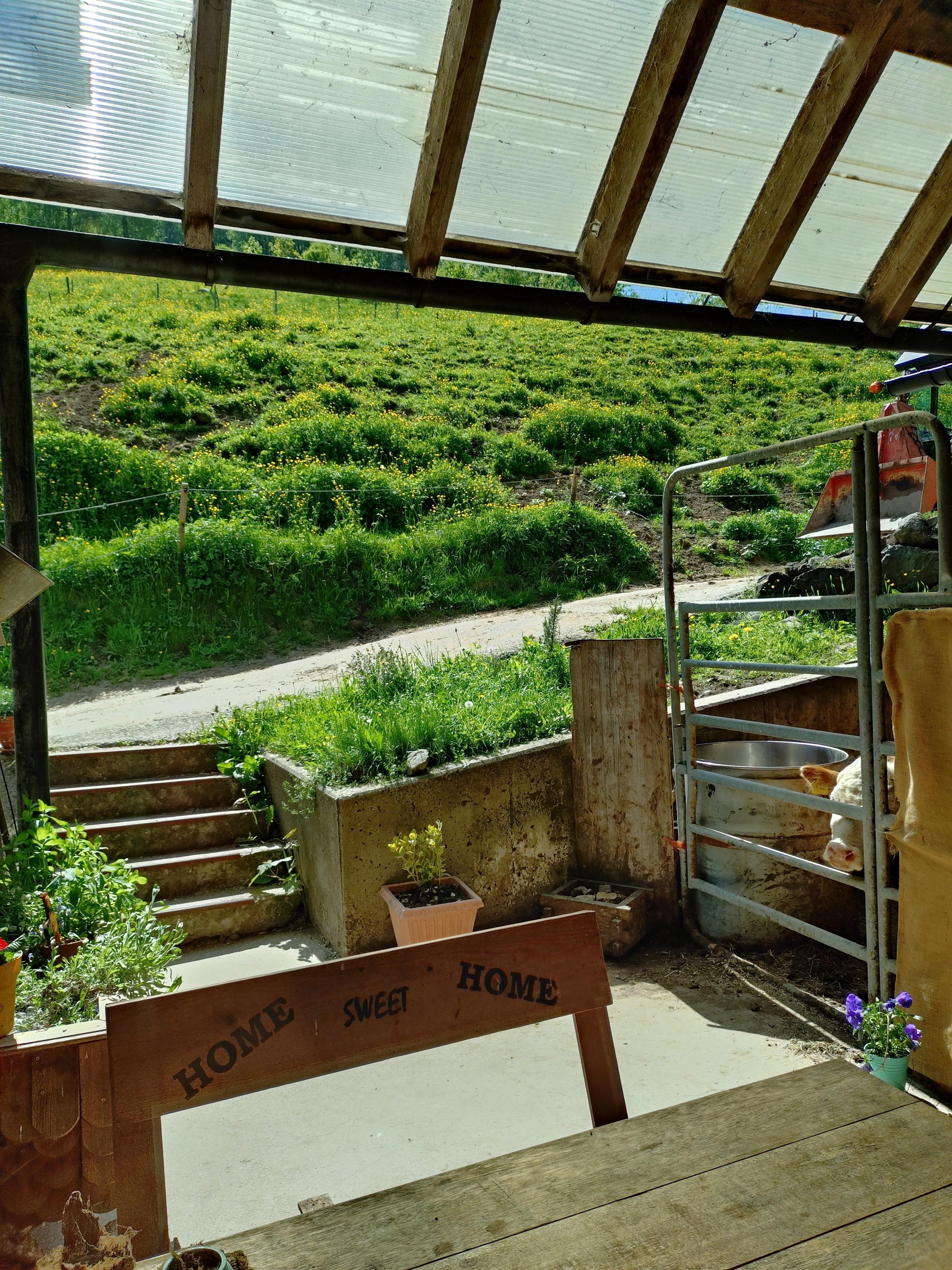 Der Eingang der Wohnung befindet sich direkt neben dem Jungviehstall. Morgens können somit gleich junge Kühe und Kälber begrüßt werden.