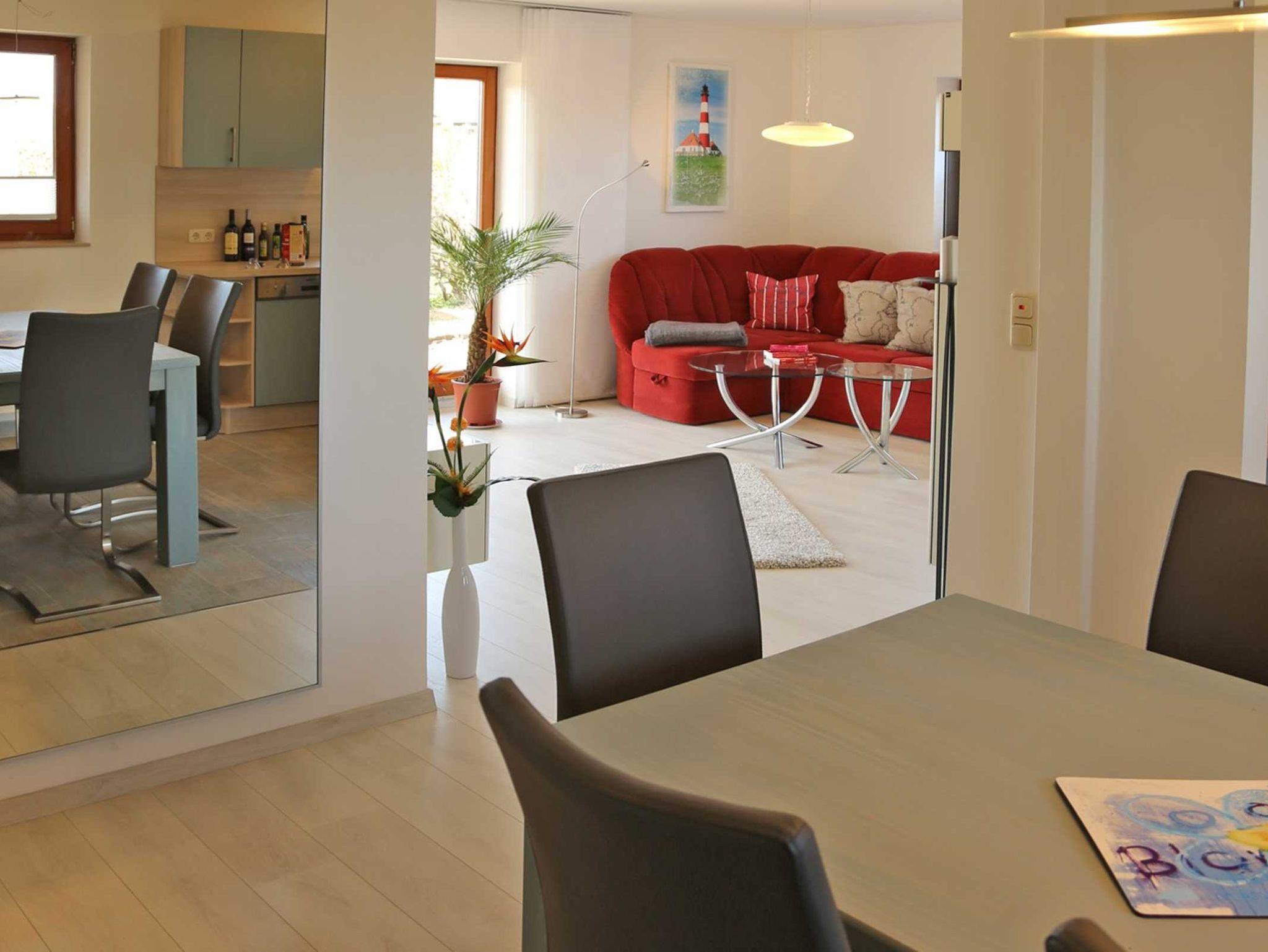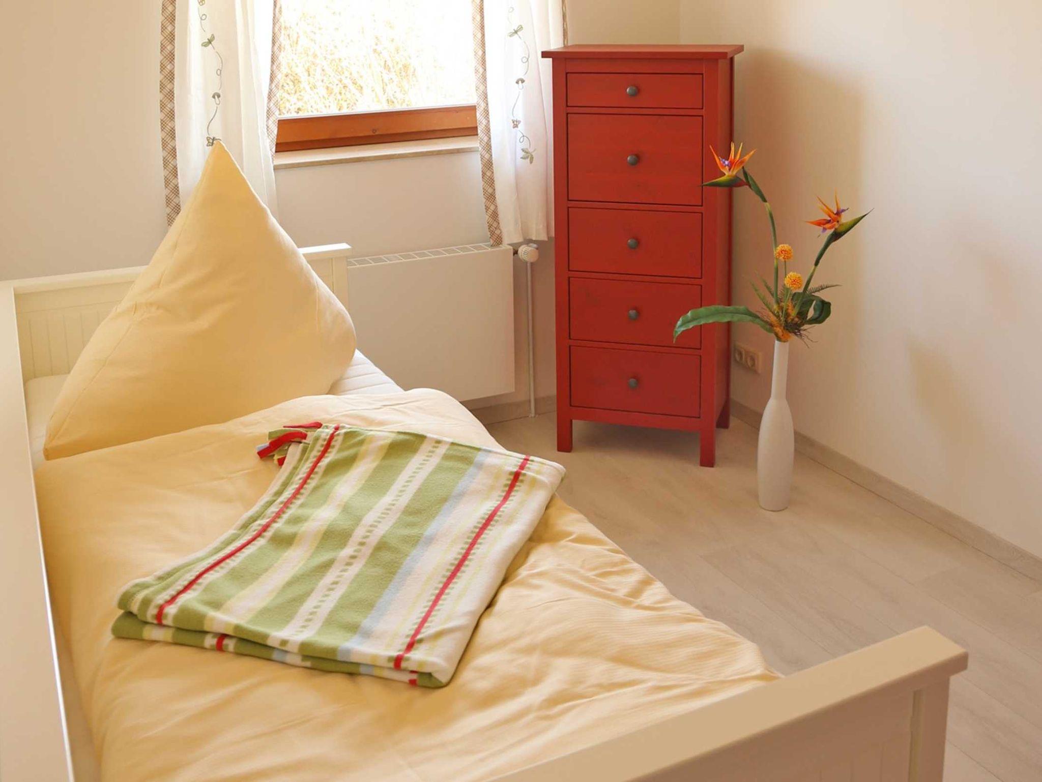 In einem der Schlafzimmer finden Sie ein Doppelbett (180x200) und im zweiten Schlafzimmer ein Rollbett (160x200) auf dem 2 Personen bequem Platz finden. Im Wohnzimmer steht Ihnen eine weitere vollwertige Schlafcouch (180x200) zur Verfügung. Das Bad mit Tageslicht lädt zum Entspannen in der Eckbadewanne ein. Für unsere kleinen Gäste stellen wir kostenfrei ein Reisebabybettchen und einen Kinderhochstuhl zur Verfügung. Ein PKW Stellplatz befindet sich direkt vor dem Haus. Wir bitten Handtücher und Bettwäsche mitzubringen. Das Laden von E-Autos ist untersagt,