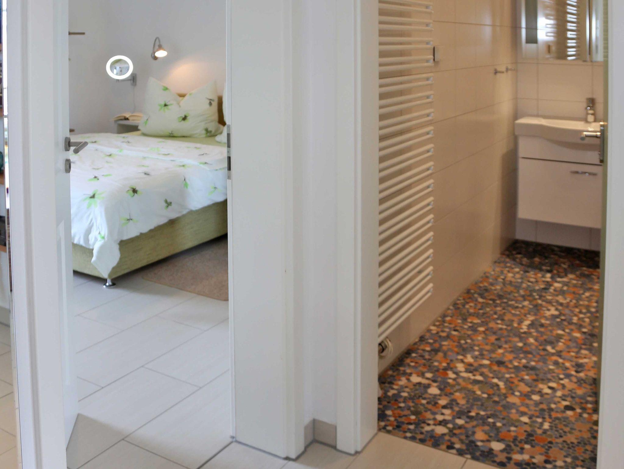 Die 60qm große Ferienwohnung wurde 2011 neu gebaut, liegt zu ebener Erde, ist weitestgehend barrierefrei, komplett mit einer Fußbodenheizung ausgestattet und verfügt über einen eigenen Parkplatz. W-LAN ist vorhanden. Wir bitten Handtücher und Bettwäsche mitzubringen. Für Monteure ist unsere Unterkunft nicht geeignet.
