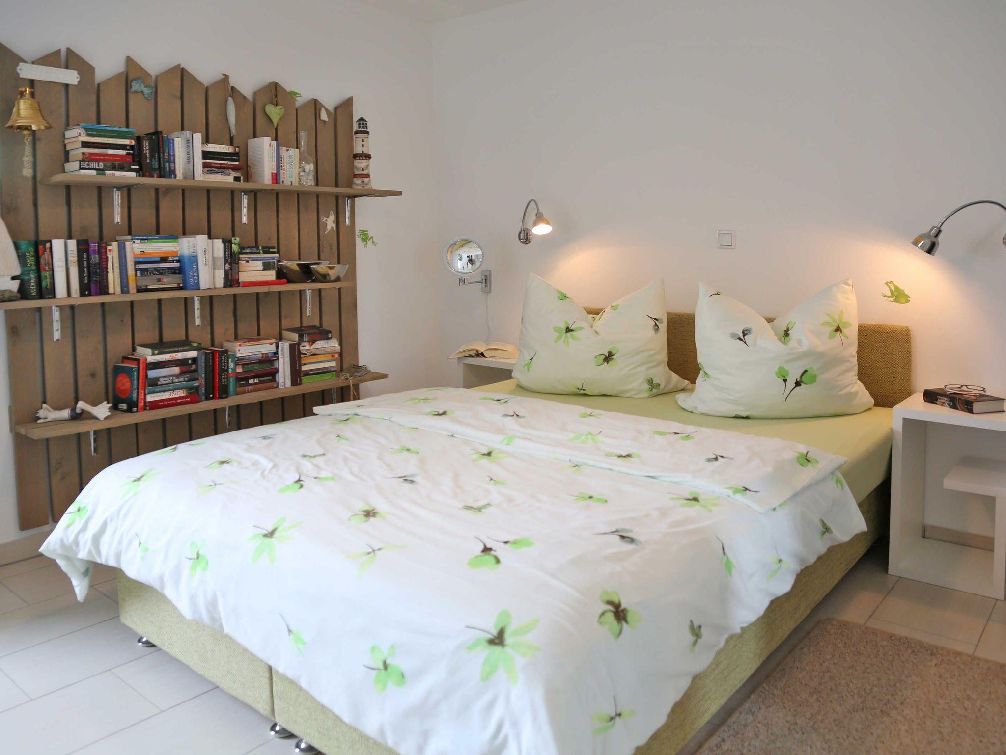 Herzlich Willkommen in unserer modernen maritimen 3-Zimmer Ferienwohnung. Hier können Sie nachts mit dem Rauschen der Ostseebrandung einschlafen. Das große Schlafzimmer verfügt über ein stattliches Doppelbett (160 x 220cm), einer auserlesenen Bücherwand zum schmökern sowie TV inclusive Radio. Das zweite Schlafzimmer ist mit einem Einzelbett (80x200cm) und einer Schlafmatratze, als Notaufbettung, ausgestattet. In beiden Schlafzimmern gibt es je einen Kleiderschrank und eine Kommode. Wir bitten Handtücher und Bettwäsche mitzubringen.