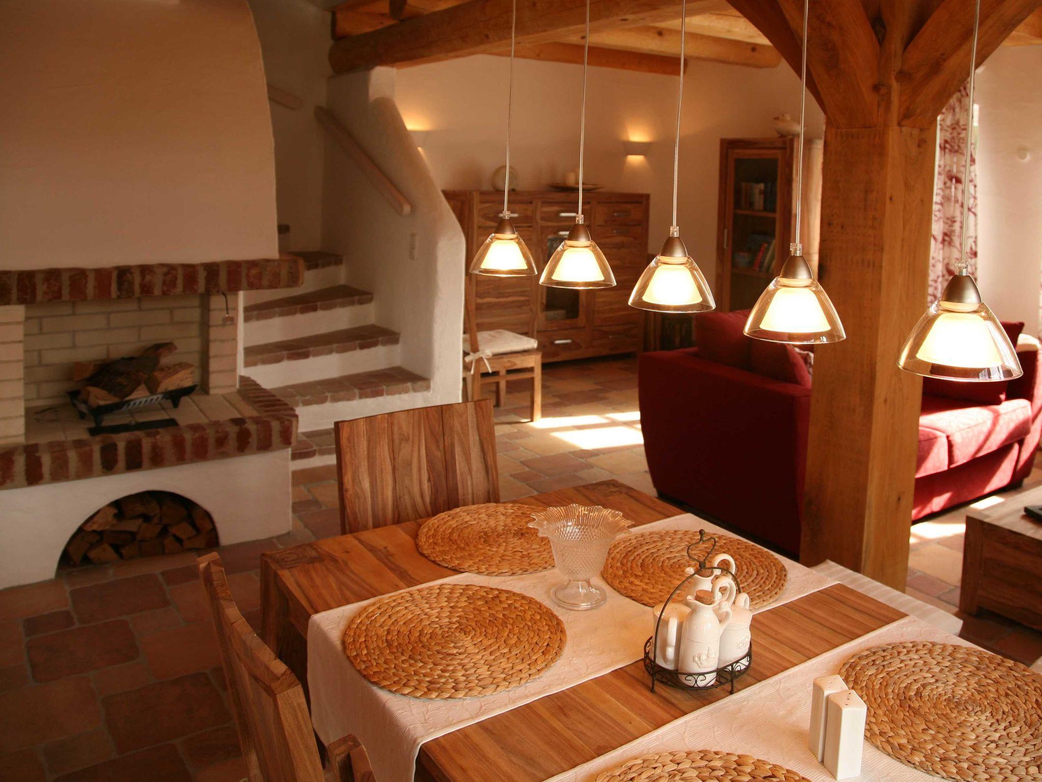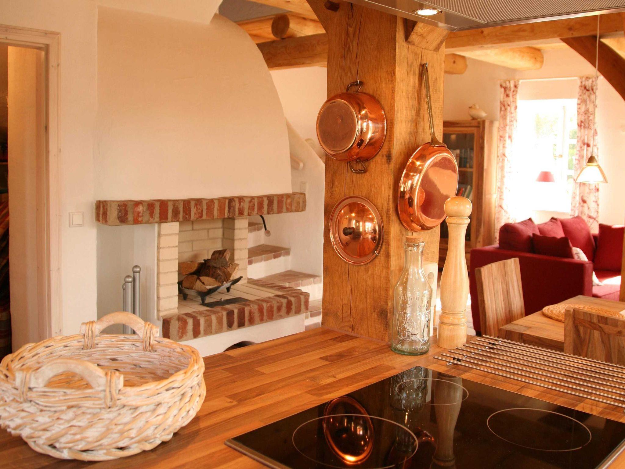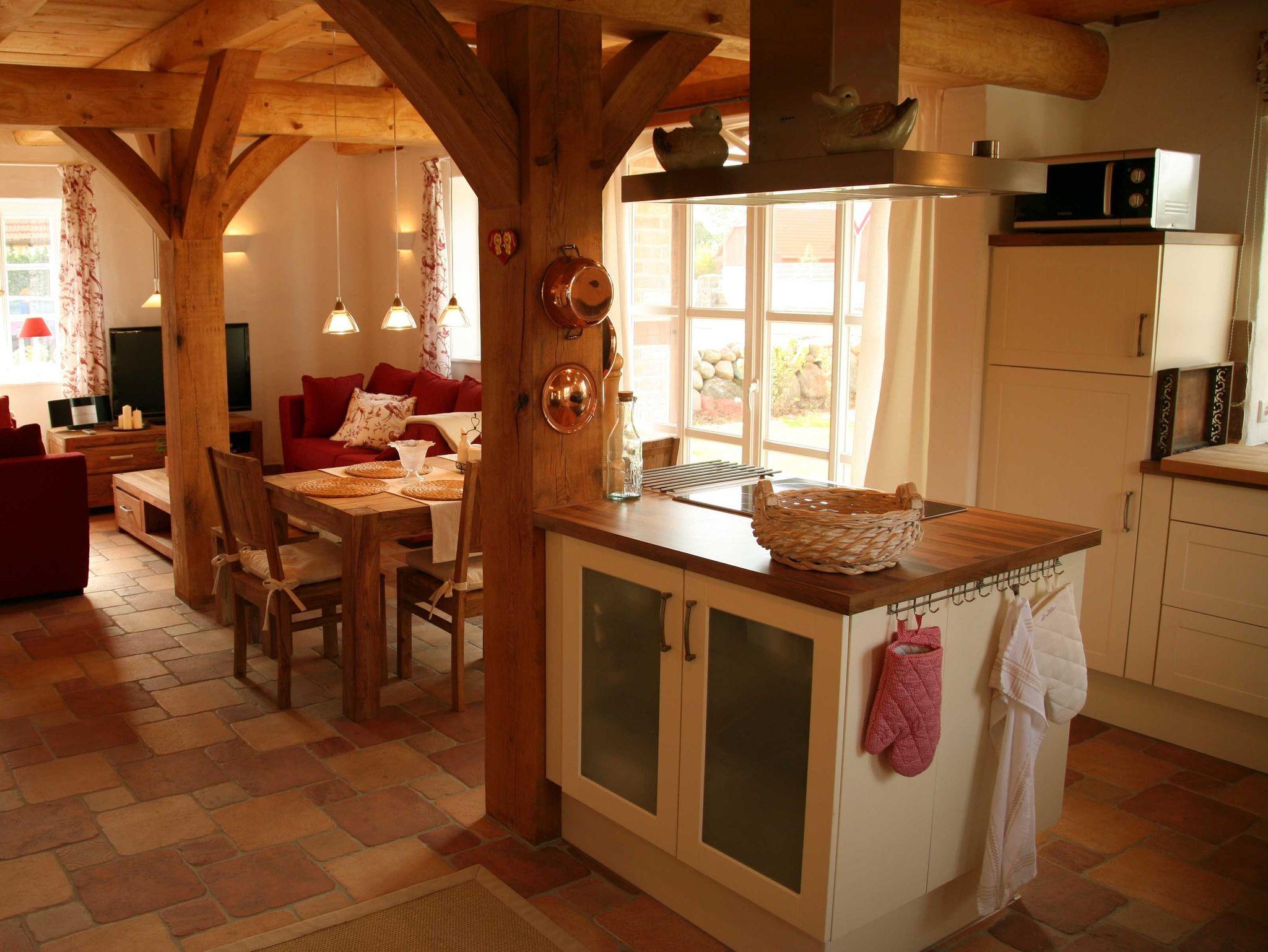Die offene Wohnküche bietet auch dem ambitionierten Hobbykoch genug Möglichkeiten, im Urlaub nicht auf kulinarische Genüsse verzichten zu müssen. Die exklusive Ausstattung des Ferienhauses liegt weit über dem Vermietstandard anderer Ferienhäuser. Das betrifft unter anderem die Bodenbeläge (Terracotta), WLAN, großes Bad mit Wellness-Dusche und Badewanne, einem weiterem Duschbad, eine wunderschöne Galerie mit Ohrensesseln zum Lesen und einem zweiten Flachbildfernseher (man ist sich ja nicht immer einig, was das Programm angeht) und natürlich die Möblierung, die mit ihrem warmen Landhauscharakter zur Urlaubsstimmung beiträgt. Ein Gartenhaus mit Sauna und überdachter Gartenterrasse bietet Unterstellplatz für mitgebrachte Fahrräder. WLAN kostenfrei. Waschmaschine und Wäschetrockner sowie Kaminholz sind inkl. Zwei Stellplätze direkt auf dem Grundstück. Die Saunanutzung erfolgt über den Münzautomat. Es befindet sich eine Außenkamera am Haus, diese überwacht die Eingangstür und die Terrasse.