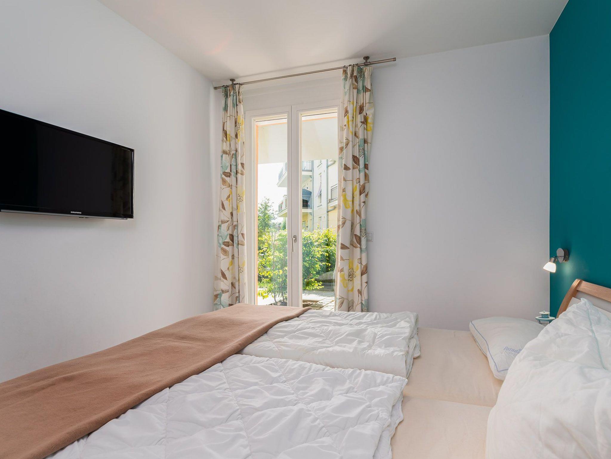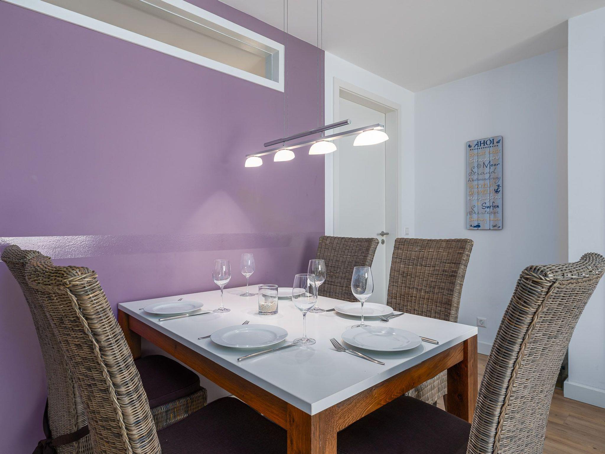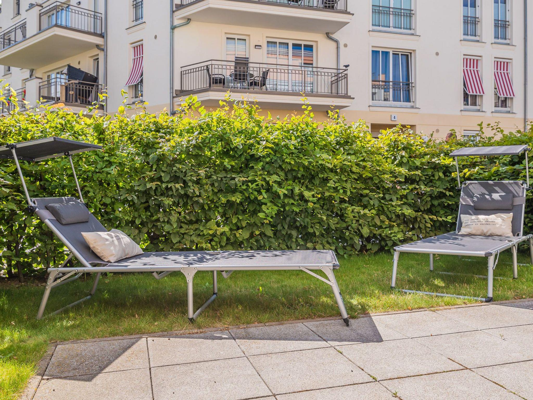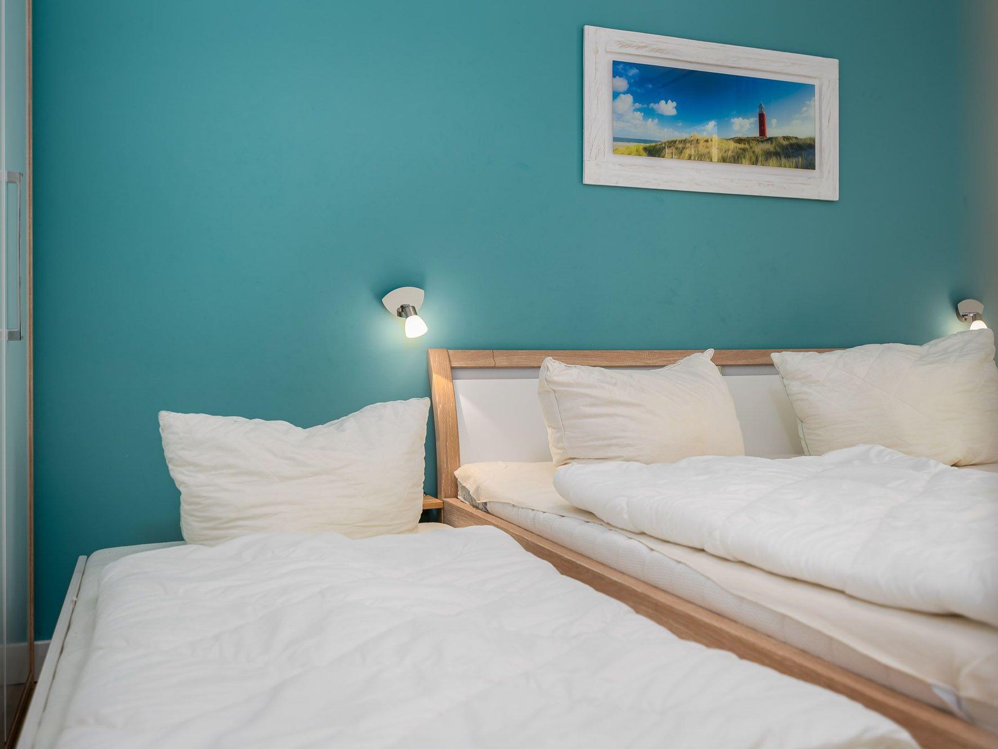 Diese moderne Ferienwohnung ist für max. fünf Erwachsene (ab dritter Person Aufpreis) und ein Kind (bis 14 Jahre) eingerichtet. Es stehen Ihnen zwei Schlafzimmer mit großen, bequemen Doppelbetten zur Verfügung. Beide Boxspringbetten sind mit angenehm weichen Matratzen belegt worden. In beiden Schlafräumen haben Sie jeweils einen Flatscreen-TV, ein CD-Radio und einen geräumigen Kleiderschrank. Auch ein tragbares Ausziehbett (Liege) ist bei Bedarf vorhanden. Im Wohnraum können Sie zusätzlich noch eine L-förmige Schlafcouch nutzen. Zur Unterhaltung gibt es dort einen großen Flatscreen-TV inklusive Blu-ray-Player sowie eine separate Stereoanlage. Die Terrasse können Sie direkt von beiden Schlafzimmern und dem Wohnbereich aus betreten. Sie liegt in Süd-West- Richtung. Natürlich inklusive moderner Gartenmöbel. Im offenen Küchen -und Wohnbereich finden Sie einen ausziehbaren Esstisch mit sechs Rattanstühlen. Die Küche ist, neben der Standardausstattung, mit Mikrowelle, Backofen, Cerankochfeld, Geschirrspüler und Kühlschrank mit eingebautem Gefrierfach ausgestattet. Der Sanitärbereich verfügt über zwei Bäder. Beide ausgestattet mit bodengleichen Duschen, Waschtischen und Spiegel. In einem der Bäder finden Sie eine Sauna. Diese wird über einen Münzautomaten betrieben. An der Wohnung befindet sich ein kostenfreier Pkw-Stellplatz, direkt neben der Terrasse. Für geliehene oder mitgebrachte Fahrräder wurde ein abschließbarer Fahrradraum in der Tiefgarage eingerichtet. Und noch einige Hinweise: Es steht ein Kinderhochstuhl kostenlos bereit. Wäschesets und ein Kinderreisebett können kostenpflichtig dazugebucht werden. Waschmaschine und Trockner sind im Erdgeschoss, Waschraum, des Objekts vorhanden. (Münzautomaten mit 50 Cent Münzen Einwurf). Die Wohnung ist eine Nichtraucherwohnung. Und es sind hier keine Haustiere gestattet. Die kostenfreie WLAN-Verbindung in dieser Unterkunft ist ausschließlich für die Verwendung von Social- Mediakanälen sowie den Austausch von Bildern mit Familie und Freunden gedacht. Eine Nutzung zum Streamen, z.B. von Filmen, ist nicht vorgesehen. Ab der dritten Person und drittem Lebensjahr, wird ein Aufpreis in Höhe von 10,00 Euro/ ÜN pro Person berechnet. Sichern Sie sich den Anspruch auf einen der begehrten Strandkörbe (Anfang Mai - Ende August) und buchen Sie jetzt zu besonderen Konditionen (12,00 Euro pro Tag oder 75,00 Euro pro Woche).