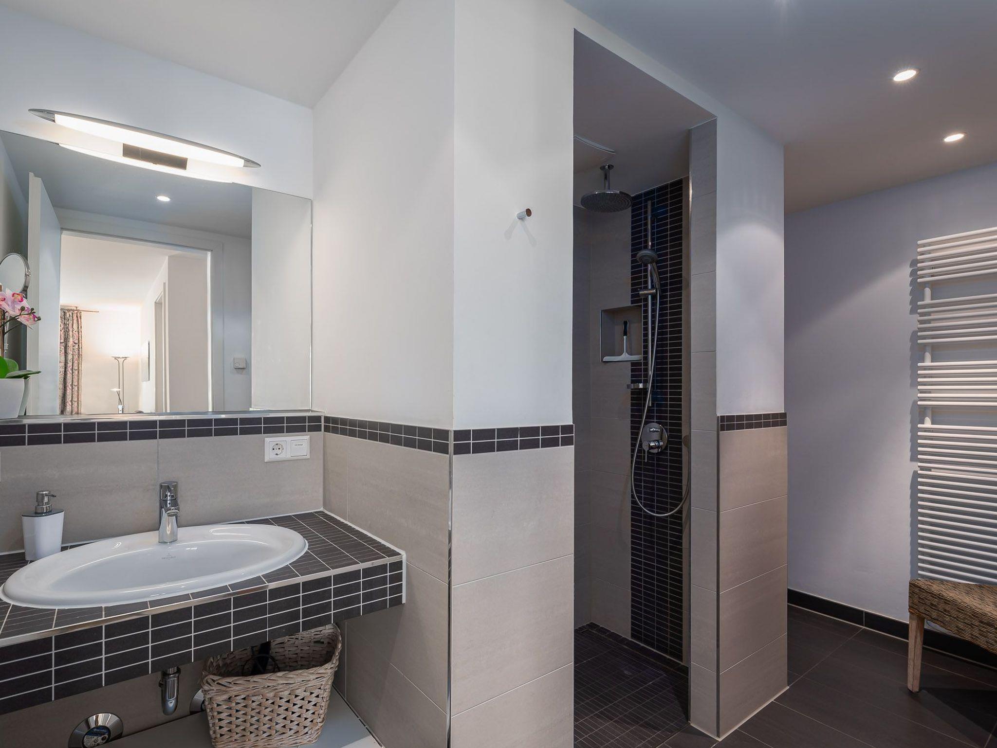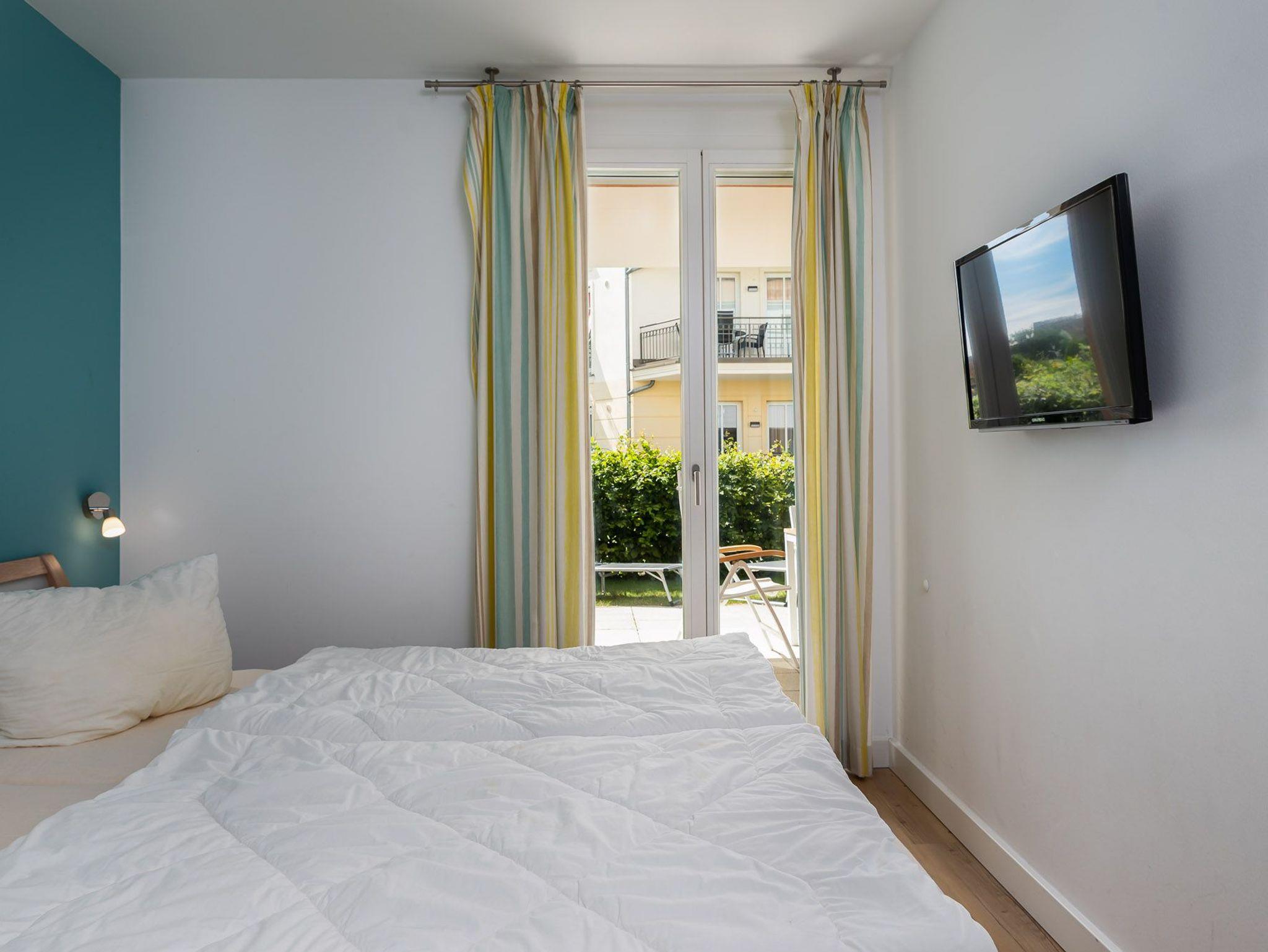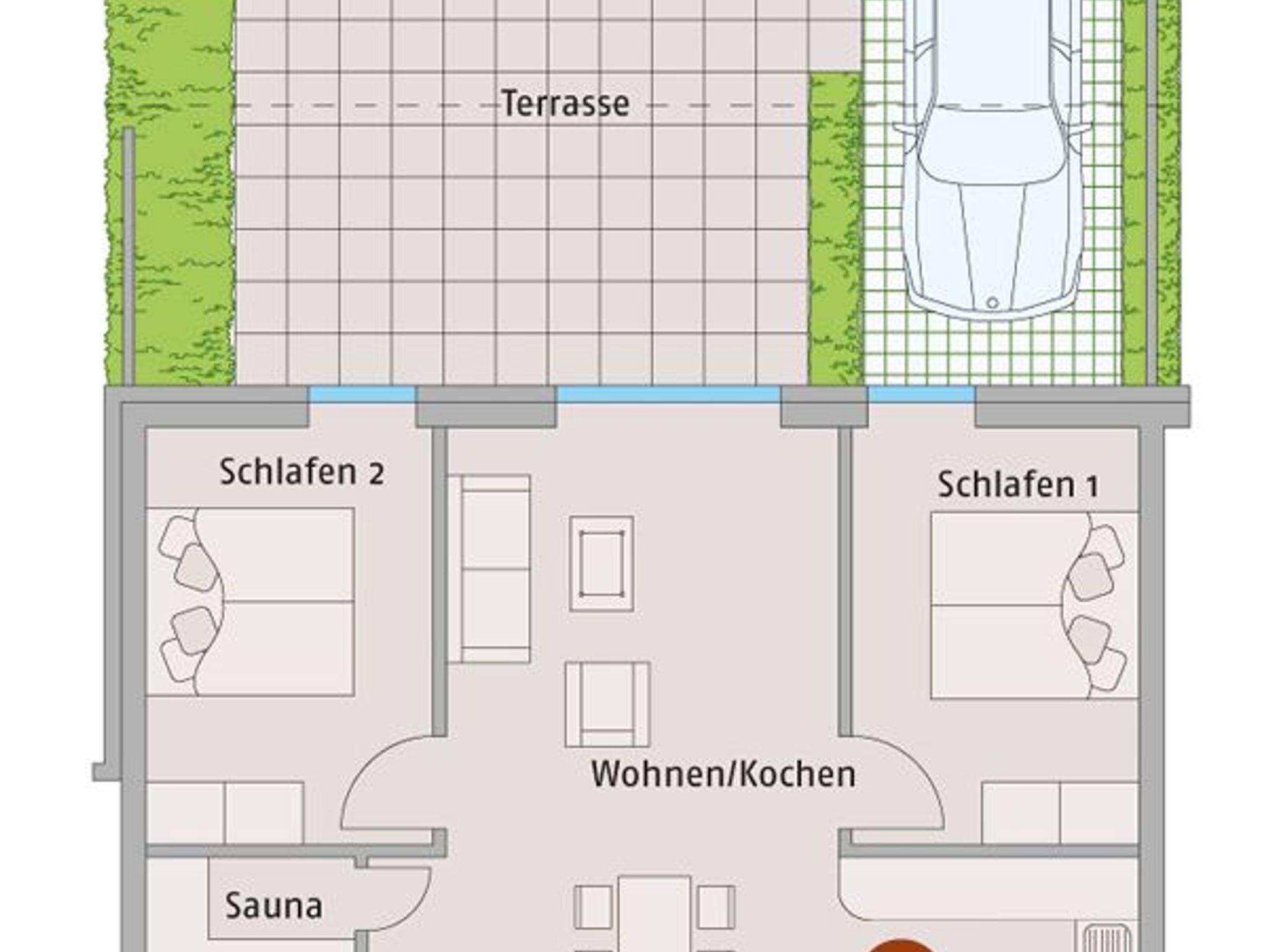 Diese moderne Ferienwohnung ist für max. fünf Erwachsene (ab dritter Person Aufpreis) und ein Kind (bis 14 Jahre) eingerichtet. Es stehen Ihnen zwei Schlafzimmer mit großen, bequemen Doppelbetten zur Verfügung. Beide Boxspringbetten sind mit angenehm weichen Matratzen belegt worden. In beiden Schlafräumen haben Sie jeweils einen Flatscreen-TV, ein CD-Radio und einen geräumigen Kleiderschrank. Auch ein tragbares Ausziehbett (Liege) ist bei Bedarf vorhanden. Im Wohnraum können Sie zusätzlich noch eine L-förmige Schlafcouch nutzen. Zur Unterhaltung gibt es dort einen großen Flatscreen-TV inklusive Blu-ray-Player sowie eine separate Stereoanlage. Die Terrasse können Sie direkt von beiden Schlafzimmern und dem Wohnbereich aus betreten. Sie liegt in Süd-West- Richtung. Natürlich inklusive moderner Gartenmöbel. Im offenen Küchen -und Wohnbereich finden Sie einen ausziehbaren Esstisch mit sechs Rattanstühlen. Die Küche ist, neben der Standardausstattung, mit Mikrowelle, Backofen, Cerankochfeld, Geschirrspüler und Kühlschrank mit eingebautem Gefrierfach ausgestattet. Der Sanitärbereich verfügt über zwei Bäder. Beide ausgestattet mit bodengleichen Duschen, Waschtischen und Spiegel. In einem der Bäder finden Sie eine Sauna. Diese wird über einen Münzautomaten betrieben. An der Wohnung befindet sich ein kostenfreier Pkw-Stellplatz, direkt neben der Terrasse. Für geliehene oder mitgebrachte Fahrräder wurde ein abschließbarer Fahrradraum in der Tiefgarage eingerichtet. Und noch einige Hinweise: Es steht ein Kinderhochstuhl kostenlos bereit. Wäschesets und ein Kinderreisebett können kostenpflichtig dazugebucht werden. Waschmaschine und Trockner sind im Erdgeschoss, Waschraum, des Objekts vorhanden. (Münzautomaten mit 50 Cent Münzen Einwurf). Die Wohnung ist eine Nichtraucherwohnung. Und es sind hier keine Haustiere gestattet. Die kostenfreie WLAN-Verbindung in dieser Unterkunft ist ausschließlich für die Verwendung von Social- Mediakanälen sowie den Austausch von Bildern mit Familie und Freunden gedacht. Eine Nutzung zum Streamen, z.B. von Filmen, ist nicht vorgesehen. Ab der dritten Person und drittem Lebensjahr, wird ein Aufpreis in Höhe von 10,00 €/ ÜN pro Person berechnet. Sichern Sie sich den Anspruch auf einen der begehrten Strandkörbe (Anfang Mai - Ende August) und buchen Sie jetzt zu besonderen Konditionen (12,00 € pro Tag oder 75,00 € pro Woche).