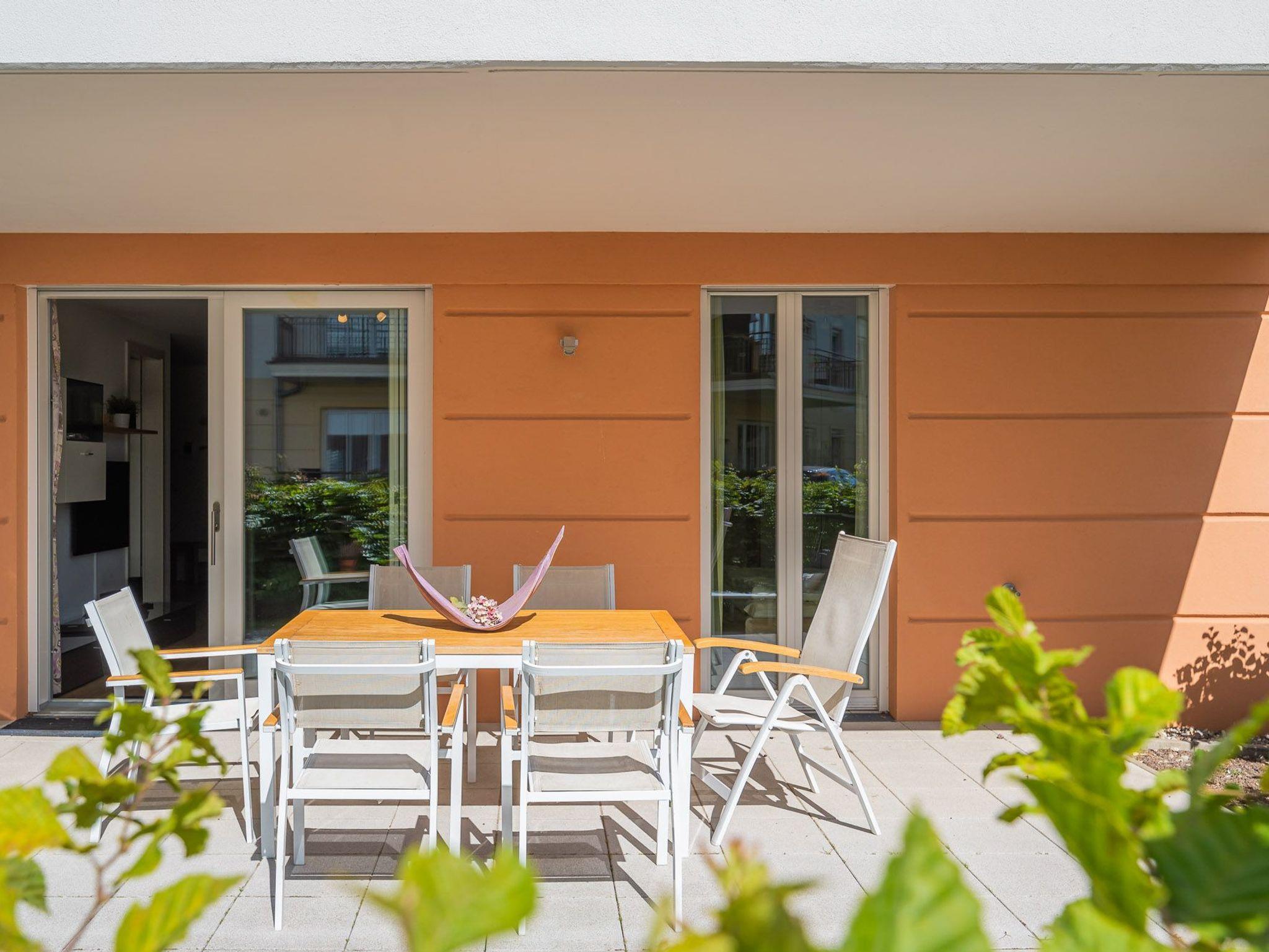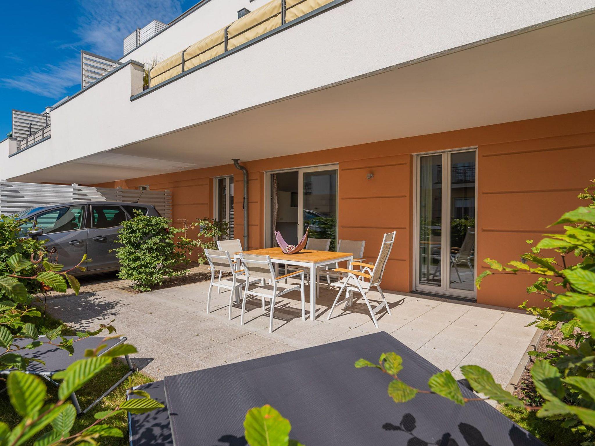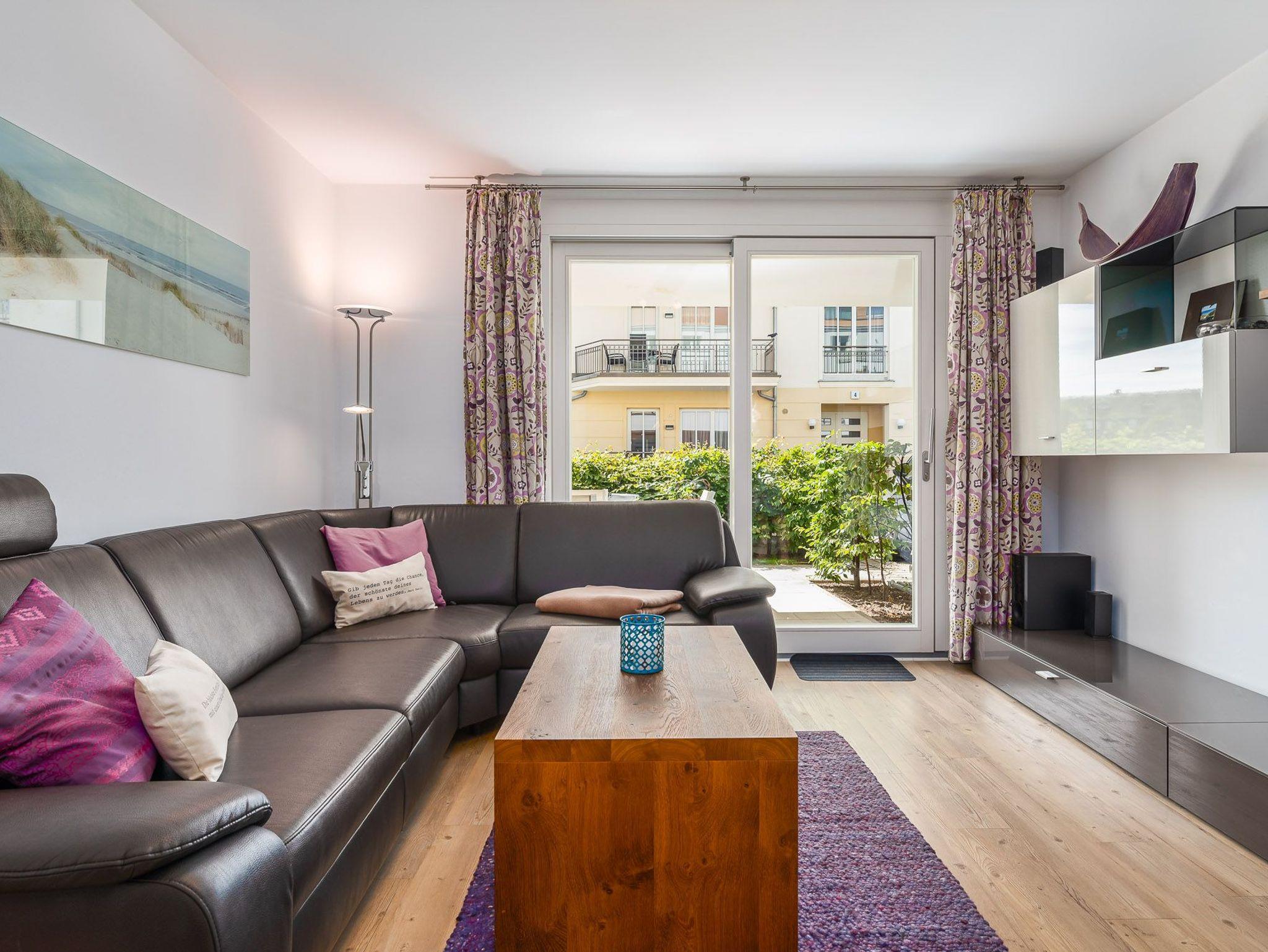 Strandnahe 3-Raumwohnung für max. 5 Personen (4 Erwachsene, ein Kind bis 14 Jahre) mit eigener Sauna und Terrasse im EG.