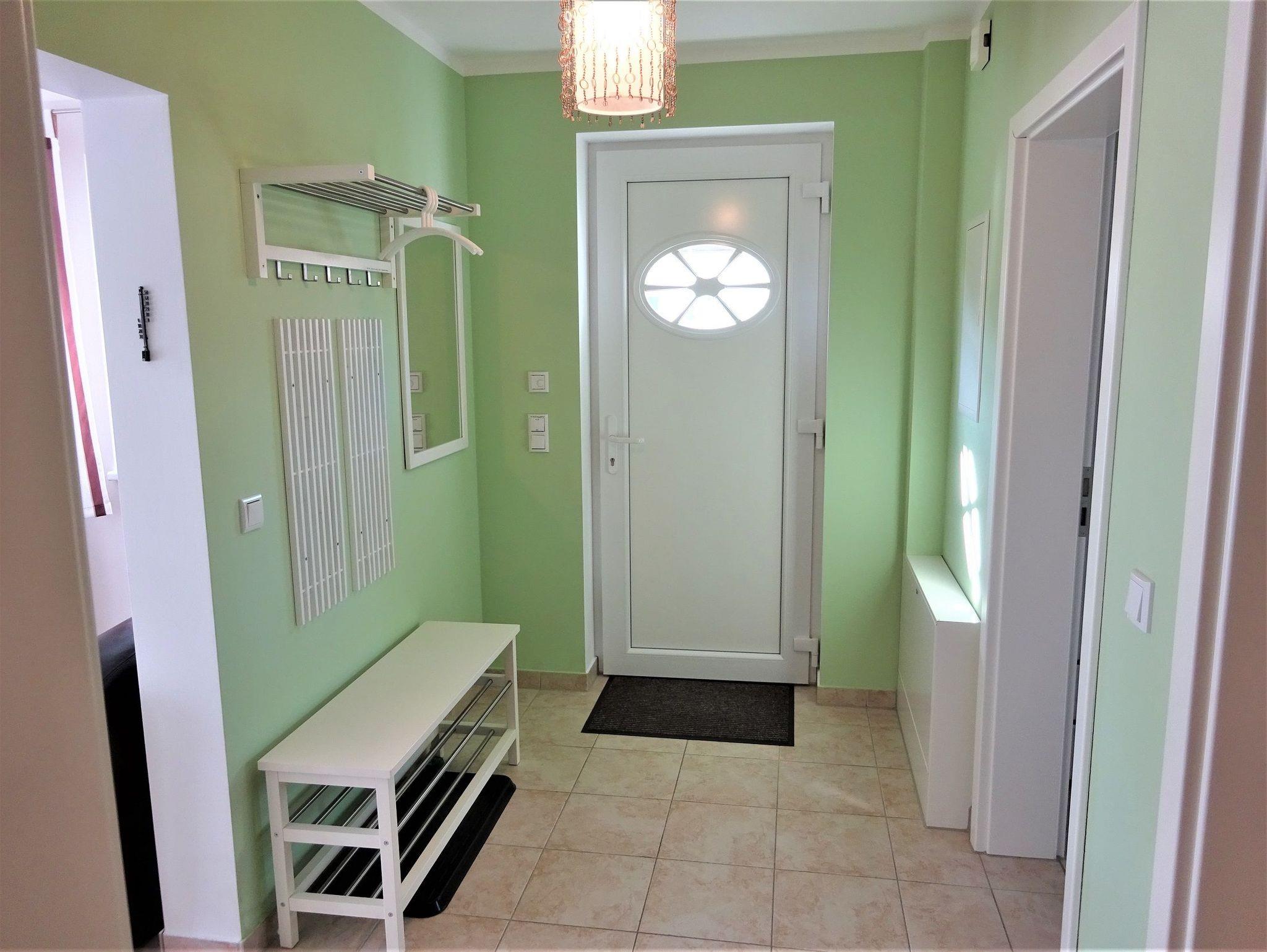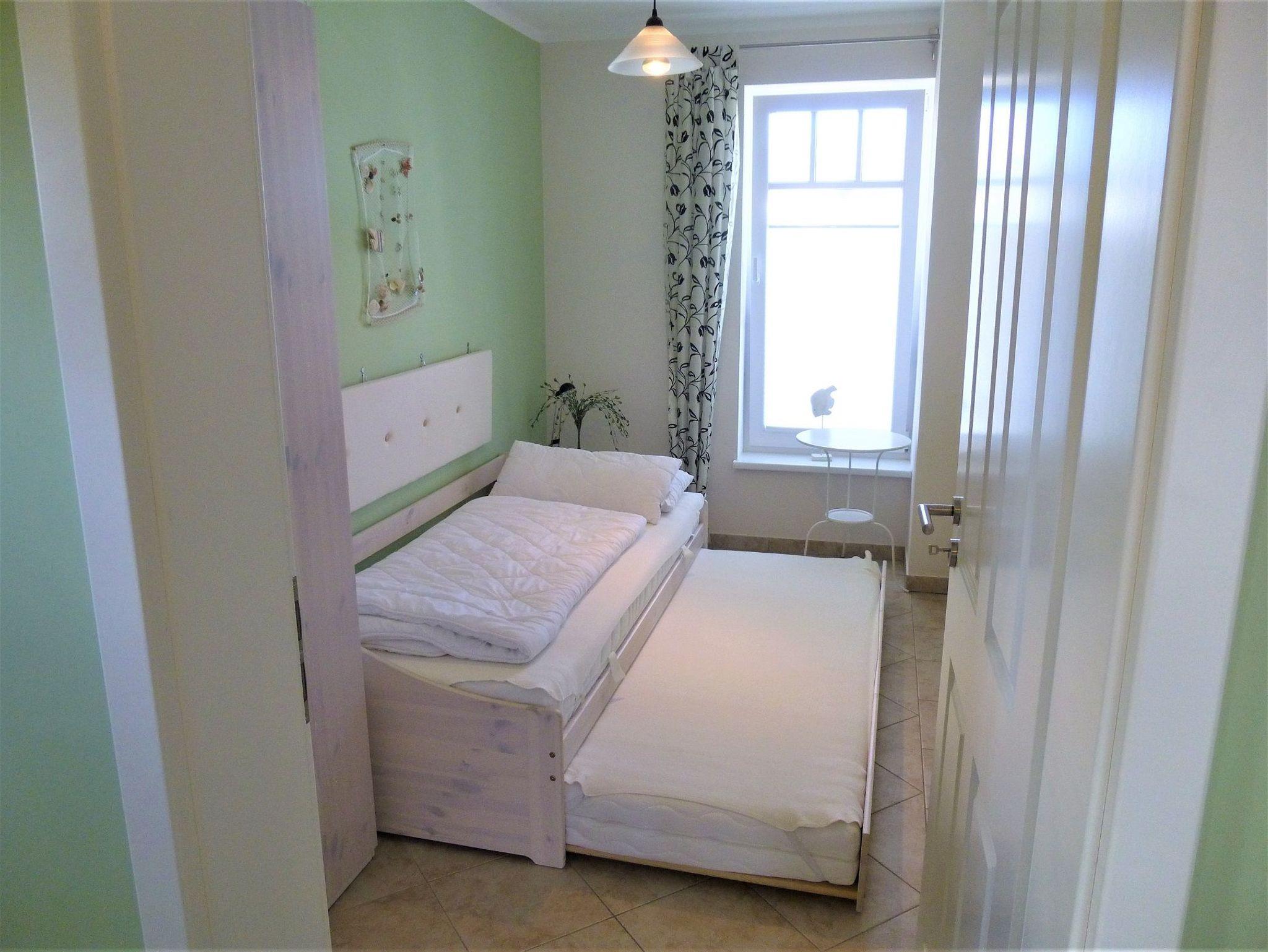 Die nur ca. 150 m vom Badestrand entfernte, gemütliche Erdgeschosswohnung wurde 2011 errichtet. Sie bietet Platz für max. vier Erwachsene und ein Kind (bis drei Jahre) und verfügt neben einer voll möblierten Terrasse auch über einen Garten. Durch die rückwärtige Lage in einer Sackgasse sind Kinder hier besonders geschützt. Genießen Sie die moderne und komfortable Ausstattung im geschmackvollen Wohnzimmer mit offener Wohnküche. Die hochwertige Küche ist umfangreich ausgestattet. Das geräumige Schlafzimmer verfügt über ein großes Doppelbett. Ein kleinerer behaglicher Schlafraum bietet zwei weitere Schlafmöglichkeiten (Ausziehbett). Ein modernes Duschbad rundet die liebevolle Einrichtung der Wohnung ab. Die in der gesamten Wohnung verlegte Fußbodenheizung und ein Kaminofen machen Ihren Urlaub auch im Winter traumhaft gemütlich (Kaminholz wird nicht gestellt.)