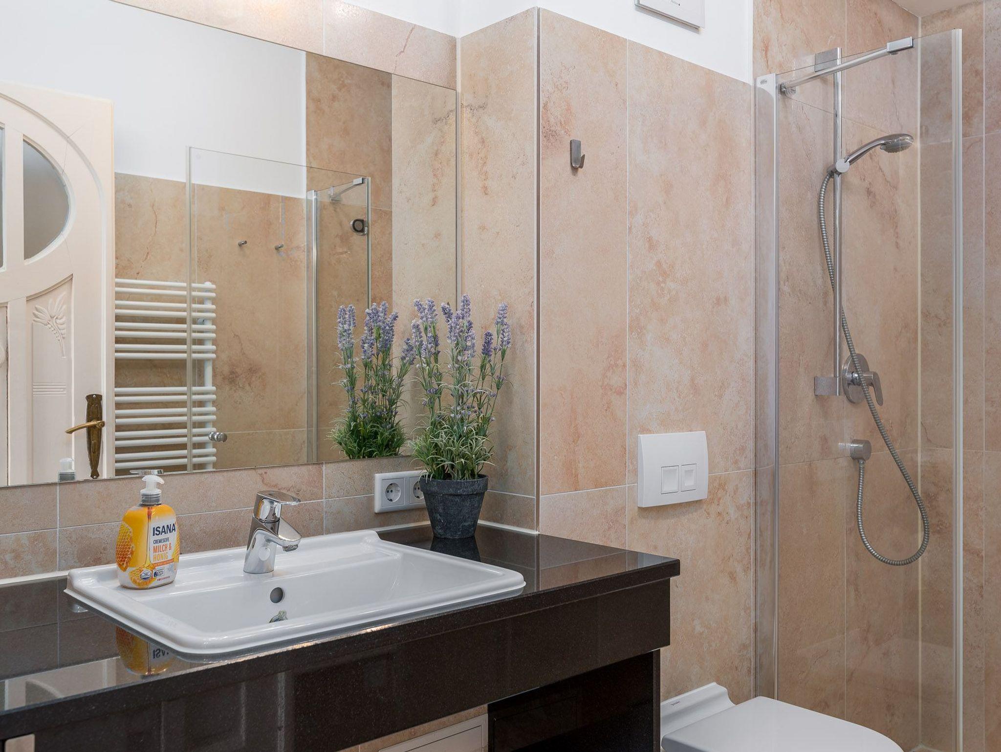 Die Ferienwohnung ist über eine eigene kleine Außentreppe an der Meerseite des Gebäudes zu erreichen und bietet Platz für maximal zwei Erwachsene und zwei Kinder. Es empfängt Sie ein stilvoll eingerichtetes Wohn-/ Esszimmer mit Zweisitzer-Couch (ausziehbar / Liegefläche 140 x 200 cm), Hocker, Flatscreen-TV und Radio sowie Esstisch mit vier Stühlen. Von hier gelangen Sie auf den herrlichen Balkon in Westausrichtung mit Blick auf den nahegelegenen Deich. Die offene Einbauküche ist neben der Standardbestückung mit Geschirrspüler, Kühlschrank, inklusive Gefrierfach, Backofen, Cerankochfeld und Mikrowelle ausgestattet worden. Im Schlafzimmer sorgt dann ein gemütliches Doppelbett (180 x 200 cm /getrennte Matratzen) für angenehme Urlaubsträume. Ein besonderer Hingucker der Wohnung sind die ?Vintage -Türen? (Jugendstil nachempfunden). Das Duschbad besticht mit bodengleicher Dusche, Föhn und Handtuchtrockner. Die eingebaute Fußbodenheizung sorgt auch an kalten Tagen für wohlige Wärme in allen Räumen. Im Flurbereich befindet sich ein geteilter Kleider-/ Hauswirtschaftsschrank. Zu Ihrer Ferienwohnung gehört ein kostenfreier Tiefgaragenstellplatz. Bitte beachten Sie die Durchfahrtshöhe von max. 1,90 m. Über den Innenhof der Villa erreichen Sie den abschließbaren Fahrradraum sowie den angrenzenden Waschraum. Eine Waschmaschine und ein Trockner stehen zu Ihrer Verfügung (gegen Gebühr / 1,00 Euro Münzen). Das kostenfreie WLAN in der Unterkunft ist ausschließlich für die Verwendung von Social Media und den Austausch von Bildern mit Familie und Freunden gedacht. Die Nutzung zum Streamen von Filmen ist nicht vorgesehen. Noch einige Hinweise: Es handelt sich um eine Nichtraucherwohnung. Zwei kleine Haustiere bis 10 Kilo sind willkommen (10,00 Euro/ÜN pro Tier und einmalig 20,00 Euro Haustierendreinigung). Hundestrände finden Sie in Richtung Heiligendamm in ca. 500m Entfernung. Ab Aufgang 9. In Richtung Nienhagen ab Aufgang 1. Für die dritte und vierte Person (ab 3 Jahre) wird ein Aufpreis in Höhe von 10,00 Euro/ÜN pro Person berechnet. Sichern Sie sich einen der begehrten Strandkörbe nur ein paar Meter entfernt von den rauschenden Wellen der Ostsee (Anfang Mai - Ende August) und buchen Sie jetzt zu besonderen Konditionen (12,00 Euro pro Tag oder 75,00 Euro pro Woche).