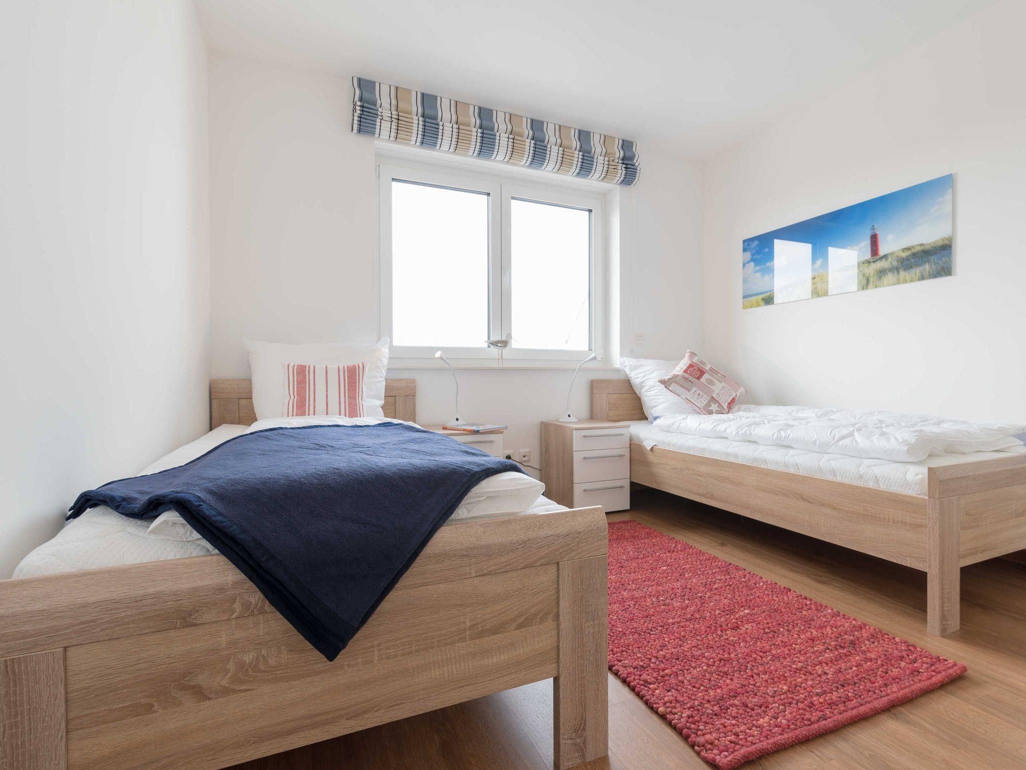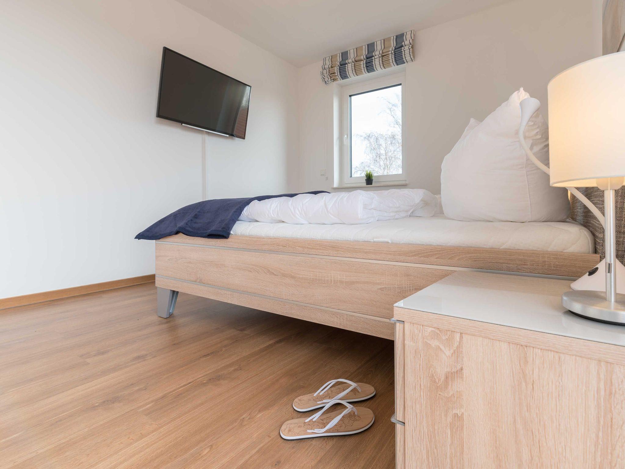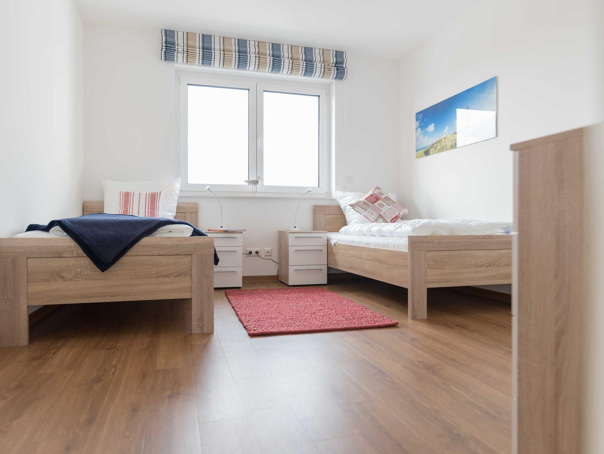 Das erste Schlafzimmer ist mit einem komfortablen Doppelbett (180 x 200 cm), einem geräumigen Kleiderschrank und einem weiteren Flatscreen-TV ausgestattet. Im zweiten Schlafzimmer befinden sich zwei gemütliche Einzelbetten (100 x 200 cm) mit je einem Nachttisch und ein großer Kleiderschrank.