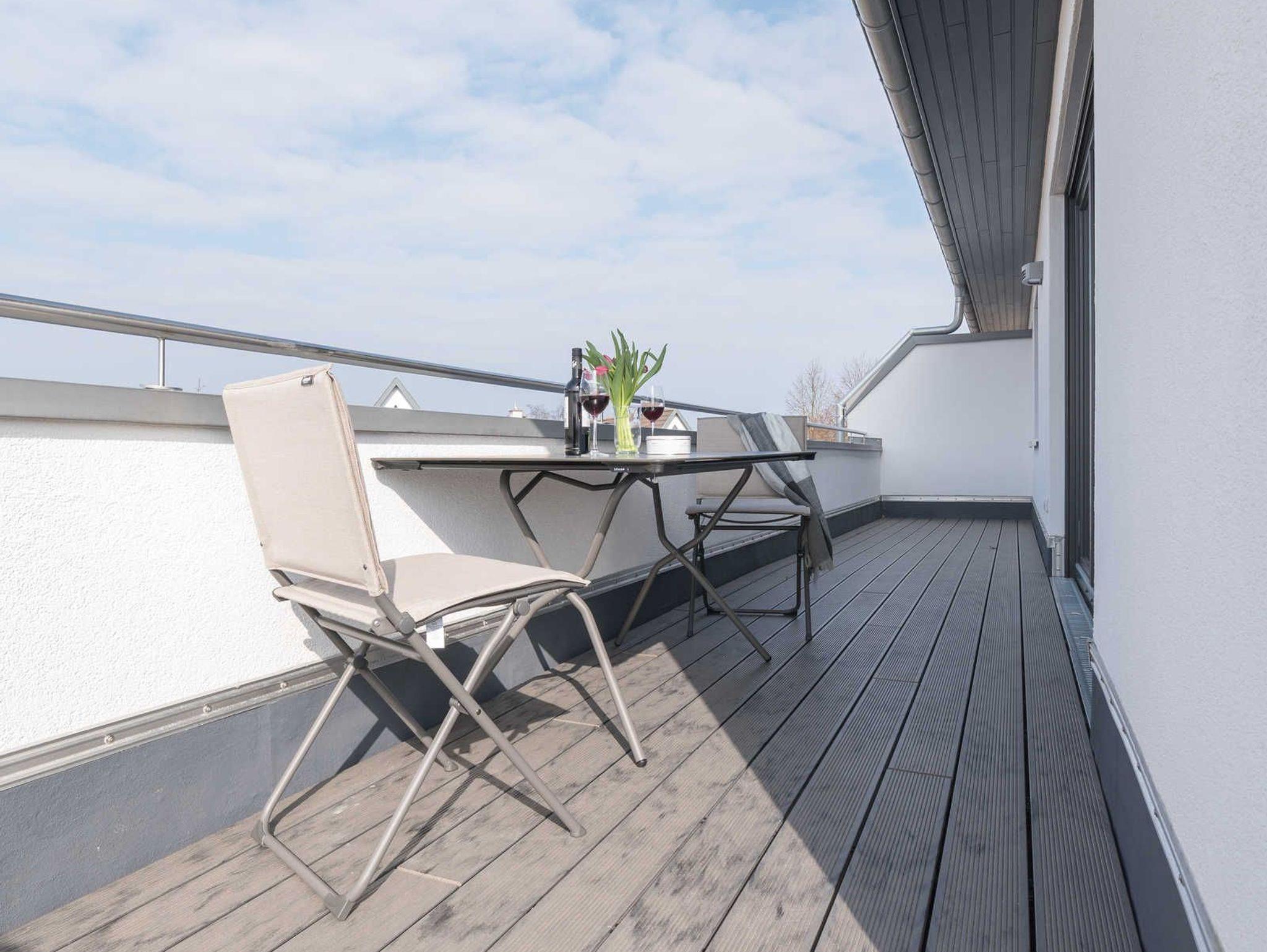 Die strandnahe, sonnige 3-Zimmer-Penthouse-Ferienwohnung befindet sich im zweiten Obergeschoss und verfügt über eine großzügige Dachterrasse nach Südwesten von fast 30 qm. Im Haus Baltic Cube sind sieben weitere Ferienunterkünfte, die zur erstmaligen Nutzung im Frühjahr 2018 fertiggestellt wurden.