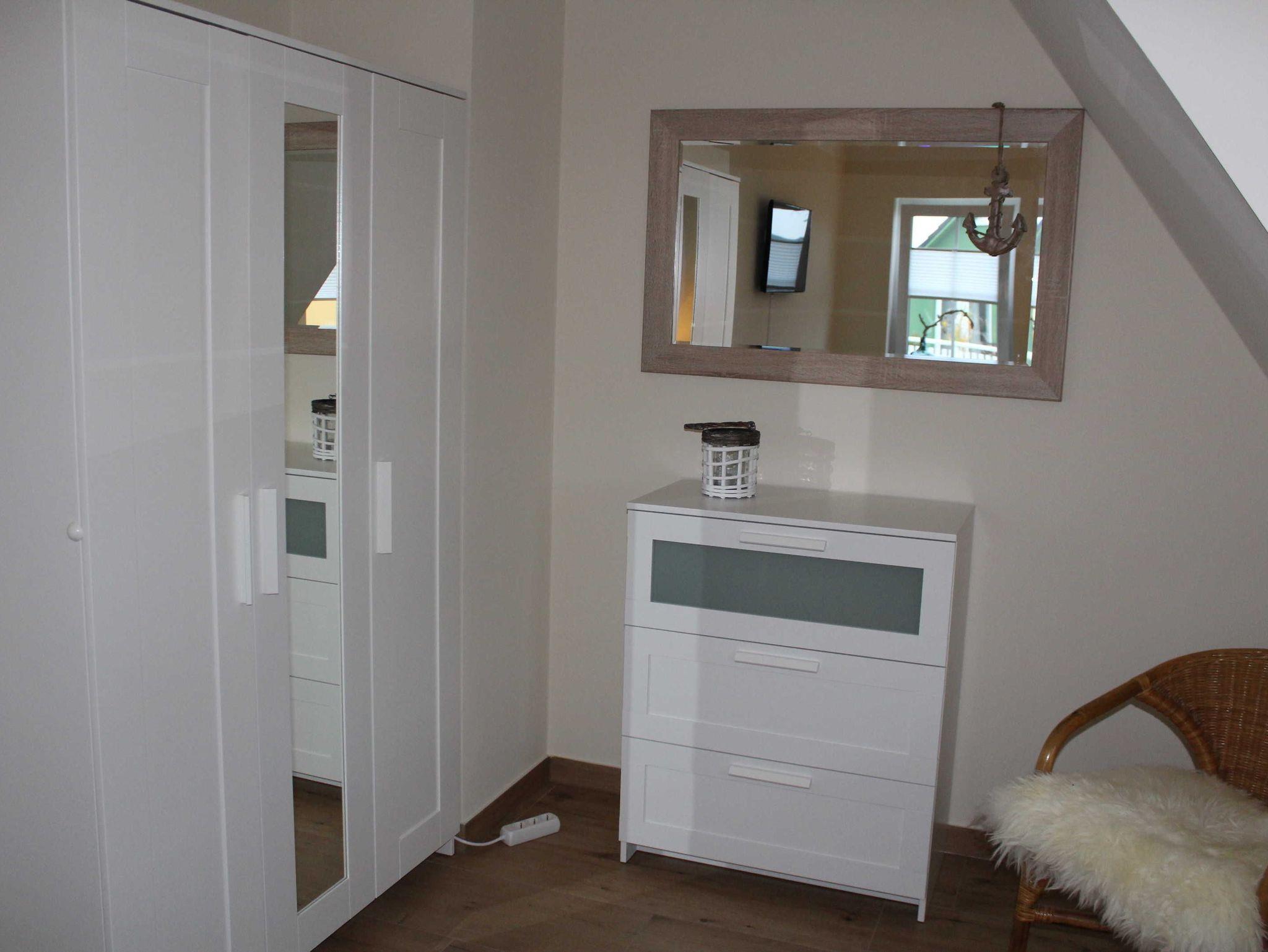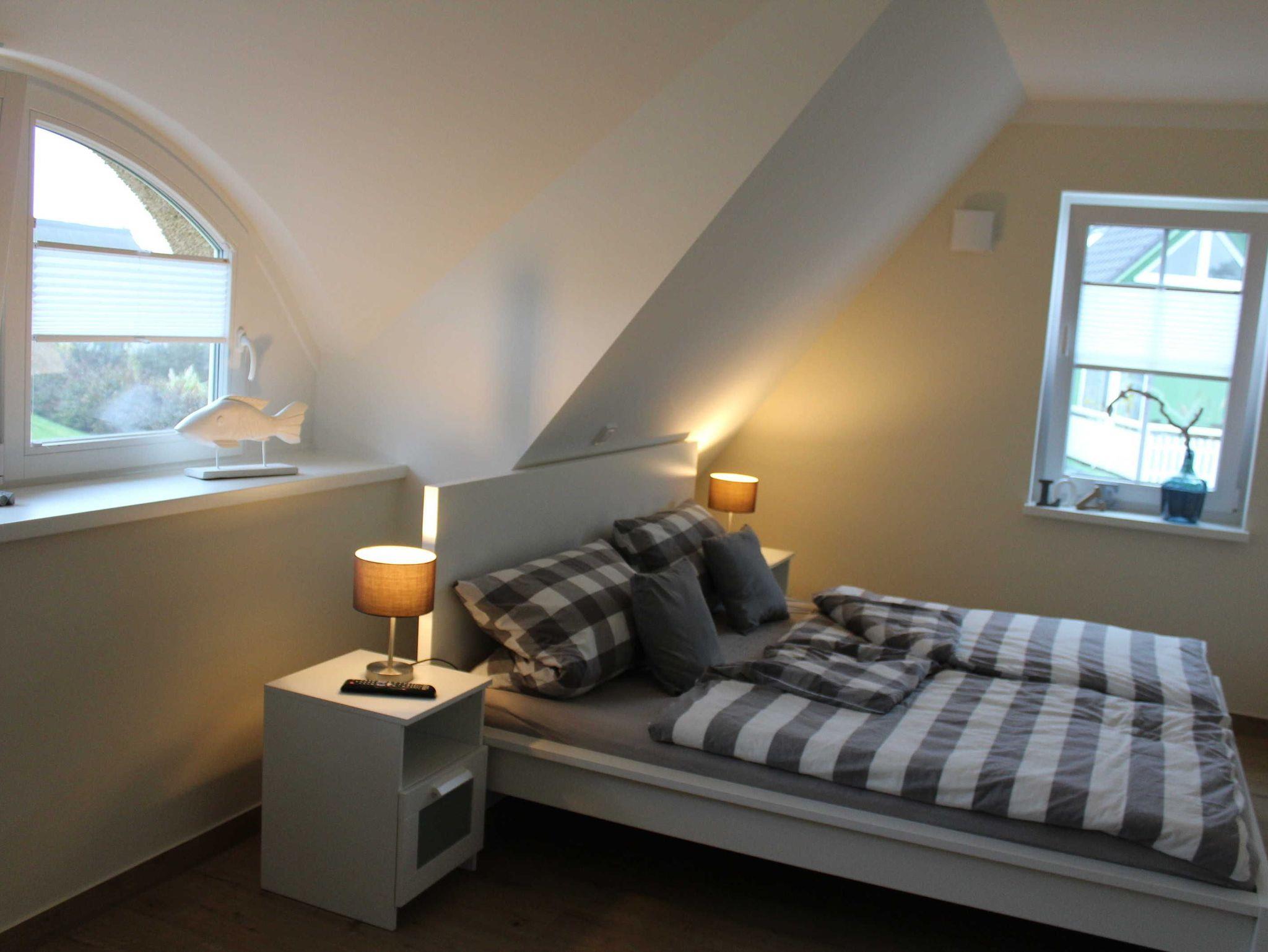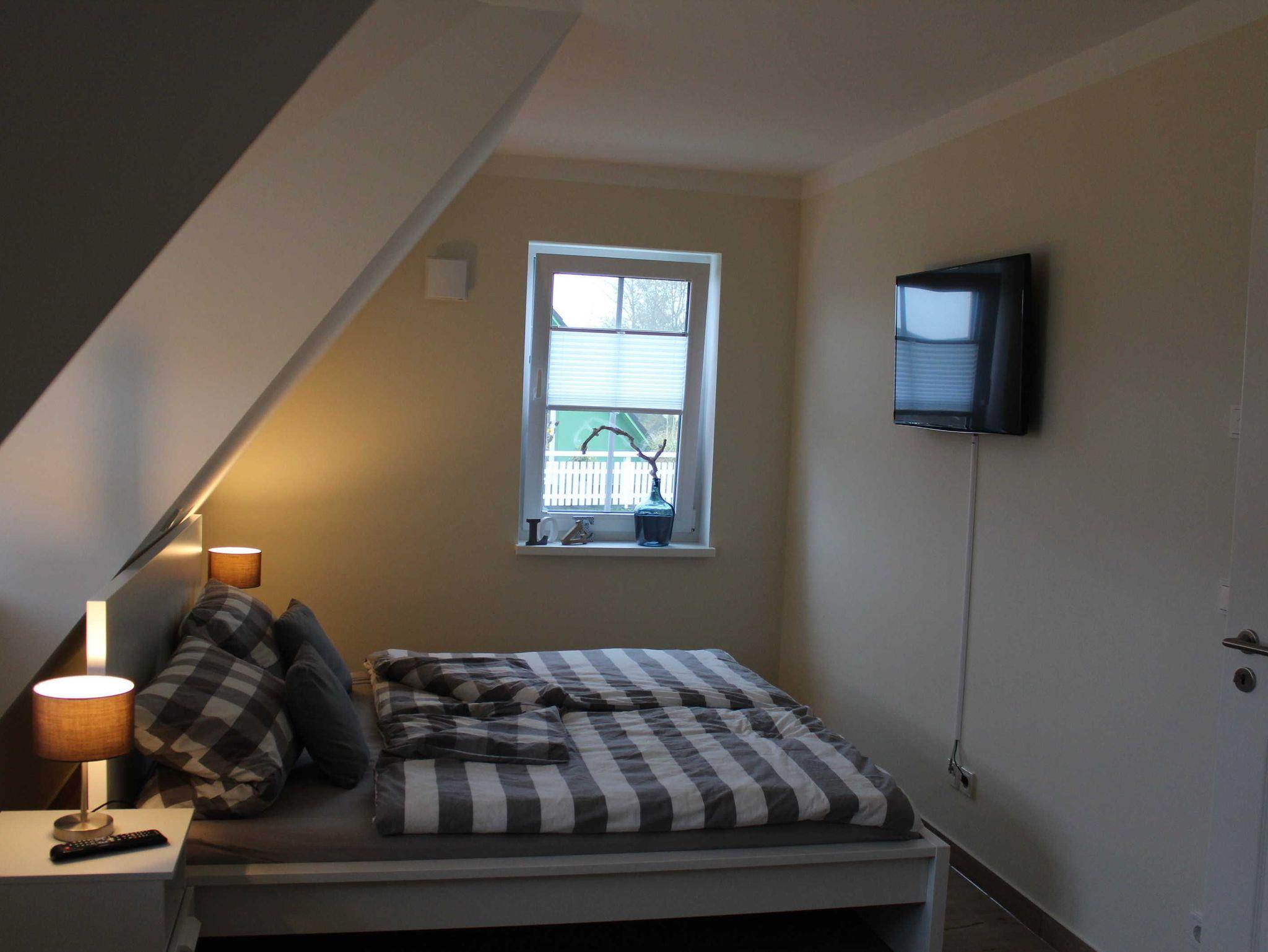 In zwei Schlafzimmern befinden sich je ein Doppelbett (180 x 200cm / durchgehende Matratze), ein Kleiderschrank bzw eine Komode und ein Flat-TV. Im Schlafzimmer im Dachgeschoss befinden sich ein Ausziehbett (160 x 200 cm / durchgehende Liegefläche) und eine Flachstrecke.