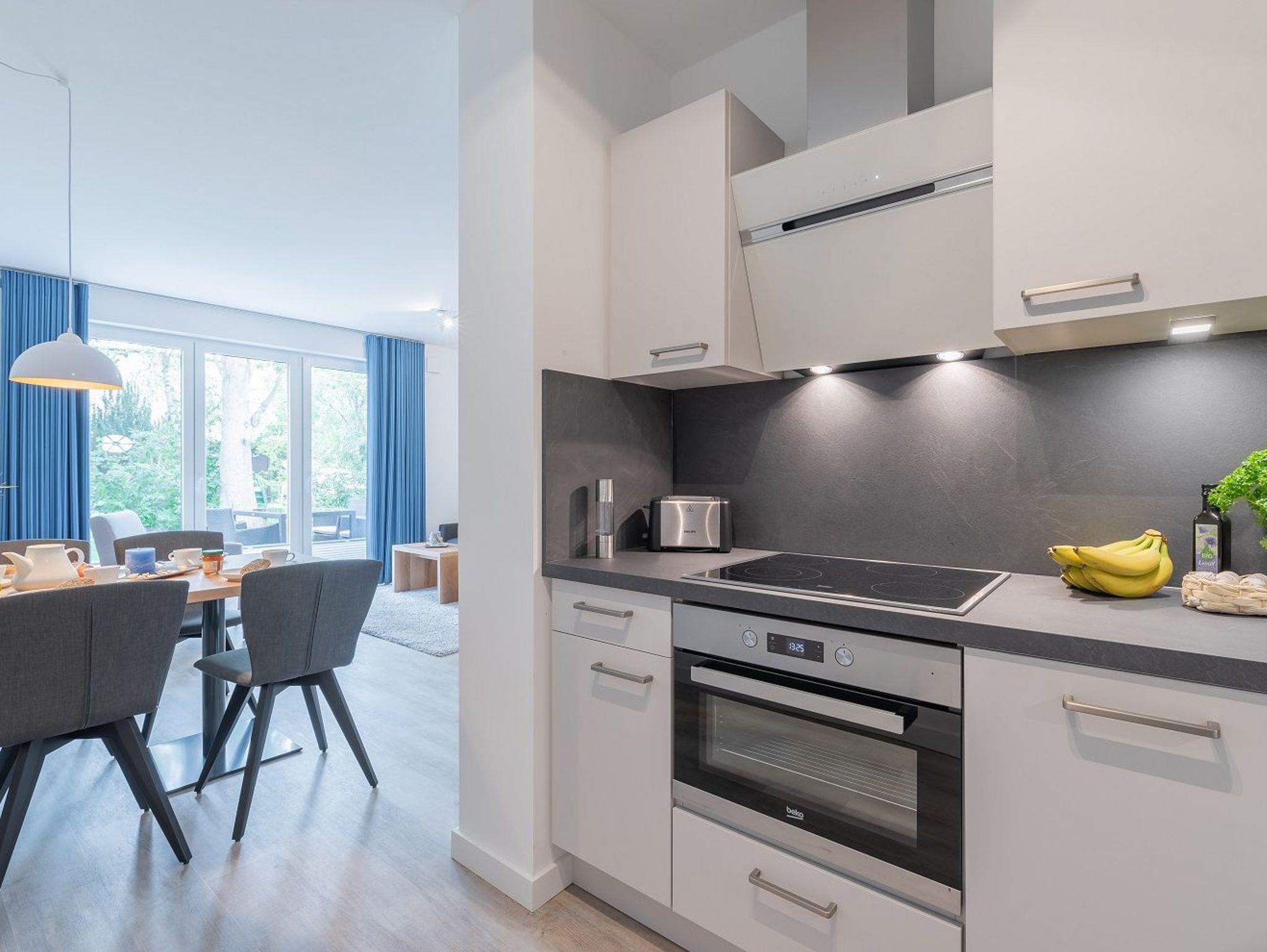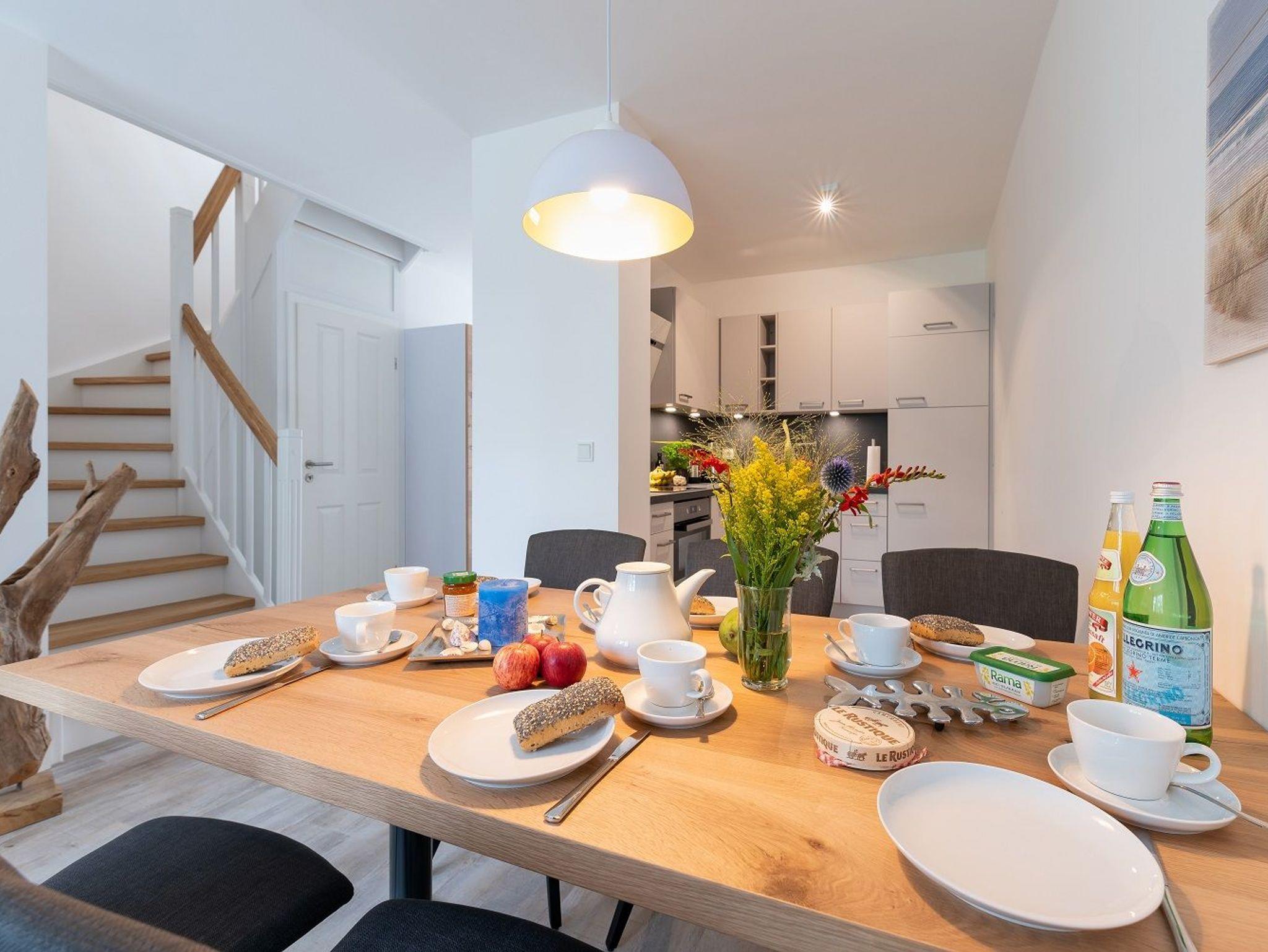 Die Ferienwohnung ist besonders familienfreundlich eingerichtet und ist eine Nichtraucher-Unterkunft. Im Erdgeschoss erwartet Sie ein großer und lichtdurchfluteter Wohn- und Essbereich mit offener Küche. Das Bad besticht mit ebenerdiger Dusche, Föhn und Handtuchtrockner. Zudem können Sie Ihr Reisegepäck in einem separaten Abstellraum verstauen.