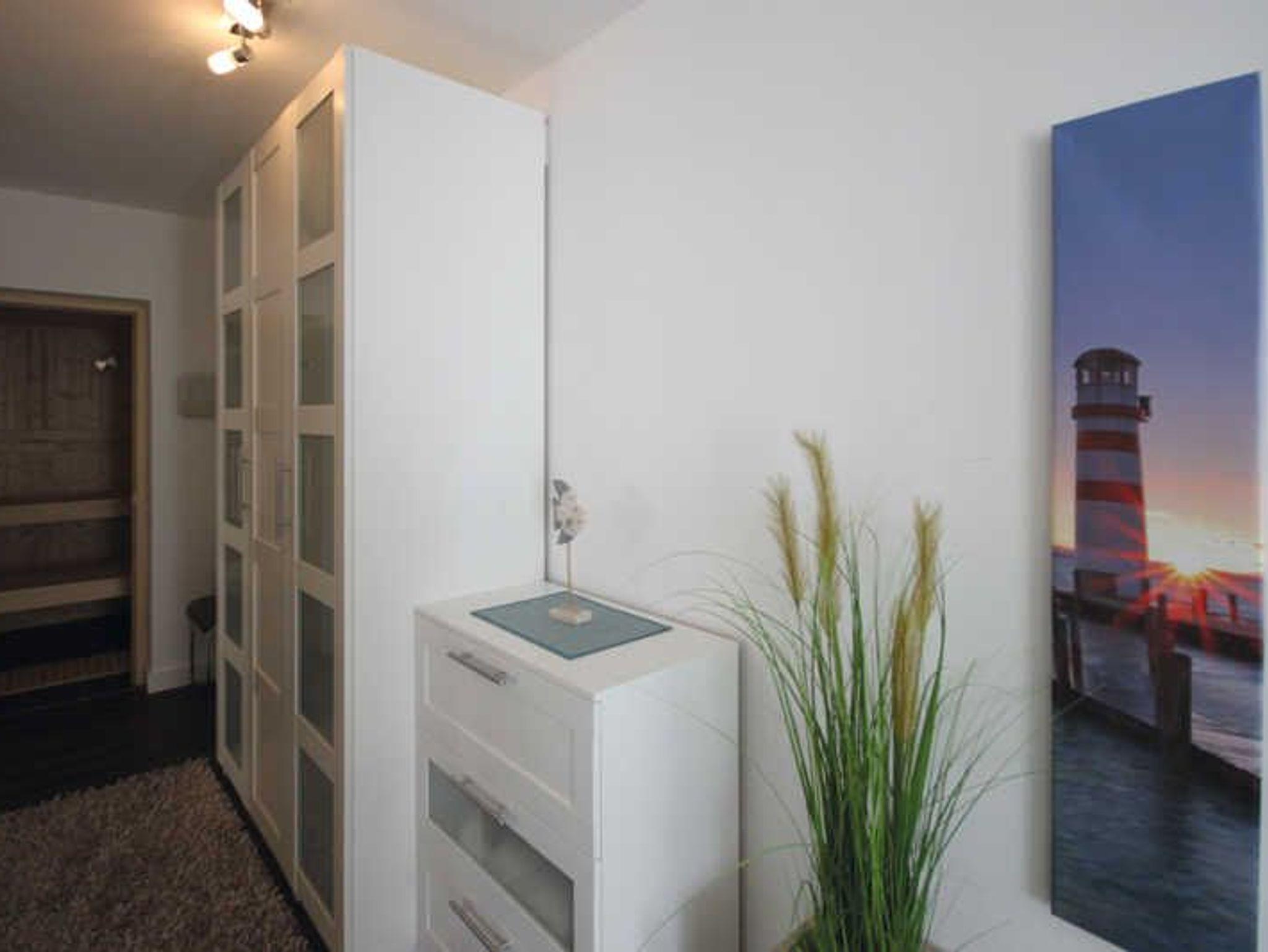 Die modern eingerichtete Zwei-Raumwohnung ist für max. zwei Erwachsene und ein Kind (bis 12 Jahre) ausgestattet. Der zur Küche hin offene Wohnbereich empfängt Sie mit einer großen Schlafcouch. Von dieser aus können Sie Sie sich News, Filme oder andere Sendungen im TV- Gerät anschauen. Oder Sie nutzen den vorhandenen DVD- Player und die Stereoanlage für weitere Unterhaltung. Zum Essen oder einem großen Spieleabend steht ein Esstisch mit vier Swing-Stühlen zur Verfügung. Die Küche selbst bietet, außer den Standardgeräten, ein Cerankochfeld (4 Platten), einen Backofen, eine Mikrowelle und einen Kühlschrank, inklusive Gefrierfach. So lässt sich auch mal das Lieblingsessen im Urlaub zubereiten. Für den erholsamen Urlaubsschlaf steht im Schlafraum ein Boxspringbett (durchgehende Matratze) zur Verfügung. Auch ein weiteres TV- Gerät ist hier vorhanden. Und für genügend Stauraum und knitterfreie Wäsche, sorgt der geräumige Kleiderschrank. Die Morgentoilette können Sie in der Dusche mit fußbodengleichem Einstieg ausgiebig vornehmen. Für die Pflege nach der Dusche steht im Duschbad ein moderner Waschtisch mit breitem Spiegel zur Verfügung. Zum Tagesabschluss geht es dann in die Sauna. Diese befindet sich gleich neben dem Schlafraum. Da die Sauna mit einem Münzautomaten betrieben wird, halten Sie bitte Münzen bereit. Für die Entspannung nach dem Strandtag sorgt eine Terrasse. Diese ist nach Süd-West ausgerichtet. Ein Terrassentisch mit vier entsprechenden Stühlen bietet genug Platz für eine Flasche Wein und etwas zum Naschen. Auf die Terrasse selbst gelangt man aus dem Wohnraum. Die Wohnung ist eine Nichtraucherwohnung. Haustiere sind nicht gestattet. Die kostenfreie WLAN-Verbindung in dieser Unterkunft ist ausschließlich für die Verwendung von Social Mediakanälen sowie den Austausch von Bildern mit Familie und Freunden gedacht. Eine Nutzung zum Streamen, z.B. von Filmen, ist nicht vorgesehen. Wäscheset, Kinderreisebett und Kinderhochstuhl können kostenpflichtig zugebucht werden. Eine Waschmaschine und Trockner stehen im Waschraum, der sich im Erdgeschoss befindet. Beide Geräte sind kostenpflichtig. Hier benötigen Sie 50 Cent Münzen. Zur Ferienwohnung gehört ein kostenfreier Tiefgaragenstellplatz. Bitte beachten Sie die Durchfahrtshöhe von max. 1,90 m. Überschreitet Ihr Fahrzeug die maximale Durchfahrtshöhe, können Sie auf einen kostenpflichtigen Parkplatz in unmittelbarer Nähe ausweichen. Außerdem befindet sich in der Tiefgarage ein abschließbarer Fahrradabstellraum. Und noch einen Hinweis: Sichern Sie sich zusätzlich den Anspruch auf einen der begehrten Strandkörbe nur ein paar Meter entfernt von den rauschenden Wellen der Ostsee (Anfang Mai - Ende August) und buchen Sie jetzt zu besonderen Konditionen (12,00 € pro Tag oder 75,00 € pro Woche.)
