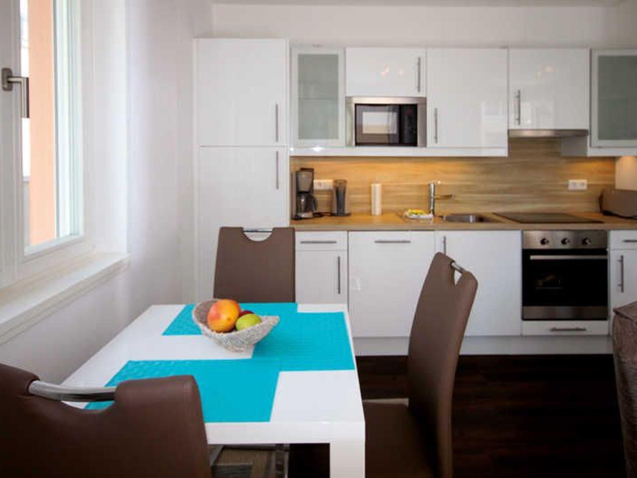 Die modern eingerichtete Zwei-Raumwohnung ist für max. zwei Erwachsene und ein Kind (bis 12 Jahre) ausgestattet. Der zur Küche hin offene Wohnbereich empfängt Sie mit einer großen Schlafcouch. Von dieser aus können Sie Sie sich News, Filme oder andere Sendungen im TV- Gerät anschauen. Oder Sie nutzen den vorhandenen DVD- Player und die Stereoanlage für weitere Unterhaltung. Zum Essen oder einem großen Spieleabend steht ein Esstisch mit vier Swing-Stühlen zur Verfügung. Die Küche selbst bietet, außer den Standardgeräten, ein Cerankochfeld (4 Platten), einen Backofen, eine Mikrowelle und einen Kühlschrank, inklusive Gefrierfach. So lässt sich auch mal das Lieblingsessen im Urlaub zubereiten. Für den erholsamen Urlaubsschlaf steht im Schlafraum ein Boxspringbett (durchgehende Matratze) zur Verfügung. Auch ein weiteres TV- Gerät ist hier vorhanden. Und für genügend Stauraum und knitterfreie Wäsche, sorgt der geräumige Kleiderschrank. Die Morgentoilette können Sie in der Dusche mit fußbodengleichem Einstieg ausgiebig vornehmen. Für die Pflege nach der Dusche steht im Duschbad ein moderner Waschtisch mit breitem Spiegel zur Verfügung. Zum Tagesabschluss geht es dann in die Sauna. Diese befindet sich gleich neben dem Schlafraum. Da die Sauna mit einem Münzautomaten betrieben wird, halten Sie bitte Münzen bereit. Für die Entspannung nach dem Strandtag sorgt eine Terrasse. Diese ist nach Süd-West ausgerichtet. Ein Terrassentisch mit vier entsprechenden Stühlen bietet genug Platz für eine Flasche Wein und etwas zum Naschen. Auf die Terrasse selbst gelangt man aus dem Wohnraum. Die Wohnung ist eine Nichtraucherwohnung. Haustiere sind nicht gestattet. Die kostenfreie WLAN-Verbindung in dieser Unterkunft ist ausschließlich für die Verwendung von Social Mediakanälen sowie den Austausch von Bildern mit Familie und Freunden gedacht. Eine Nutzung zum Streamen, z.B. von Filmen, ist nicht vorgesehen. Wäscheset, Kinderreisebett und Kinderhochstuhl können kostenpflichtig zugebucht werden. Eine Waschmaschine und Trockner stehen im Waschraum, der sich im Erdgeschoss befindet. Beide Geräte sind kostenpflichtig. Hier benötigen Sie 50 Cent Münzen. Zur Ferienwohnung gehört ein kostenfreier Tiefgaragenstellplatz. Bitte beachten Sie die Durchfahrtshöhe von max. 1,90 m. Überschreitet Ihr Fahrzeug die maximale Durchfahrtshöhe, können Sie auf einen kostenpflichtigen Parkplatz in unmittelbarer Nähe ausweichen. Außerdem befindet sich in der Tiefgarage ein abschließbarer Fahrradabstellraum. Und noch einen Hinweis: Sichern Sie sich zusätzlich den Anspruch auf einen der begehrten Strandkörbe nur ein paar Meter entfernt von den rauschenden Wellen der Ostsee (Anfang Mai - Ende August) und buchen Sie jetzt zu besonderen Konditionen (12,00 Euro pro Tag oder 75,00 Euro pro Woche.)