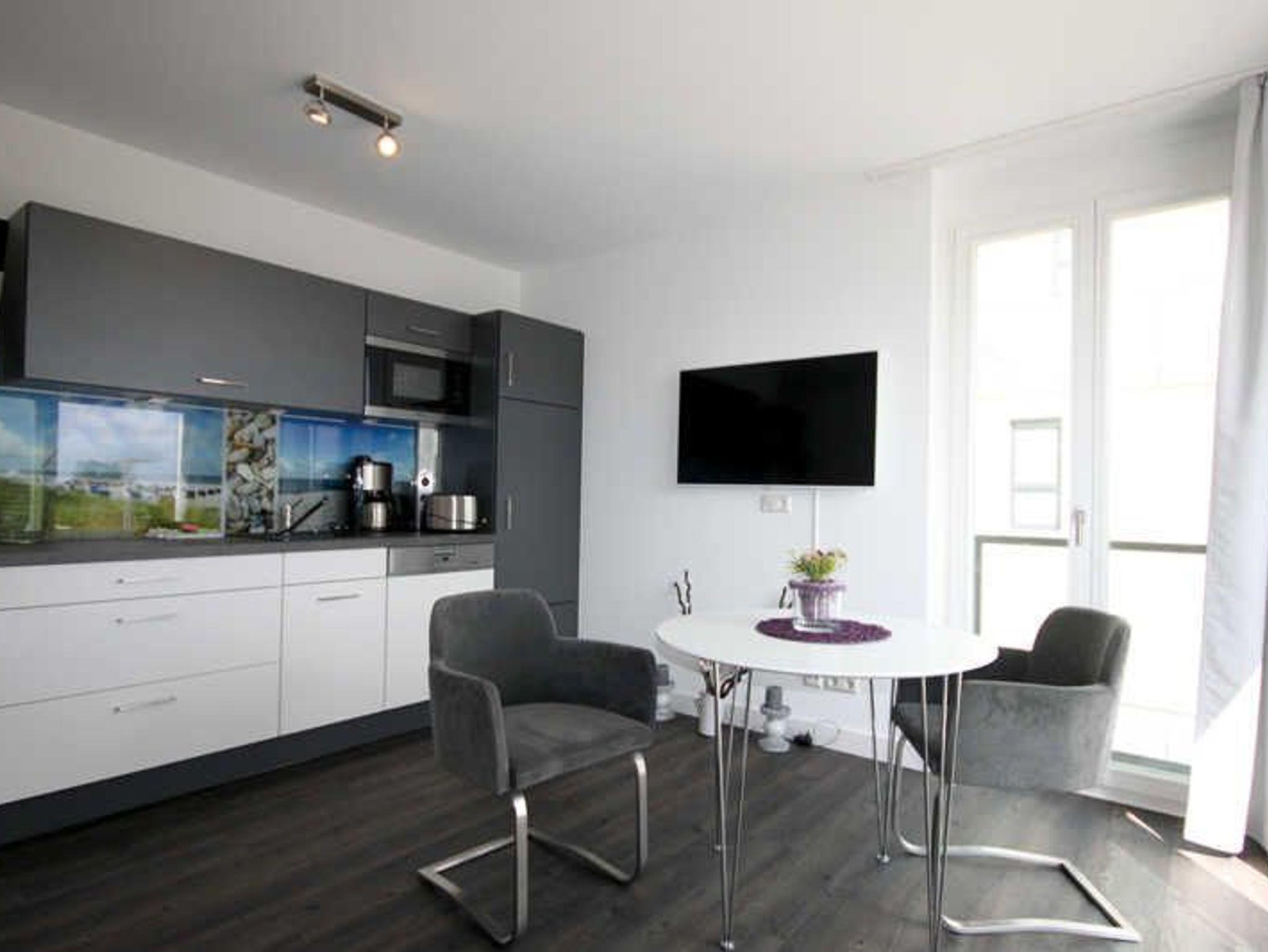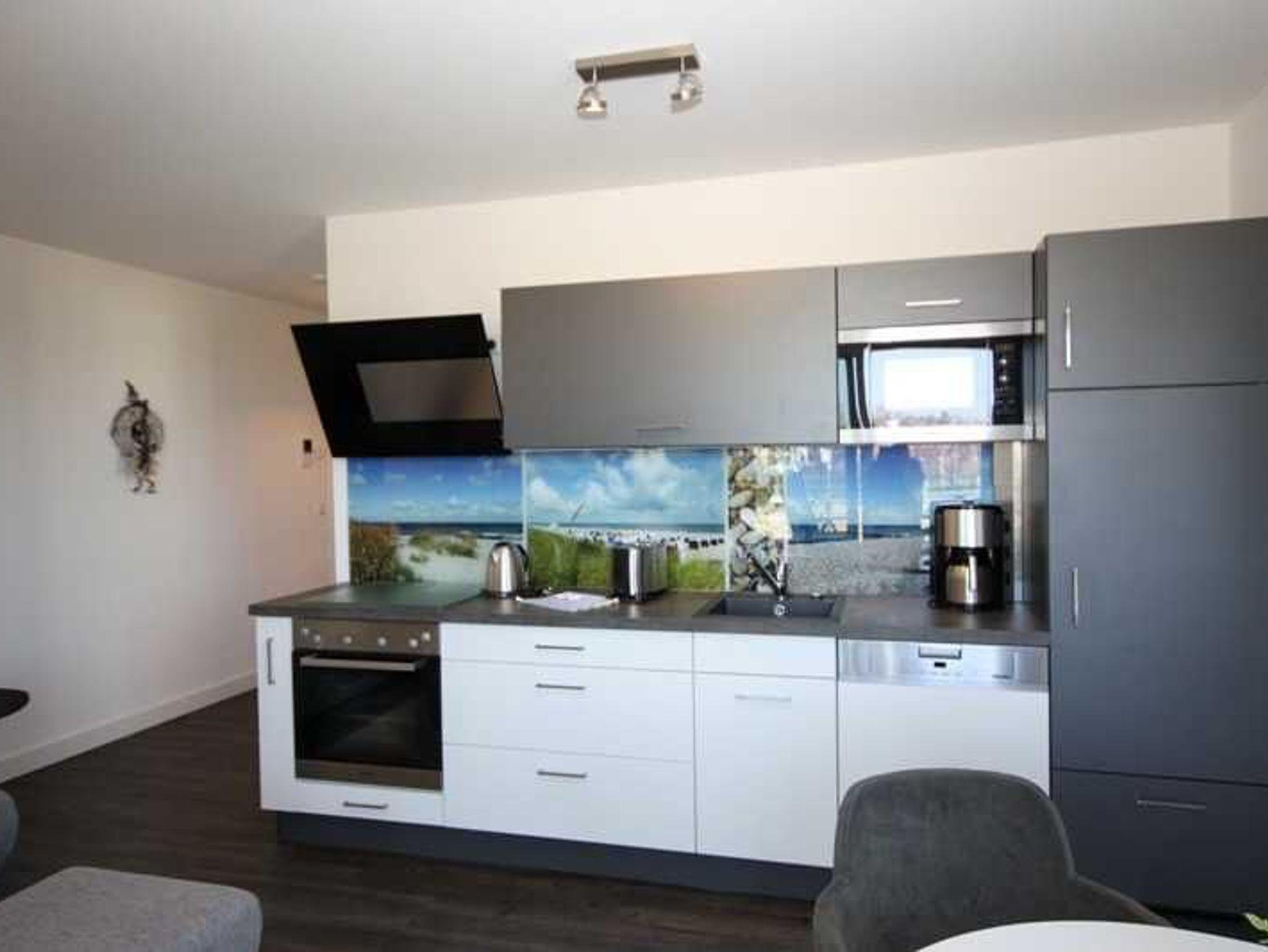 Diese hochwertige Ferienwohnung besteht aus einem Wohn- und Essbereich, einem Schlafraum sowie Balkon. Im Wohnbereich finden Sie eine bequeme Zweisitzer-Couch und einen Flatscreen-TV. Das Schlafzimmer bietet Ihnen ein großes Boxspringbett mit einer durchgehenden und angenehm weichen Matratze. Für weitere Bequemlichkeit sorgt hier ein begehbarer Kleiderschrank. Die offene Küche- mit rundem Esstisch und zwei bequemen Stühlen, lädt natürlich zum Essen oder zu einem Spieleabend ein. Die Küchenzeile überzeugt mit Geschirrspüler, Mikrowelle, Backofen, Cerankochfeld und Kühlschrank, inklusive Gefrierfach. Das großzügige Duschbad verfügt über eine bodengleiche Dusche, einen Handtuchwärmer, einen kompakten Waschtisch und einen Föhn. Im Strandkorb auf dem eigenen Balkon in Nordausrichtung können Sie wunderbar relaxen. Für Ihr Fahrzeug steht ein kostenfreier Tiefgaragenplatz mit Aufzug bis zur Wohnungsetage bereit. Bitte beachten Sie die Durchfahrtshöhe von max. 1,90 m. Bei Überschreitung der maximalen Durchfahrtshöhe, besteht die Möglichkeit auf einen kostenpflichtigen Parkplatz in unmittelbarer Nähe auszuweichen. Ihre Fahrräder können im abschließbarer Fahrradraum der Tiefgarage im Gebäude sicher aufbewahrt werden. Noch einige Hinweise: Die Wohnung selbst ist eine Nichtraucherwohnung. Haustiere sind hier generell nicht erlaubt. Das kostenfreie WLAN in der Unterkunft ist ausschließlich für die Verwendung von Social Media und den Austausch von Bildern mit Familie und Freunden gedacht. Die Nutzung zum Streamen von Filmen ist nicht vorgesehen. Wäscheset, Kinderreisebett und Kinderhochstuhl können kostenpflichtig zugebucht werden. Eine Waschmaschine und ein Trockner stehen im Waschraum im Erdgeschoss des Objekts gegen Gebühr zur Verfügung (50 Cent- Münzen). Sichern Sie sich zusätzlich den Anspruch auf einen der begehrten Strandkörbe nur ein paar Meter entfernt von den rauschenden Wellen der Ostsee (Anfang Mai - Ende August) und buchen Sie jetzt zu besonderen Konditionen (12,00 € pro Tag oder 75,00 € pro Woche.)