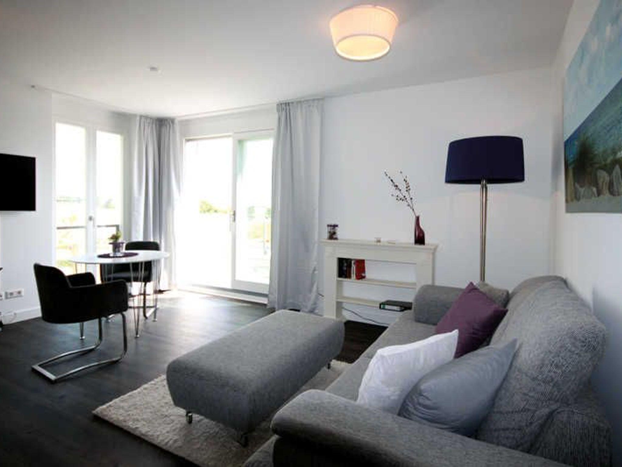 Diese hochwertige Ferienwohnung besteht aus einem Wohn- und Essbereich, einem Schlafraum sowie Balkon. Im Wohnbereich finden Sie eine bequeme Zweisitzer-Couch und einen Flatscreen-TV. Das Schlafzimmer bietet Ihnen ein großes Boxspringbett mit einer durchgehenden und angenehm weichen Matratze. Für weitere Bequemlichkeit sorgt hier ein begehbarer Kleiderschrank. Die offene Küche- mit rundem Esstisch und zwei bequemen Stühlen, lädt natürlich zum Essen oder zu einem Spieleabend ein. Die Küchenzeile überzeugt mit Geschirrspüler, Mikrowelle, Backofen, Cerankochfeld und Kühlschrank, inklusive Gefrierfach. Das großzügige Duschbad verfügt über eine bodengleiche Dusche, einen Handtuchwärmer, einen kompakten Waschtisch und einen Föhn. Im Strandkorb auf dem eigenen Balkon in Nordausrichtung können Sie wunderbar relaxen. Für Ihr Fahrzeug steht ein kostenfreier Tiefgaragenplatz mit Aufzug bis zur Wohnungsetage bereit. Bitte beachten Sie die Durchfahrtshöhe von max. 1,90 m. Bei Überschreitung der maximalen Durchfahrtshöhe, besteht die Möglichkeit auf einen kostenpflichtigen Parkplatz in unmittelbarer Nähe auszuweichen. Ihre Fahrräder können im abschließbarer Fahrradraum der Tiefgarage im Gebäude sicher aufbewahrt werden. Noch einige Hinweise: Die Wohnung selbst ist eine Nichtraucherwohnung. Haustiere sind hier generell nicht erlaubt. Das kostenfreie WLAN in der Unterkunft ist ausschließlich für die Verwendung von Social Media und den Austausch von Bildern mit Familie und Freunden gedacht. Die Nutzung zum Streamen von Filmen ist nicht vorgesehen. Wäscheset, Kinderreisebett und Kinderhochstuhl können kostenpflichtig zugebucht werden. Eine Waschmaschine und ein Trockner stehen im Waschraum im Erdgeschoss des Objekts gegen Gebühr zur Verfügung (50 Cent- Münzen). Sichern Sie sich zusätzlich den Anspruch auf einen der begehrten Strandkörbe nur ein paar Meter entfernt von den rauschenden Wellen der Ostsee (Anfang Mai - Ende August) und buchen Sie jetzt zu besonderen Konditionen (12,00 Euro pro Tag oder 75,00 Euro pro Woche.)