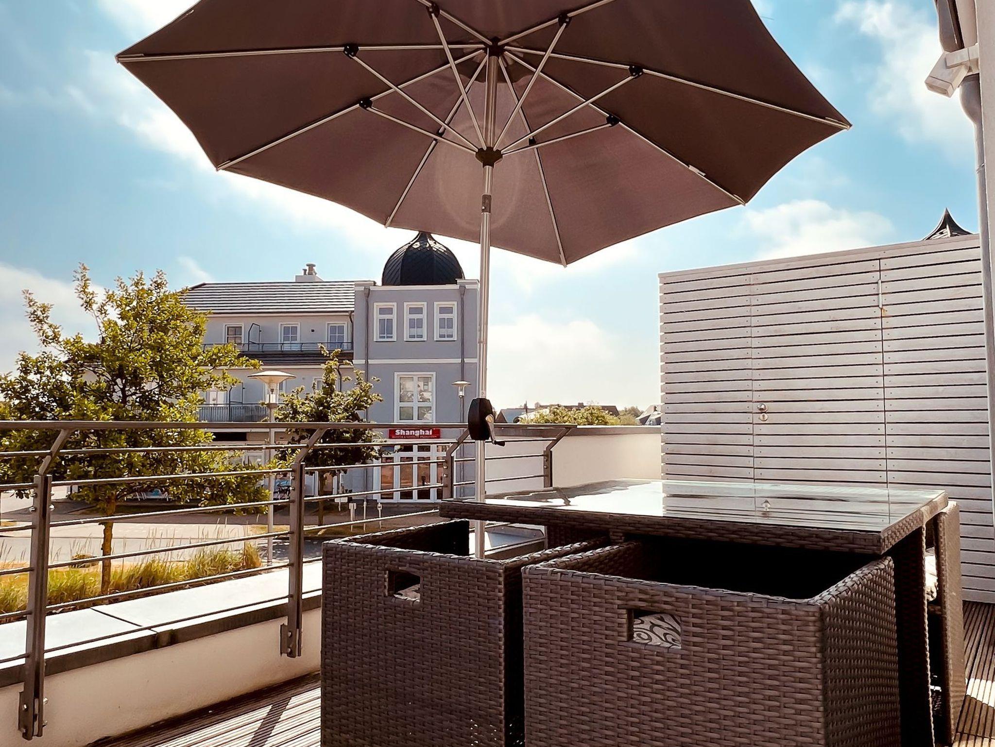 Der Wohnbereich dieser freundlichen Ferienwohnung wartet auf Sie mit einer angenehmen Schlafcouch (144 x 204) als Aufbettung für einen dritten und vierten Gast. Sollte mal kein Strandwetter sein, sorgen Sie mit einem TV-Gerät und einer kleinen Stereoanlage für gute Laune. Im Wohnraum befindet sich auch der Esstisch mit vier gepolsterten Stühlen. Postiert gleich neben der offenen Küche. Die Küche selbst beinhaltet neben der Standardausrüstung einen Herd (4x Ceranfeld), Backofen, Geschirrspüler, Mikrowelle, eine ?Nespresso Maschine? sowie einen Kühlschrank, inklusive Gefrierfach. Im hellen Schlafraum steht ein Doppelbett für den entspannten Urlaubsschlaf zur Verfügung. Ein wandmontiertes-TV Gerät und ein Bluetooth-Radio mit CD-Player am Bett, erleichtern das Aufstehen im Urlaub. Als Stauraum steht eine Kofferablage zur Verfügung. Für die Urlaubshygiene ist das moderne Duschbad entsprechend eingerichtet worden. Neben der fußbodengleichen Dusche gibt es einen Handtuchtrockner, einen Fön, eine in die Wand integrierte Ablage und natürlich einen komfortablen Waschtisch mit großem beleuchtetem Spiegel. Wie der Schlafraum auch, ist der Zugang zur Sauna über den Flur- Wohnbereich möglich. In dieser Ferienwohnung ist die Entspannung in der Sauna kostenlos. Auf den Balkon gelangen Sie sowohl vom Wohnzimmer als auch vom Schlafraum aus. Da dieser in Richtung Osten angelegt wurde, lässt sich hier ausgiebig Frühstücken. Bei Bedarf kann der installierte Sonnenschirm genutzt werden. Zu dieser Ferienwohnung gehört ebenfalls ein kostenfreier PKW- Stellplatz in der Tiefgarage des Gebäudes. Bitte beachten Sie die Durchfahrtshöhe von max. 1,90 m! Bei Überschreitung dieser maximalen Durchfahrtshöhe, besteht die Möglichkeit auf einen kostenpflichtigen Parkplatz in unmittelbarer Nähe auszuweichen. Für mitgebrachte oder auch angemietete Fahrräder steht ein abschließbarer Fahrradraum in dieser Tiefgarage zur Verfügung. Und auch einen Aufzug, der Ihr Urlaubsgepäck in Ihre Wohnetage bringt, ist dort zu finden. Noch einige Hinweise: Für die dritte und vierte Person (ab 3 Jahre) wird Ihnen ein Aufpreis in Höhe von 10,00 Euro/ÜN und Person berechnet. Die Unterkunft ist nur für Nichtraucher zu mieten. Haustiere sind nicht erlaubt. Wäscheset, Kinderreisebett und Kinderhochstuhl können kostenpflichtig dazugebucht werden. Möchten Sie ein Kleidungsstück waschen, finden Sie im Erdgeschoss eine Waschmaschine und einen Trockner. Diese sind in einem separaten Raum (Waschraum) untergebracht. Zum Betreiben werden 50 Cent- Münzen benötigt. Sichern Sie sich zusätzlich den Anspruch auf einen der begehrten Strandkörbe nur ein paar Meter entfernt von den rauschenden Wellen der Ostsee (Anfang Mai - Ende August) und buchen Sie jetzt zu besonderen Konditionen (12,00 Euro pro Tag oder 75,00 Euro pro Woche.) In dieser Wohnung steht kein WLAN zur Verfügung.
