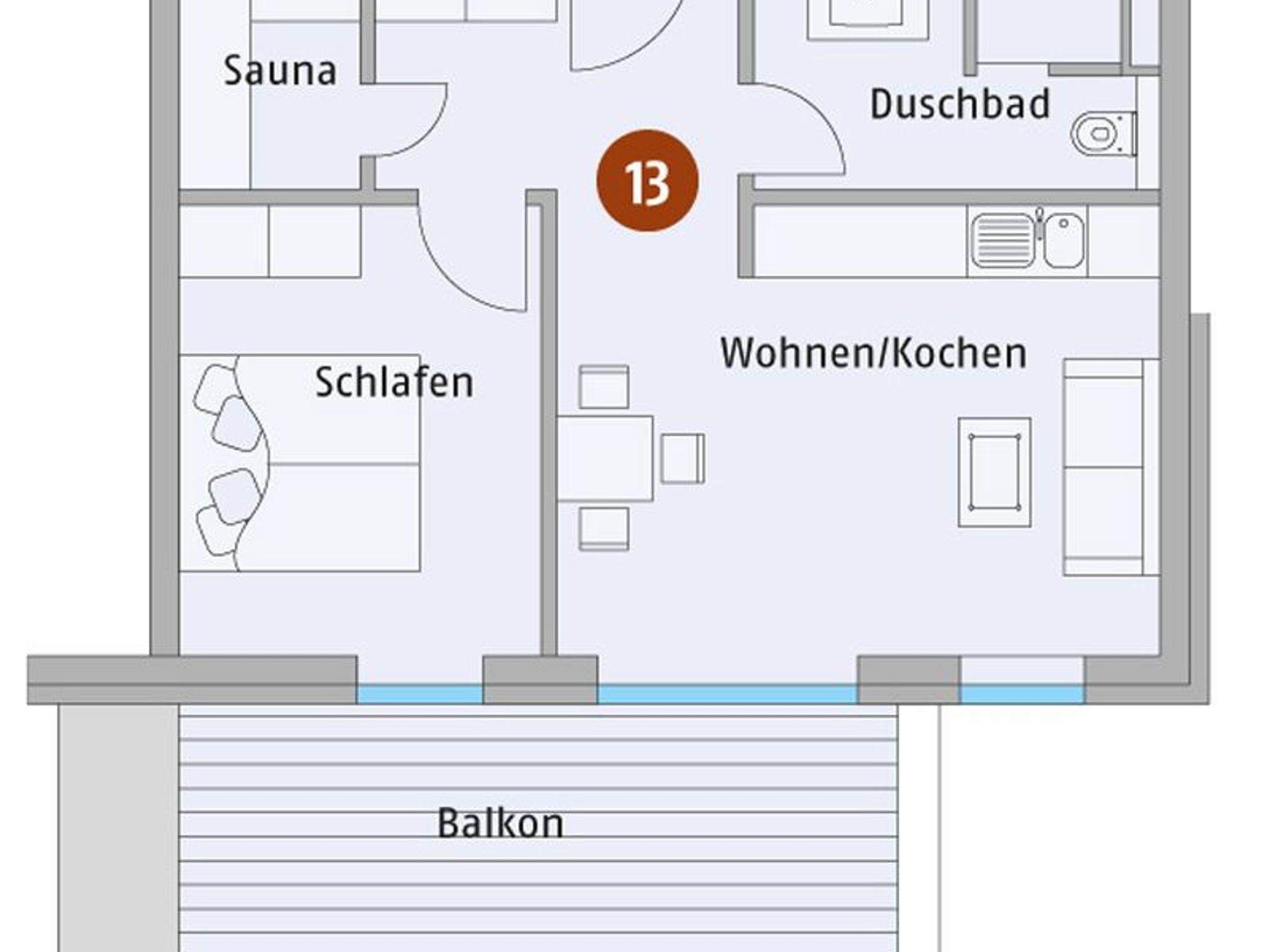 Strandnahe Zweiraumwohnung für max. vier Personen inklusive Sauna im 1.OG.