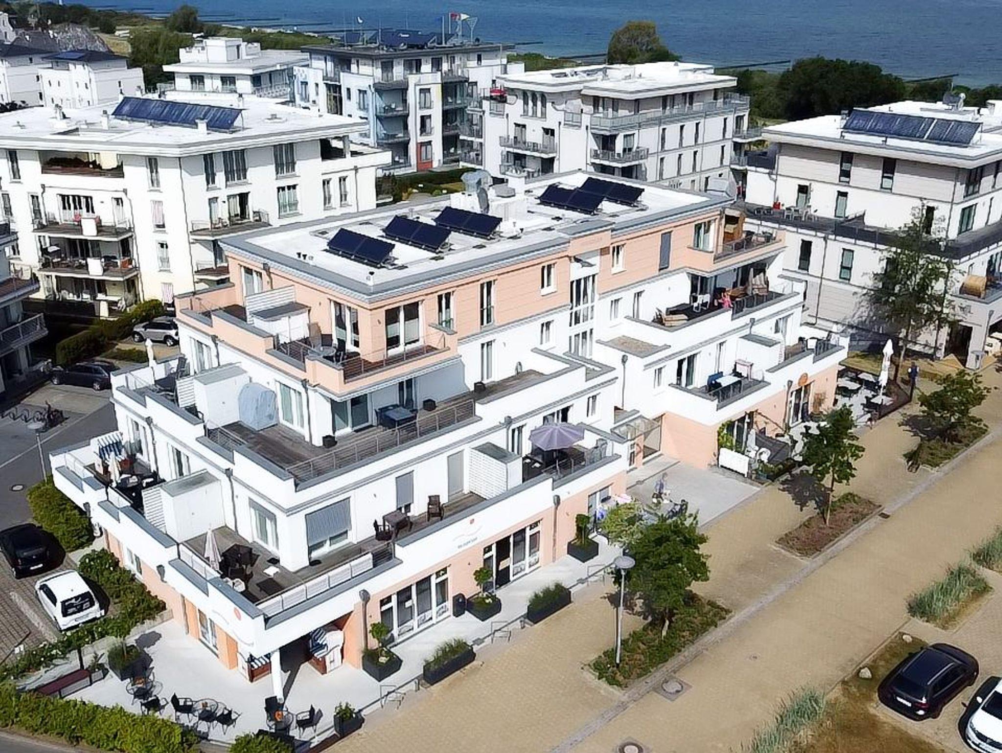 Der Wohnbereich dieser freundlichen Ferienwohnung wartet auf Sie mit einer angenehmen Schlafcouch (144 x 204) als Aufbettung für einen dritten und vierten Gast. Sollte mal kein Strandwetter sein, sorgen Sie mit einem TV-Gerät und einer kleinen Stereoanlage für gute Laune. Im Wohnraum befindet sich auch der Esstisch mit vier gepolsterten Stühlen. Postiert gleich neben der offenen Küche. Die Küche selbst beinhaltet neben der Standardausrüstung einen Herd (4x Ceranfeld), Backofen, Geschirrspüler, Mikrowelle, eine „Nespresso Maschine“ sowie einen Kühlschrank, inklusive Gefrierfach. Im hellen Schlafraum steht ein Doppelbett für den entspannten Urlaubsschlaf zur Verfügung. Ein wandmontiertes-TV Gerät und ein Bluetooth-Radio mit CD-Player am Bett, erleichtern das Aufstehen im Urlaub. Als Stauraum steht eine Kofferablage zur Verfügung. Für die Urlaubshygiene ist das moderne Duschbad entsprechend eingerichtet worden. Neben der fußbodengleichen Dusche gibt es einen Handtuchtrockner, einen Fön, eine in die Wand integrierte Ablage und natürlich einen komfortablen Waschtisch mit großem beleuchtetem Spiegel. Wie der Schlafraum auch, ist der Zugang zur Sauna über den Flur- Wohnbereich möglich. In dieser Ferienwohnung ist die Entspannung in der Sauna kostenlos. Auf den Balkon gelangen Sie sowohl vom Wohnzimmer als auch vom Schlafraum aus. Da dieser in Richtung Osten angelegt wurde, lässt sich hier ausgiebig Frühstücken. Bei Bedarf kann der installierte Sonnenschirm genutzt werden. Zu dieser Ferienwohnung gehört ebenfalls ein kostenfreier PKW- Stellplatz in der Tiefgarage des Gebäudes. Bitte beachten Sie die Durchfahrtshöhe von max. 1,90 m! Bei Überschreitung dieser maximalen Durchfahrtshöhe, besteht die Möglichkeit auf einen kostenpflichtigen Parkplatz in unmittelbarer Nähe auszuweichen. Für mitgebrachte oder auch angemietete Fahrräder steht ein abschließbarer Fahrradraum in dieser Tiefgarage zur Verfügung. Und auch einen Aufzug, der Ihr Urlaubsgepäck in Ihre Wohnetage bringt, ist dort zu finden. Noch einige Hinweise: Für die dritte und vierte Person (ab 3 Jahre) wird Ihnen ein Aufpreis in Höhe von 10,00 €/ÜN und Person berechnet. Die Unterkunft ist nur für Nichtraucher zu mieten. Haustiere sind nicht erlaubt. Wäscheset, Kinderreisebett und Kinderhochstuhl können kostenpflichtig dazugebucht werden. Möchten Sie ein Kleidungsstück waschen, finden Sie im Erdgeschoss eine Waschmaschine und einen Trockner. Diese sind in einem separaten Raum (Waschraum) untergebracht. Zum Betreiben werden 50 Cent- Münzen benötigt. Sichern Sie sich zusätzlich den Anspruch auf einen der begehrten Strandkörbe nur ein paar Meter entfernt von den rauschenden Wellen der Ostsee (Anfang Mai - Ende August) und buchen Sie jetzt zu besonderen Konditionen (12,00 € pro Tag oder 75,00 € pro Woche.) In dieser Wohnung steht kein WLAN zur Verfügung.
