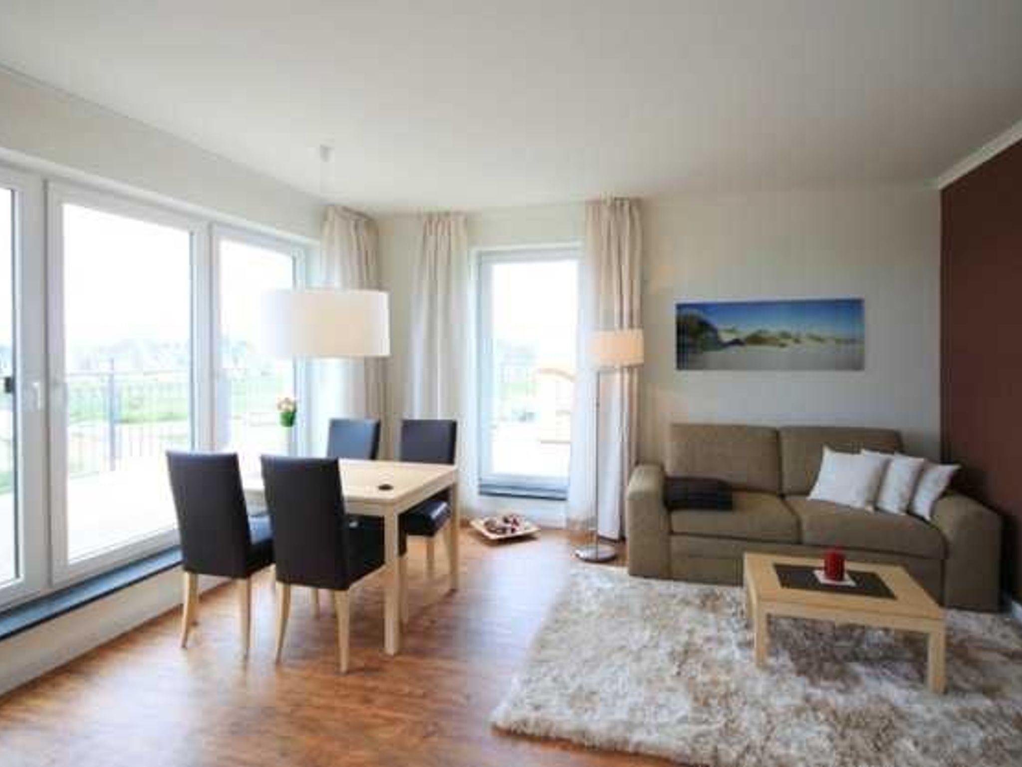 Strandnahe exklusive 2 Raumwohnung für max. 3 Erwachsene und 1 Kleinkind, Balkon mit Strandkorb und seitlichem Meerblick im 2. OG.