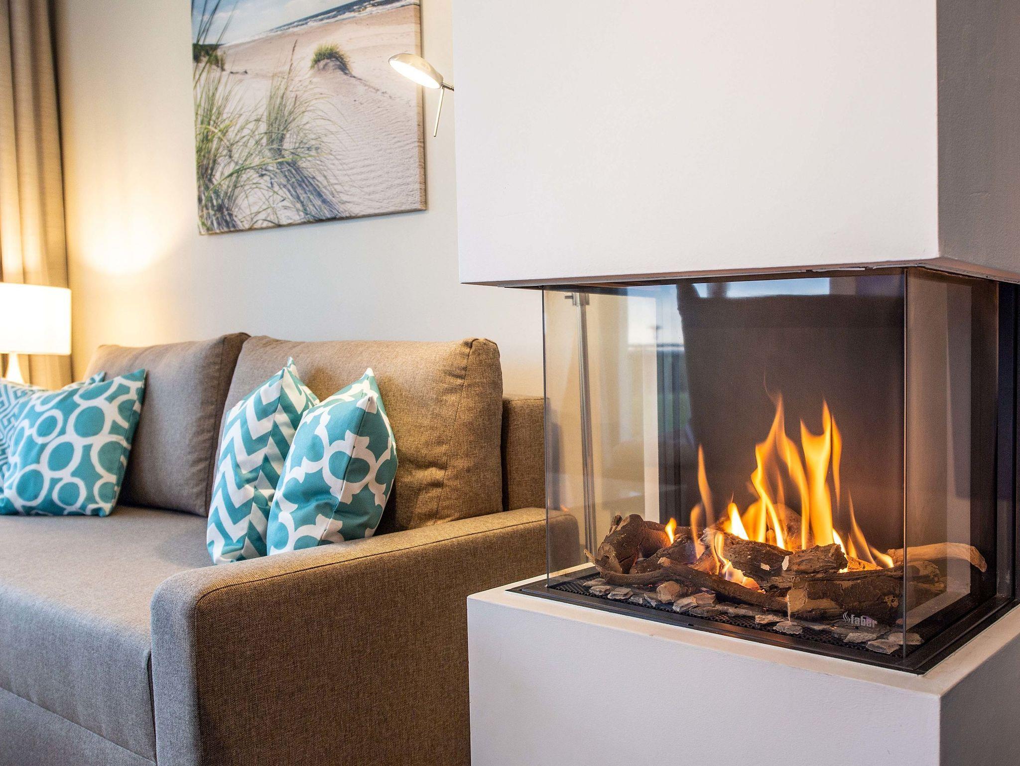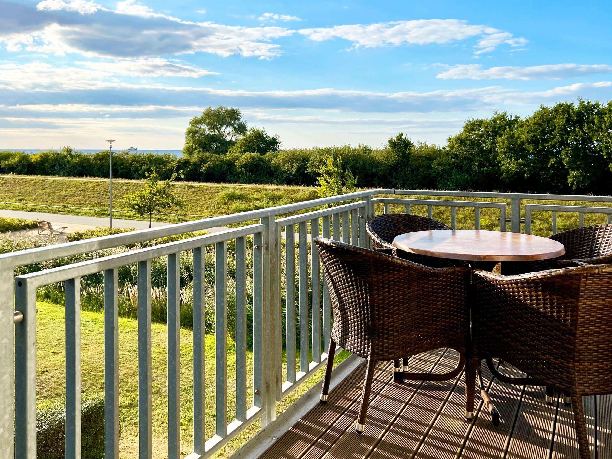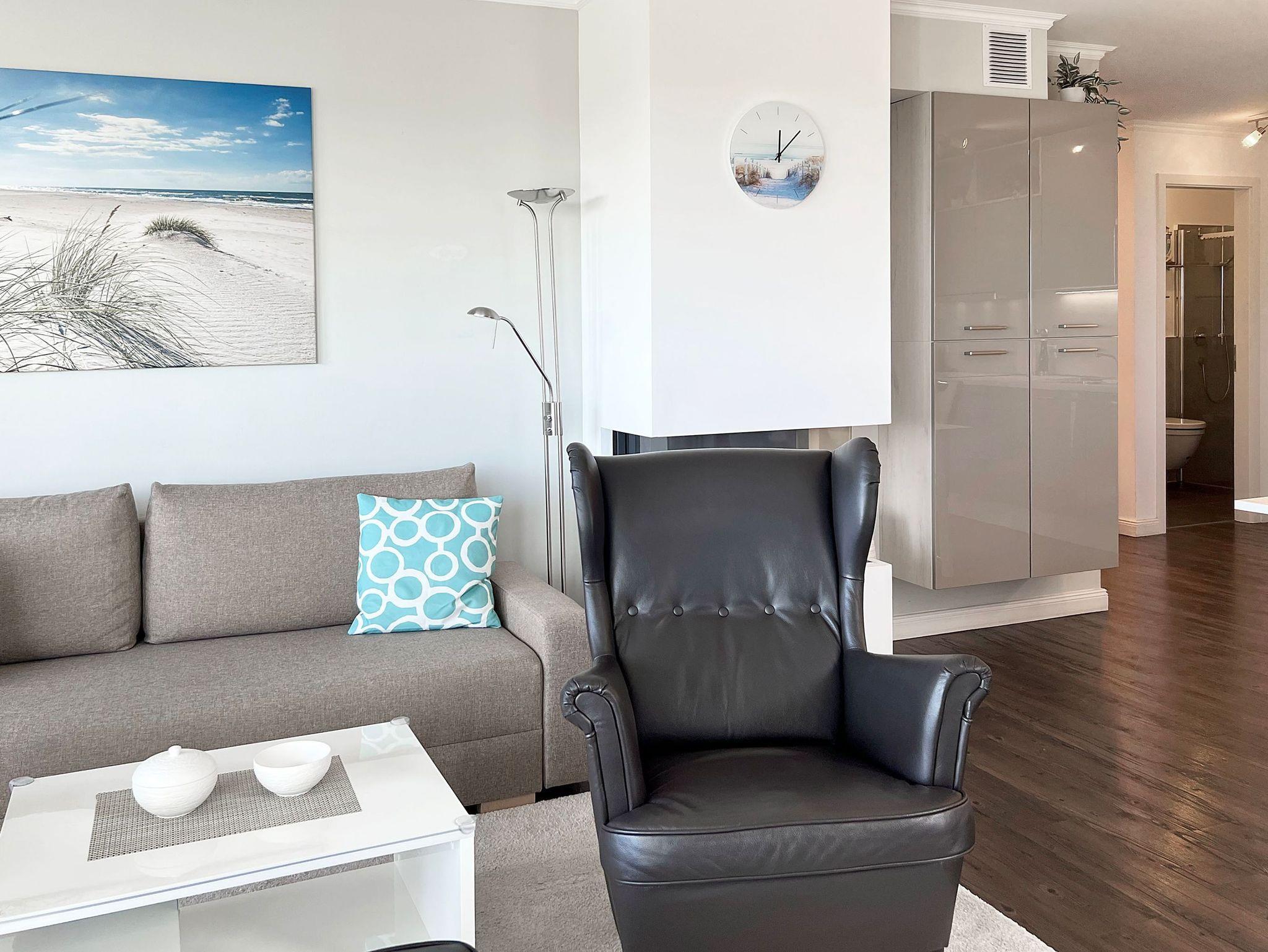 Strandnahe 2-Raumwohnung für max. 3 Erwachsene und 1 Kleinkind, Kamin, Balkon mit Strandkorb und traumhaften Meerblick im 1.OG.
