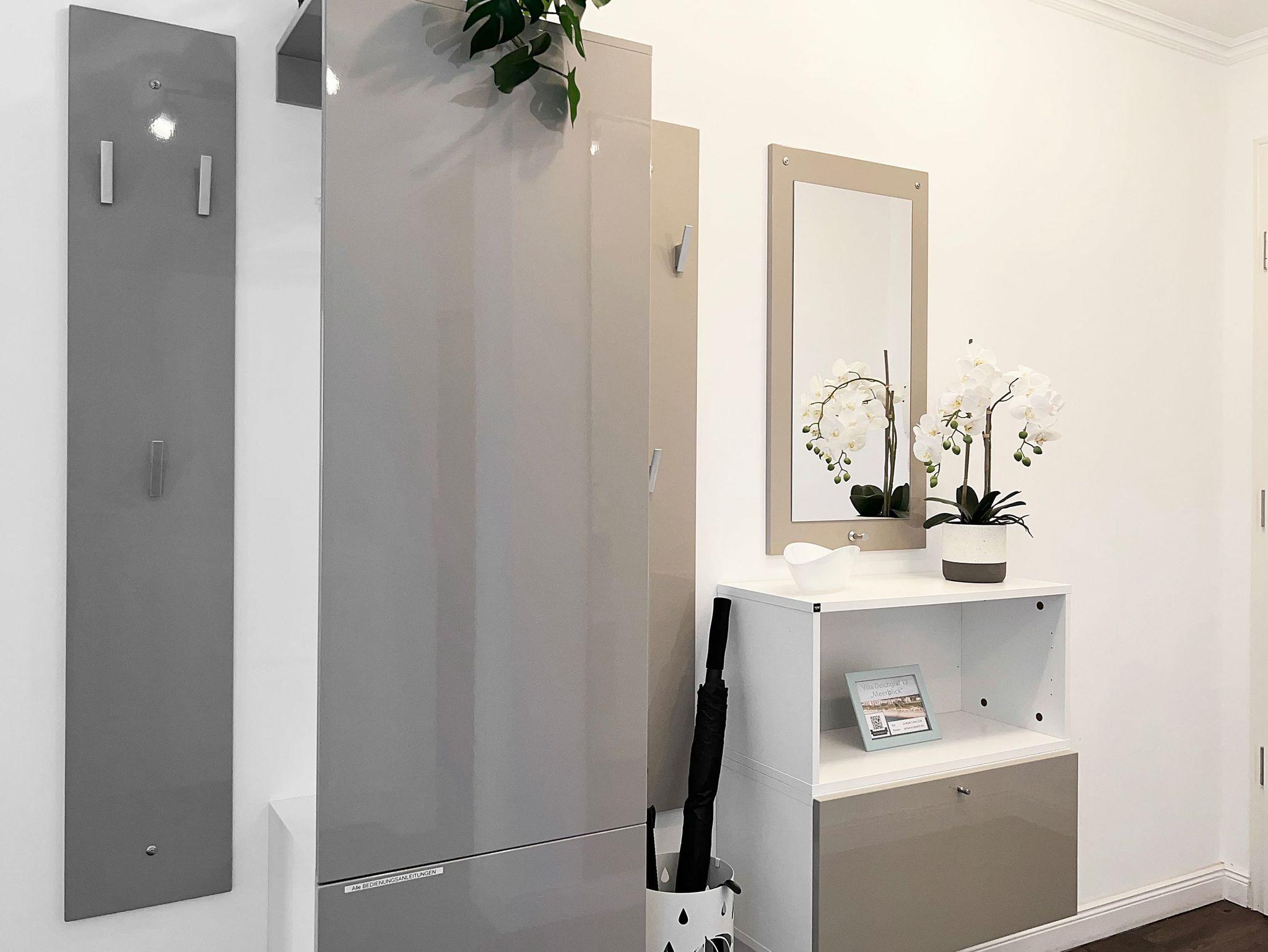 Die Ferienwohnung wurde im November 2022 neugestaltet. Im Wohnbereich empfangen Sie eine bequeme Sitzecke mit ausziehbarer Schlafcouch (1,40 x 2,00 m), ein TV-Board und als besonderes Highlight ein großer 65-Zoll-Fernseher mit Blu-ray-Player. Ein ganzer Schwung an DVDs und ein Radio-CD-Player mit der Möglichkeit über Bluetooth Musik vom Handy zu spielen. Das sorgt für gute Laune. Ein stilvoller gläserner Gas- Kamin und dessen Flammenspiel wirken entschleunigend und zaubern stimmungsvolle Stunden. Die großzügige Fensterfront über Eck flutet den Raum mit Licht. Zudem erhascht man bereits von der Sitzecke aus, einen Blick auf die Ostsee. In der offenen Einbauküche mit Backofen und 4-Platten-Ceranfeld, Geschirrspüler, Kühlschrank mit Gefrierfach, Mikrowelle, Kaffeemaschine, „Nespressomaschine“, Wasserkocher und Toaster lassen sich leckere Mahlzeiten zubereiten und am angrenzenden Esstisch mit vier ledernen Hochlehnern verzehren. Über den Wohnbereich gelangen Sie auf den großen Eckbalkon in Nord-West-Ausrichtung mit traumhaftem Meerblick. Hier können Sie die Nachmittags- und Abendsonne und unvergessliche Sonnenuntergänge genießen. Der Balkon mit Tisch, Stühlen und einem stilechten Strandkorb ist auch bei schlechterem Wetter durch den darüberliegenden Vorbau gut geschützt. Ein modernes Boxspringbett mit durchgehender Matratze von 1,80 x 2,00 m. erwartet Sie im Schlafzimmer. Ein zusätzlicher Topper, ein Kleiderschrank mit Ganzkörperspiegel und eine Wandkommode sowie ein moderner 65 Zoll TV darüber vervollständigen den Raum. Bitte beachten Sie, dass im Schlafzimmer kein Platz für ein zusätzliches Kinderreisebett vorhanden ist. An allen Fenstern sind blickdichte Vorhängen und Plissees vorhanden. Das Badezimmer besticht mit bodentiefer Dusche, großem Spiegel, LED-Kosmetikwandspiegel, elektrischem Handtuchtrockner, Personenwaage, Föhn und mehreren Ablagemöglichkeiten. Ein kleiner Garderobenbereich am Eingang der Wohnung bietet dem Anlass entsprechend Platz für Jackett und Windjacke. Zusätzliche Dinge wie Ihre Koffer können Sie bequem im separaten Abstellraum unterbringen. In allen Räumen wurde eine Fußbodenheizung für angenehme und gleichmäßige Wärme eingebaut. Die Unterkunft liegt nur wenige Meter zum Strand entfernt und wird lediglich durch die gepflegte Promenade von den Dünen getrennt. Kein Autoverkehr! Zur Wohnung gehören zudem ein kostenfreier Tiefgaragenstellplatz und eine Abstellmöglichkeit für Fahrräder. Bitte beachten Sie die Durchfahrtshöhe von max. 1,90 m der Tiefgarage. Mit einem Personenaufzug gelangen Sie von der Tiefgarage aus direkt zu Ihrer Wohnung. Im Erdgeschoss der Wohnung befindet sich ein gekennzeichneter Abstellbereich für Kinderwagen. Noch einige Hinweise: Es handelt sich um eine Nichtraucherwohnung. Haustiere sind nicht gestattet. Das WLAN steht kostenlos in allen Zimmern zur Verfügung. Das Datenvolumen ist unbegrenzt, so dass Sie ohne Limit nach Herzenslust streamen können. Das Netz schwankt aber leider noch, wenn sich viele Nutzer in Börgerende im Internet befinden. Für Netflix z.B. reicht es aber zumeist völlig aus. Wäschesets, Kinderreisebett und Kinderhochstuhl können kostenpflichtig zugebucht werden. Waschmaschine und Trockner stehen im separaten Hauswirtschaftsraum im Untergeschoss der Villa zu Ihrer Verfügung (gegen Gebühr / 1,00 € Münzen). Ab der dritten Person wird ein Aufschlag in Höhe von 15,00 €/ÜN berechnet. Sichern Sie sich einen der begehrten Strandkörbe nur ein paar Meter entfernt von den rauschenden Wellen der Ostsee (Anfang Mai - Ende August) und buchen Sie jetzt zu besonderen Konditionen (12,00 € pro Tag oder 75,00 € pro Woche.)