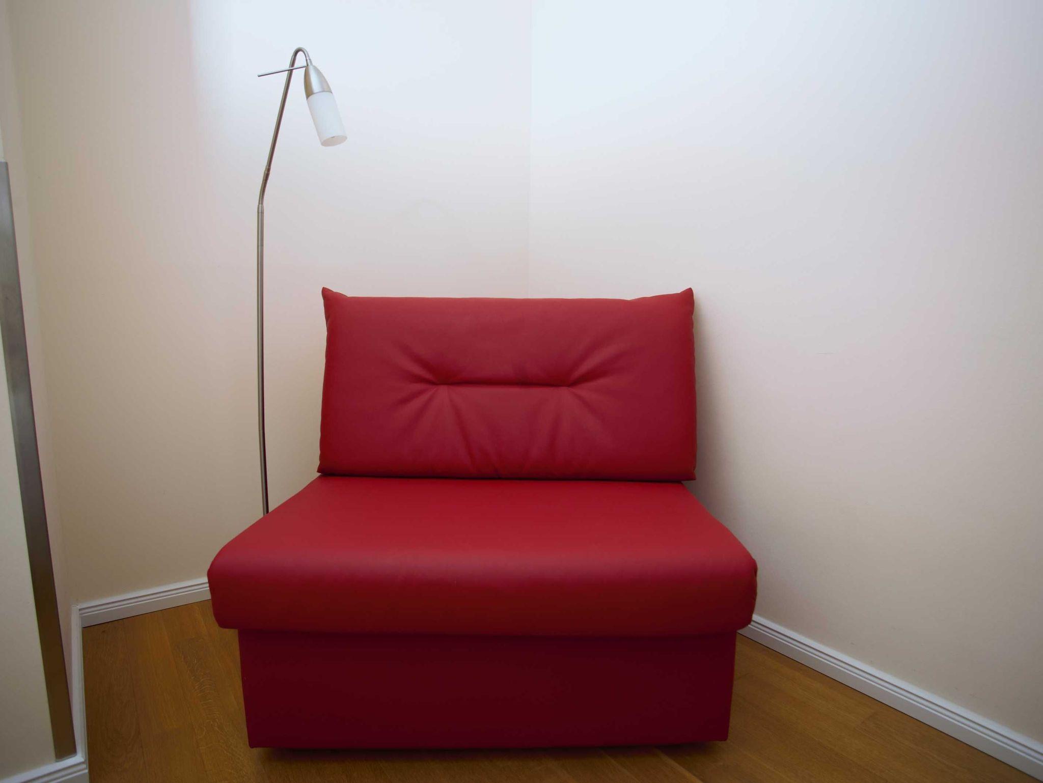Ein großes Schlafzimmer mit Doppelbett sowie ein kleines Schlafzimmer mit Einzelbett und ausklappbarem Schlafsessel sorgen für süße Träme. Ein geräumiger Kleiderschrank verschafft zusätzlichen Stauraum. Wäscheset, Kinderreisebett und Kinderhochstuhl können kostenpflichtig zugebucht werden.