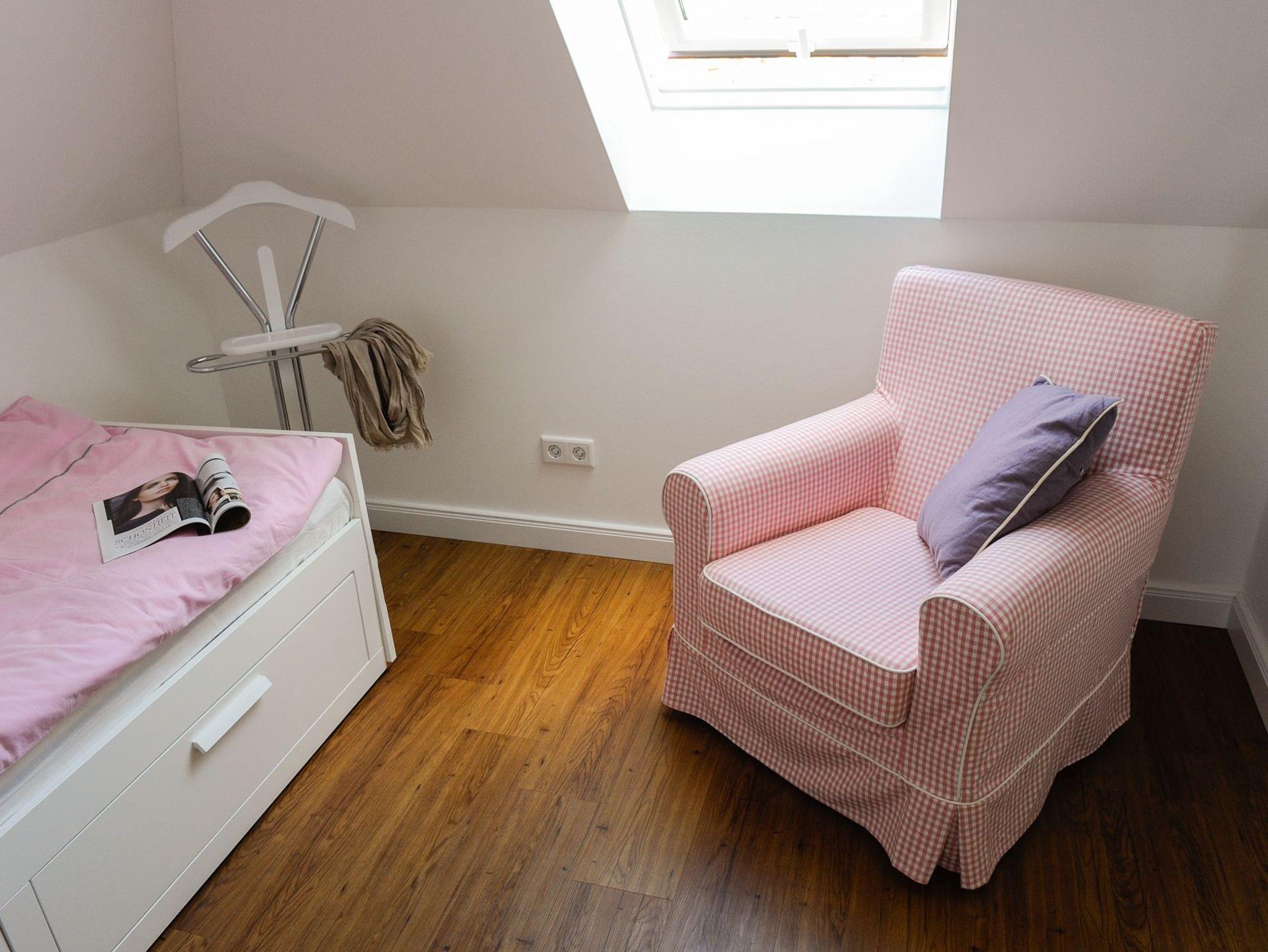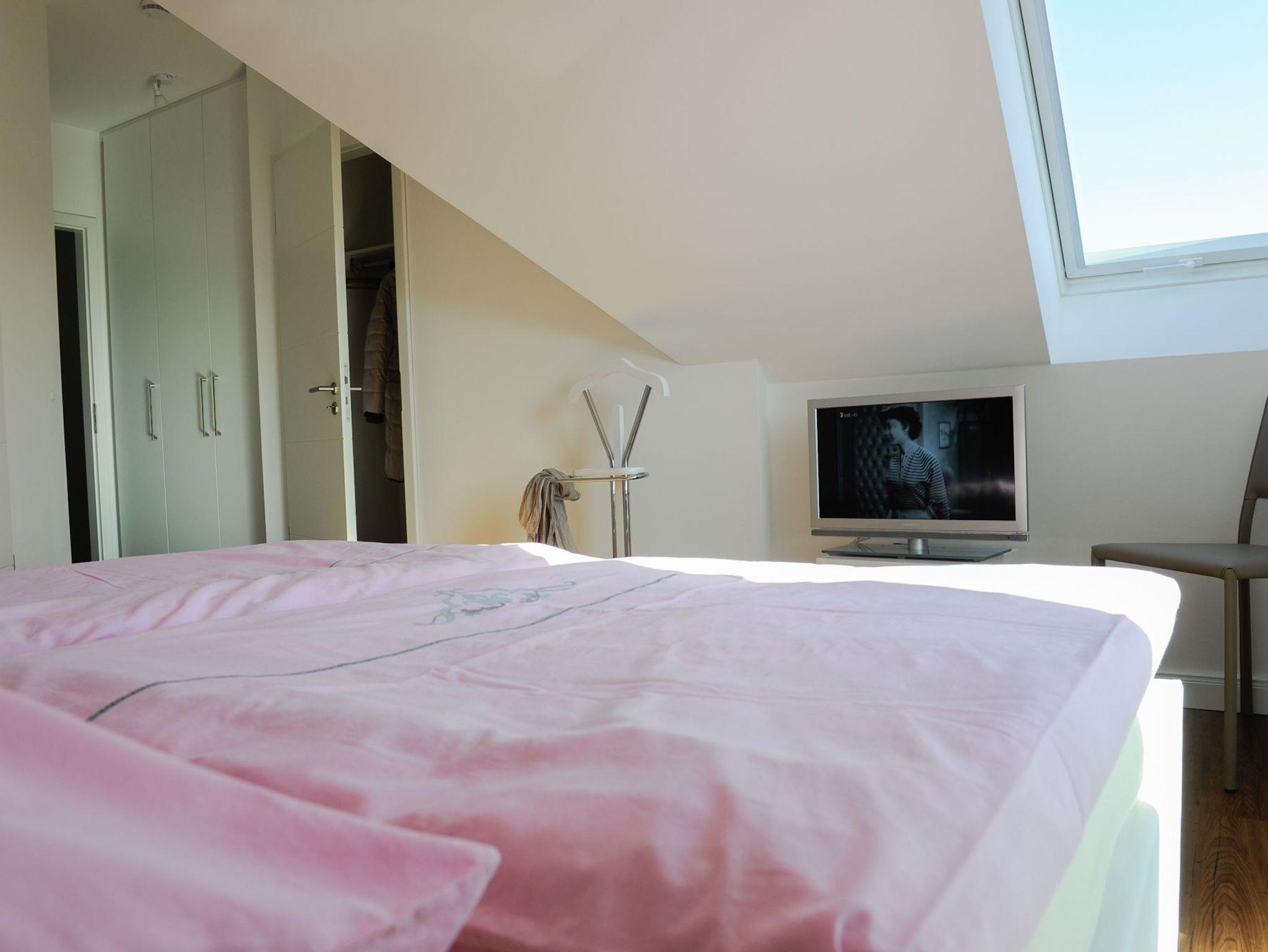 Sonnige, geräumige 3-Zimmerwohnung im Dachgeschoss (2. OG) mit zwei Balkonen und Meerblick (120 m zum Strand) und hochwertiger Unterhaltungselektronik.