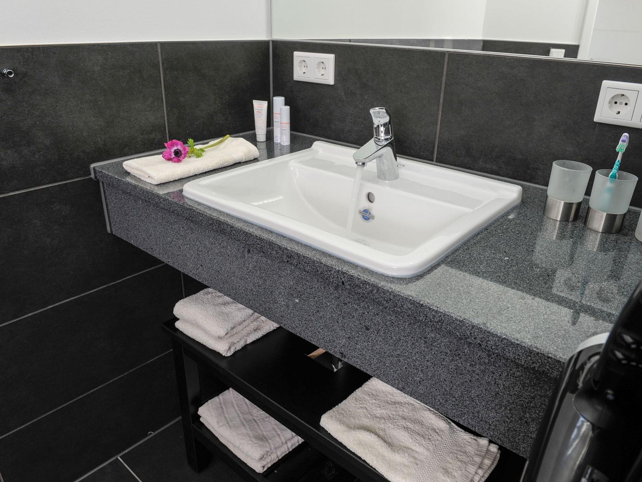 2 Bäder mit bodengleicher Dusche, beheizbarem Handtuchhalter und Föhn, Kinderhocker und Kindereinsatz für WC