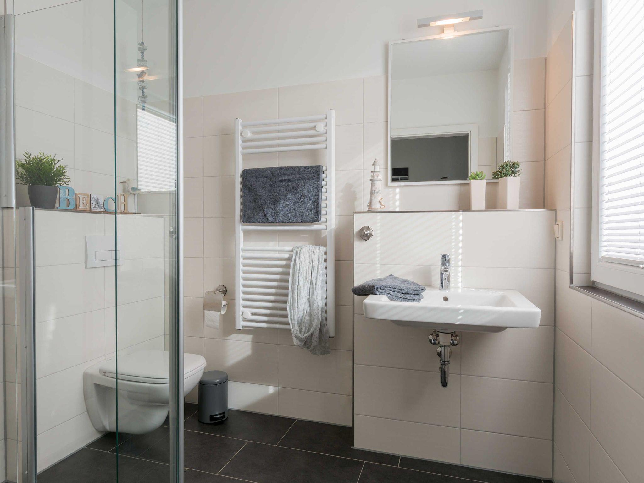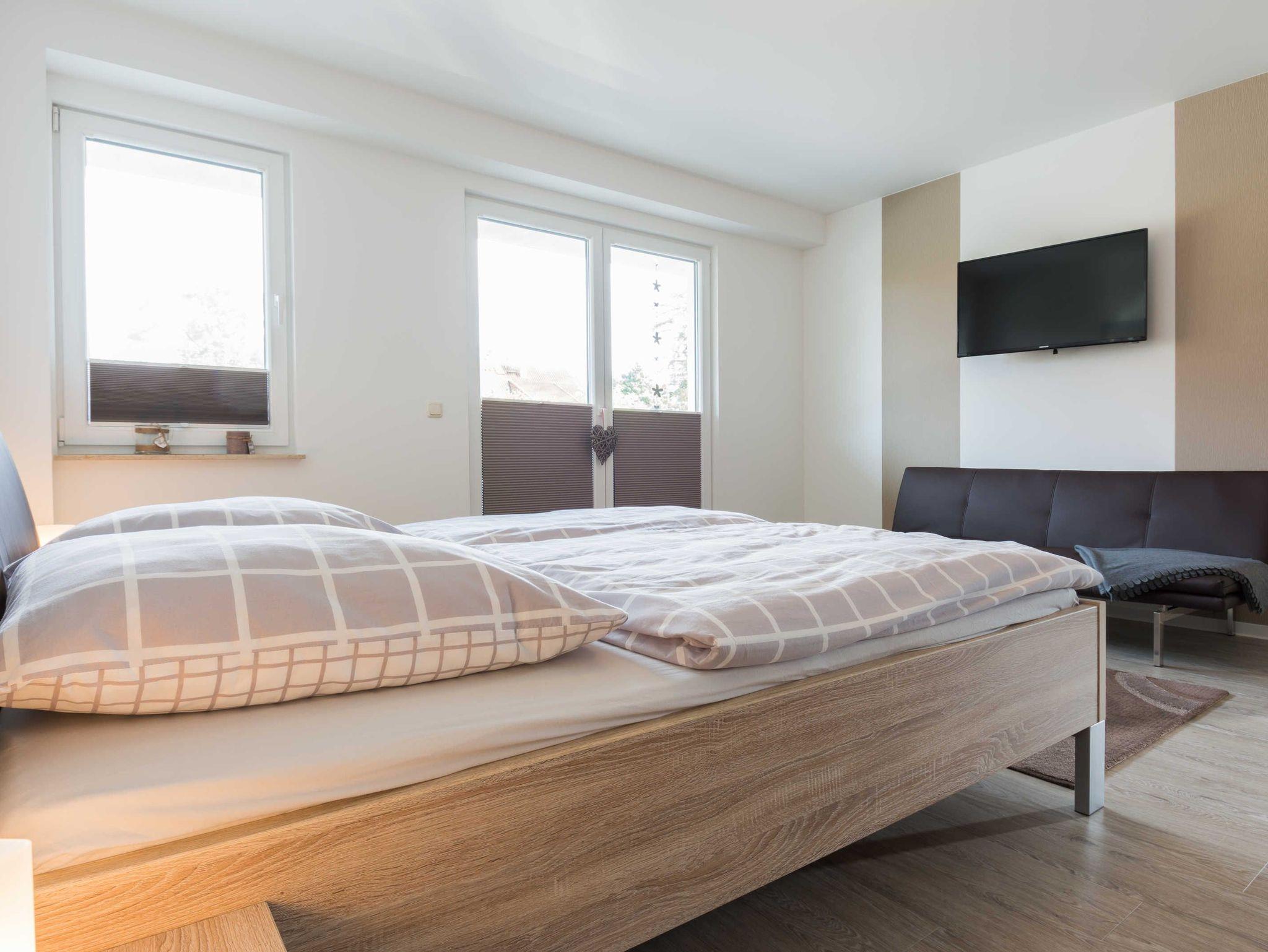 Es erwarten Sie eine sehr gut ausgestattete, offene Einbauküche mit Geschirrspüler, Backofen inklusive Cerankochfeld, Mikrowelle, Kühlschrank inklusive Gefrierfach, Kaffeemaschine, Bosch Tassimo Kapselmaschine, Wasserkocher, Toaster sowie ein Esstisch mit vier Stühlen. Im gemütlichen Wohnbereich befinden sich eine Schlafcouch (1,60 x 2,00 m Liegefläche), ein Radio und ein Flatscreen-TV inkl. DVD-Player. Außerdem stehen unseren Gästen eine Auswahl an Spielen, ein Wäscheständer sowie ein Staubsauger zur Verfügung. Das Schlafzimmer überzeugt mit einem Doppelbett (1,80 x 2,00 m bestehend aus zwei Einzelmatratzen 0,90 x 2,00 m ), einem geräumigen Kleiderschrank und einem weiteren Flatscreen-TV inkl. DVD-Player. Das Bad ist ausgestattet mit einer bodengleichen Dusche, einem Waschtisch, einem Handtuchtrockner und einem Föhn. Die beiden mit Gartenmöbeln ausgestatteten Terrassen laden von Sonnenaufgang bis Sonnenuntergang zum Verweilen ein. Die Unterkunft wird über eine Fußbodenheizung erwärmt.