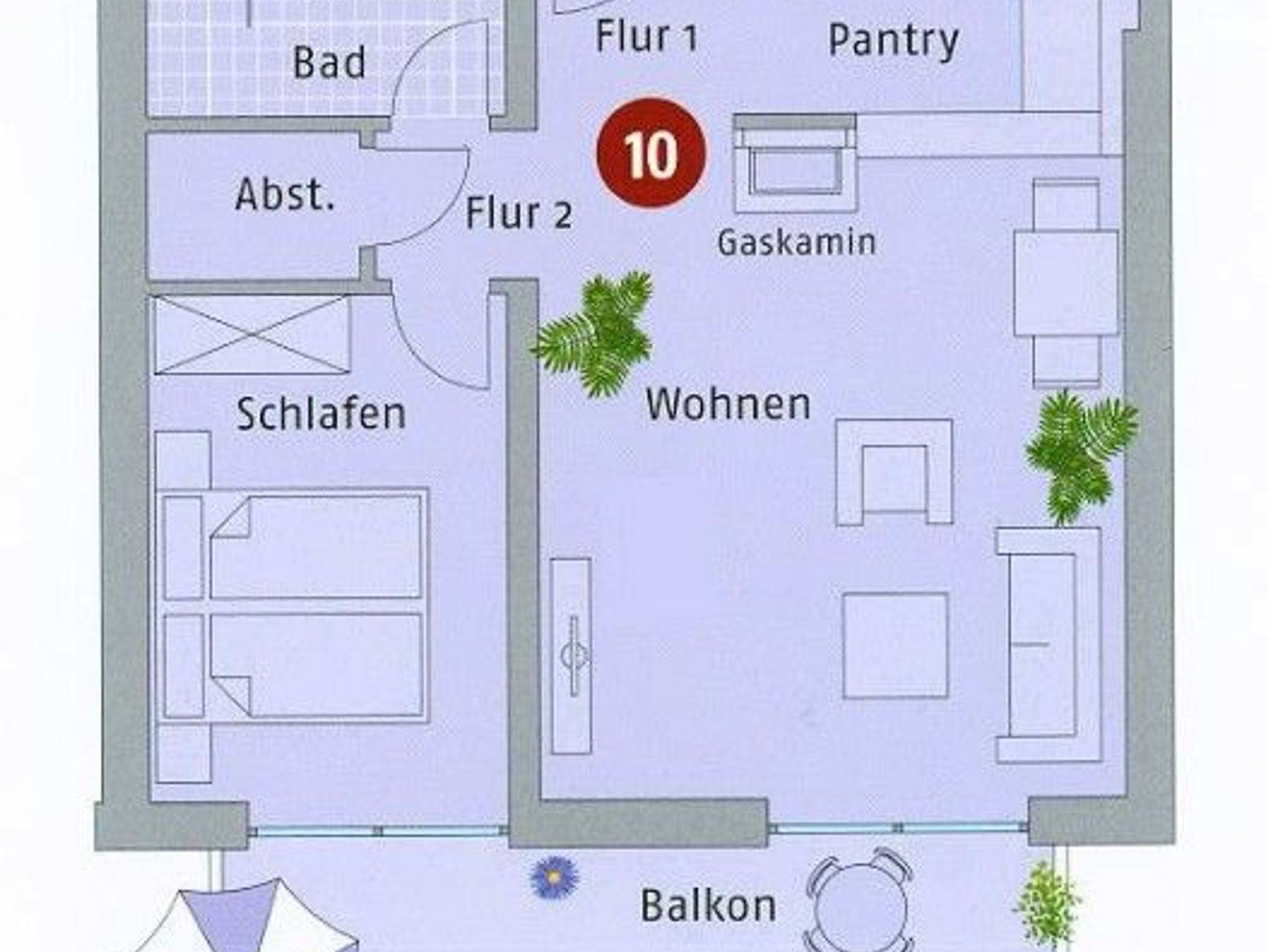 Strandnahe 2-Raumwohnung für max. 3 Erwachsene und 1 Kleinkind mit Balkon im 1.OG.
