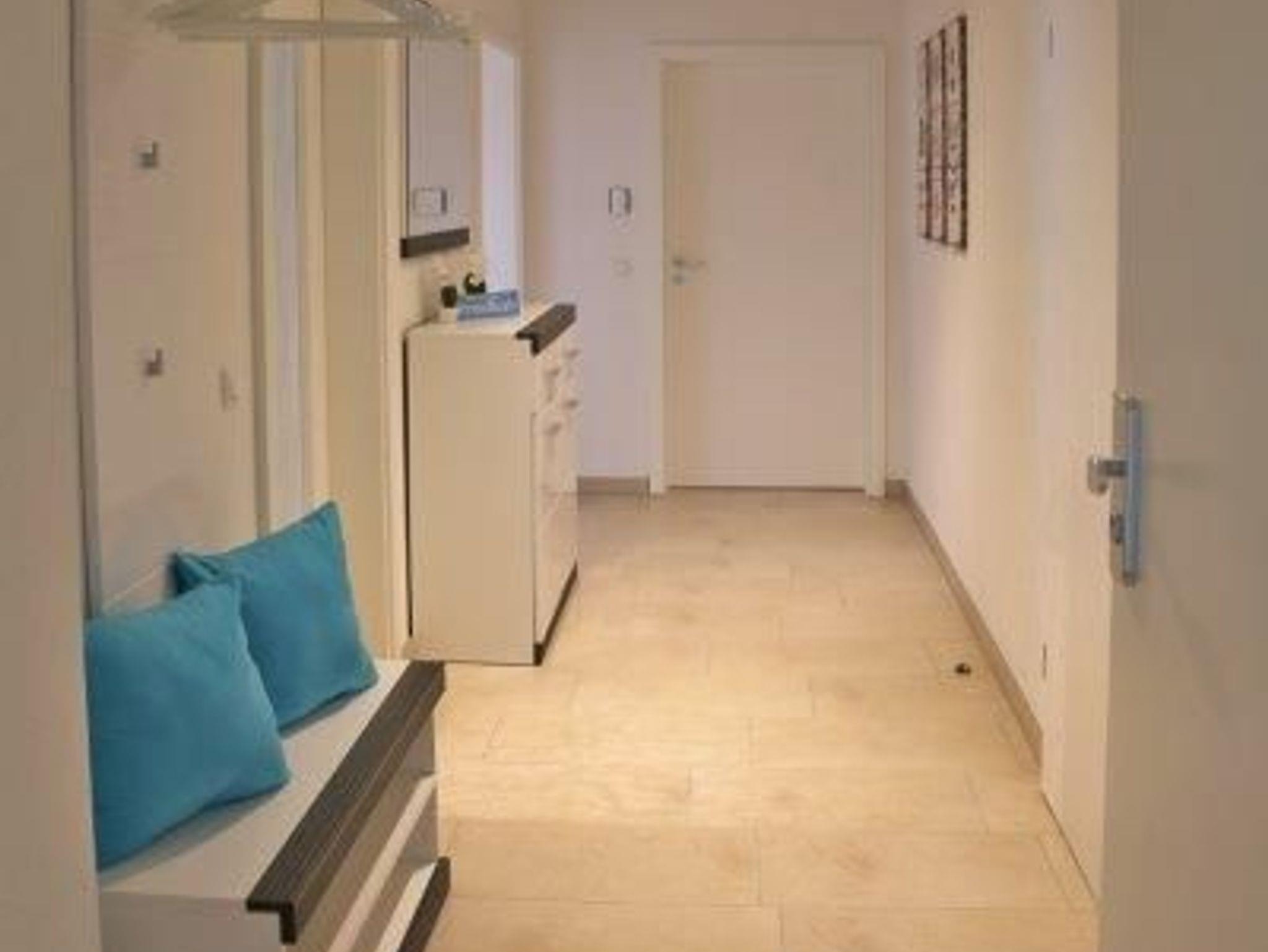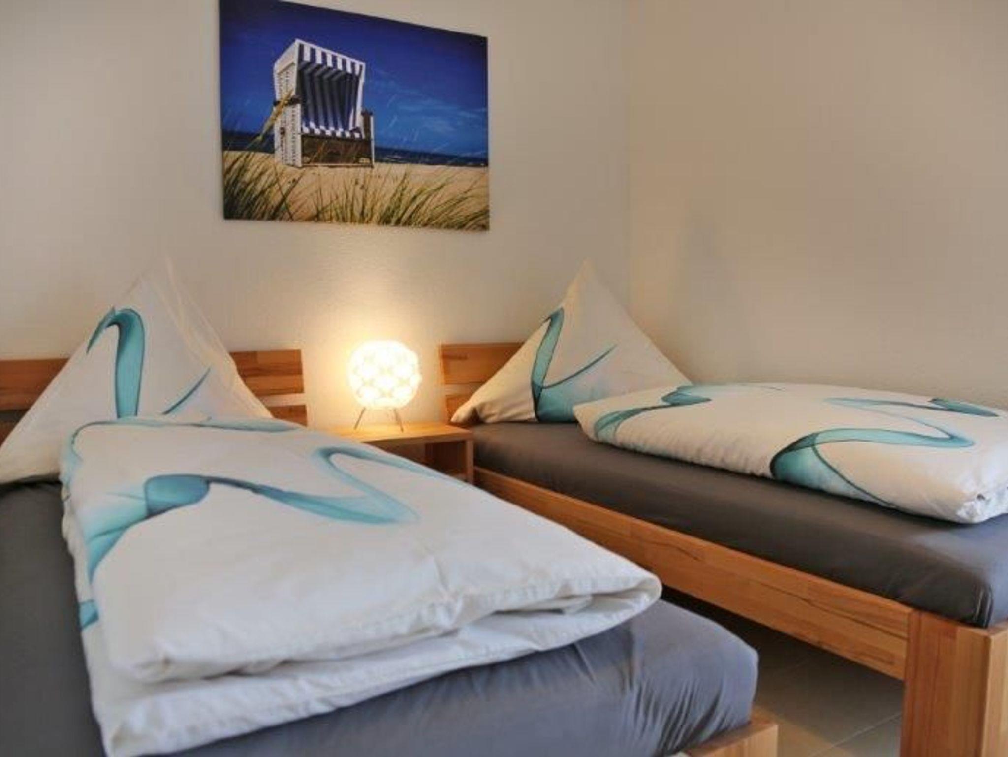Unsere Wohnung verfügt über ein Schlafzimmer mit Doppelbett (180 x 200 m), welches mit einem geräumigen Kleiderschrank ausgestattet ist. Für ungestörte Träume wurden Vorhänge zum Abdunkeln angebracht. Das zweite Schlafzimmer ist mit zwei Einzelbetten (jeweils 90 x 200 m) und einem extra Fernseher ausgestattet. Für unsere kleinen Gäste stehen ein Kinderhochstuhl sowie ein Kinderreisebett kostenfrei zur Verfügung. Der separate Abstellraum verfügt über weiteren Stauraum für Ihre Mitbringsel, zudem steht eine Waschmaschine bereit, welche kostenlos genutzt werden kann. Genießen Sie die Abendsonne auf unserem großzügigen Balkon in entspannter Atmosphäre und lassen Sie dabei das Rauschen der Ostseewellen auf sich wirken.