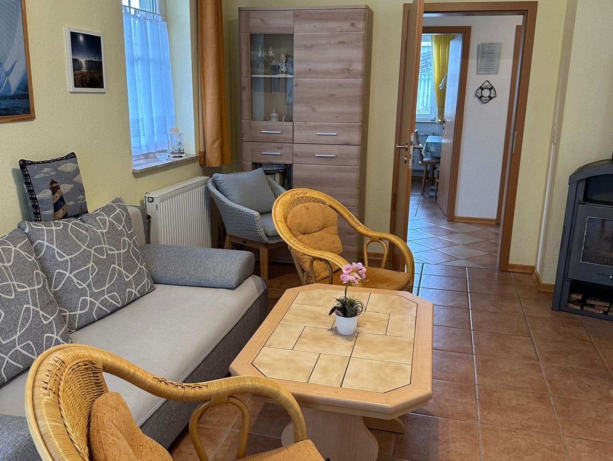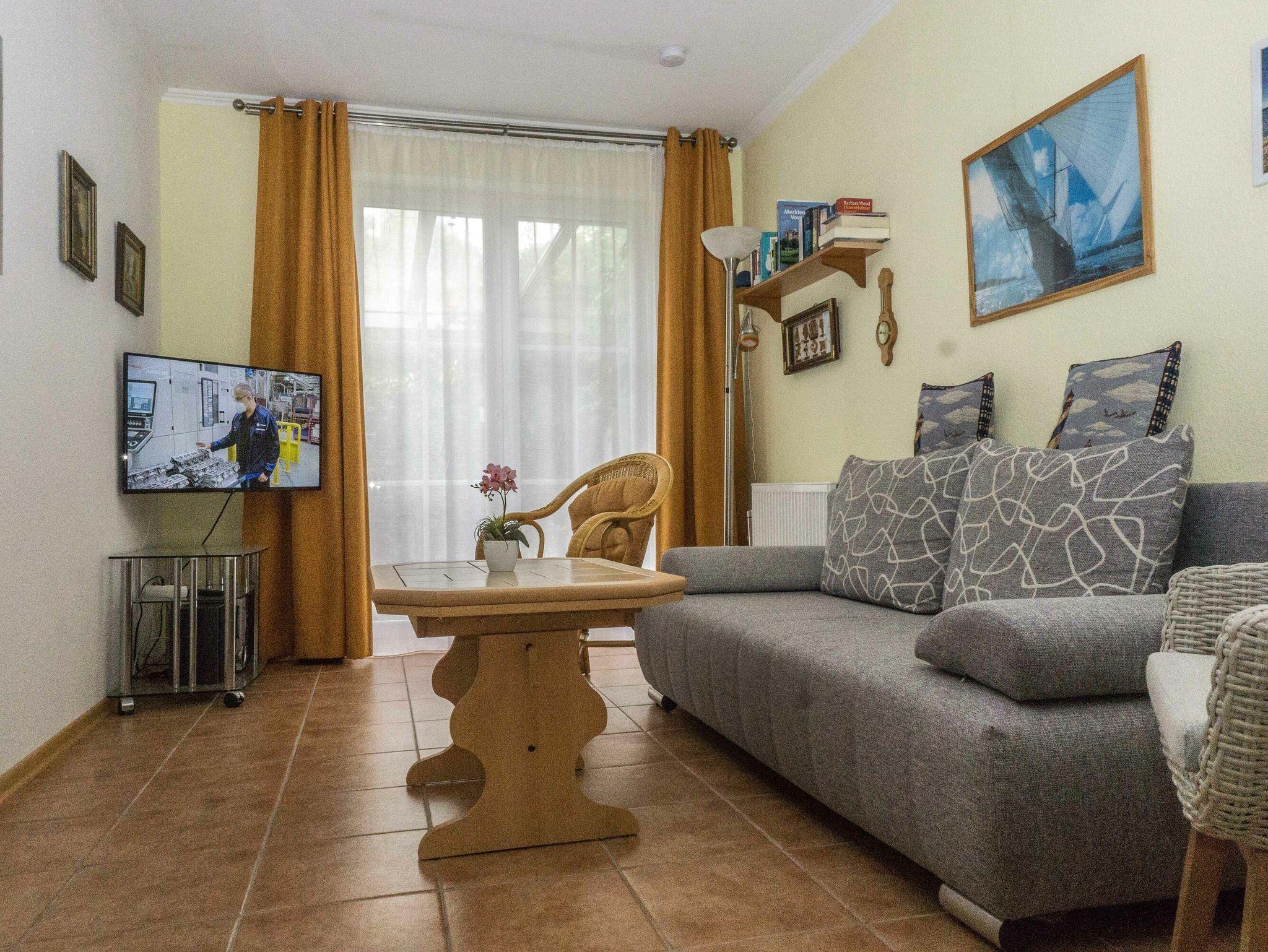 Die liebevoll eingerichtete Wohnung bietet Platz für bis zu drei Personen. Im gemütlichen Wohnzimmer erwarten Sie eine Schlafcouch (ideal als Aufbettung), ein Couchtisch, ein LCD-Fernseher, eine Bluetooth-Lautschprecherbox (Alexa), zwei Sessel sowie eine Sitzecke mit Polsterstühlen. Der angrenzende Flur ist mit einer Garderobe ausgestattet. Brennholz für den Kamin muss selbst organisiert werden.