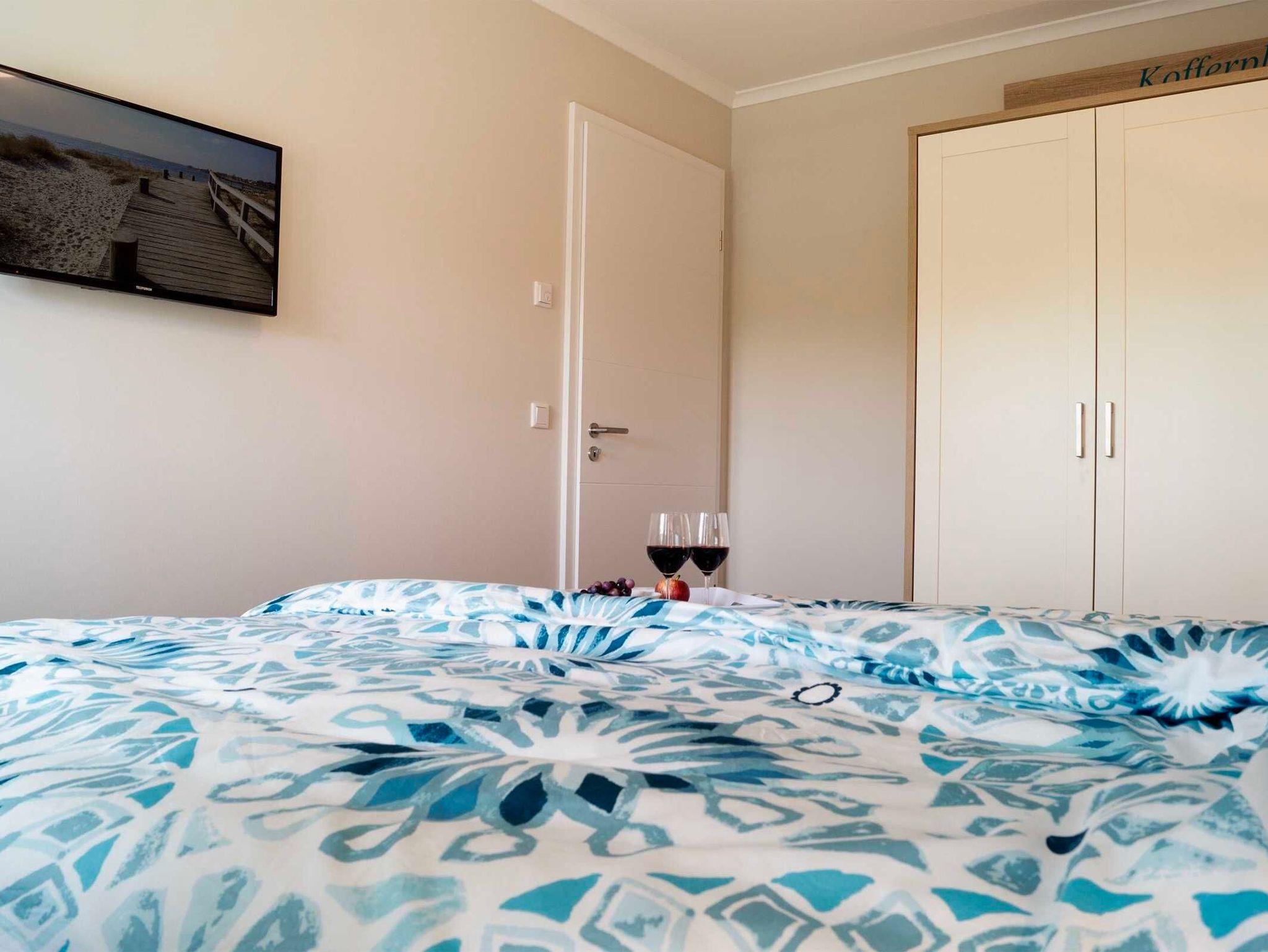 • Schlafzimmer 1: Boxspringbett (2×?90?×?200?cm), Flat-TV, Kleiderschrank, Verdunklung [&] Fliegengitter