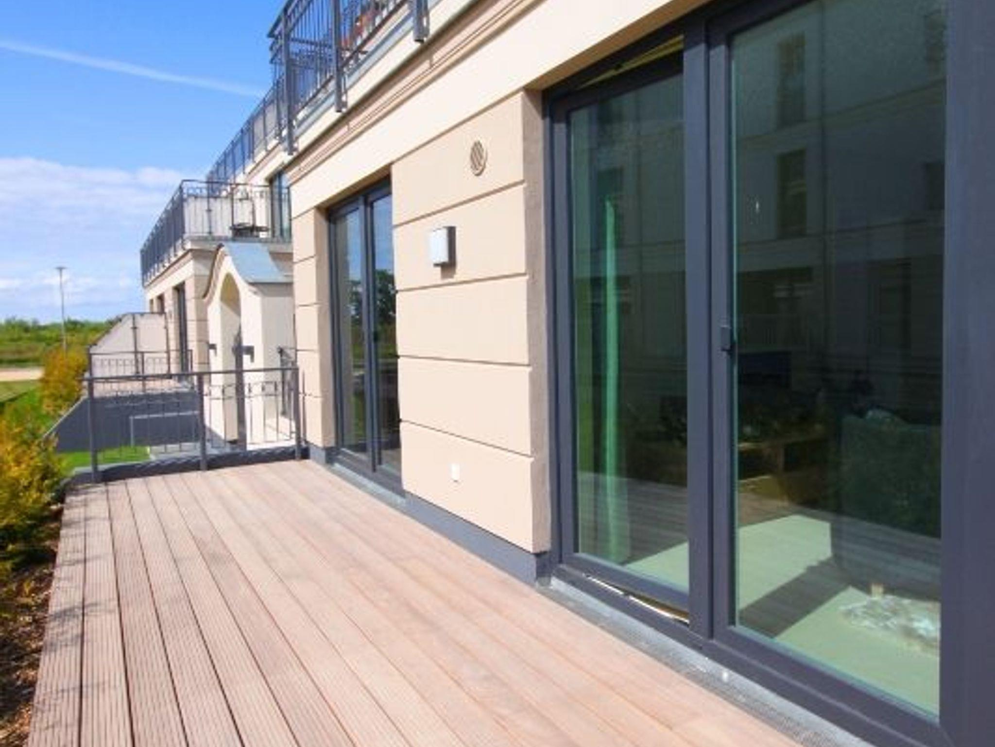 In der Ferienwohnung empfängt Sie das kombinierte Wohn-/ Esszimmer. Der hölzerne Esstisch mit vier Stühlen lädt zu ausgedehnten Mahlzeiten und geselligen Spieleabenden in fröhlicher Runde ein. Ein Flatscreen-TV und Radio sorgen auf der gemütlichen Couch und dem passenden Sessel für Unterhaltung. Die offene Einbauküche ist außer der Standardbestückung mit Geschirrspüler, Kühlschrank, inklusive Gefrierfach, Backofen und Mikrowelle eingerichtet. Im Schlafzimmer erwarten Sie ein Doppelbett (180 x 200 cm / getrennte Matratzen) und ein großer Kleiderschrank. Weiteren Stauraum bietet der separate Abstellraum. Das Duschbad besticht mit bodengleicher Dusche, Handtuchtrockner und Kindertoilettensitz. Eine Fußbodenheizung sorgt für wohlige Wärme in allen Räumen. Das ?Highlight? der Ferienwohnung sind die zwei Terrassen in Nordausrichtung zum Innenhof der Villa und Westausrichtung mit Blick zum Deich. Der Strand liegt nur 50 m entfernt. Zu Ihrer Ferienwohnung gehört außerdem ein kostenfreier Tiefgaragenstellplatz. Bitte beachten Sie die Durchfahrtshöhe von max. 1,90 m. Der im Gebäude installierte Aufzug erleichtert den Transport der mitgebrachten Koffer. Und hier noch einige Hinweise: Ein Kinderhochstuhl steht kostenfrei in der Wohnung zur Verfügung. Ein Kinderreisebett sowie ein Wäscheset pro Person können kostenpflichtig zugebucht werden. Über den Innenhof der Villa erreichen Sie den abschließbaren Fahrradraum sowie den angrenzenden Waschraum. Eine Waschmaschine und ein Trockner stehen zu Ihrer Verfügung (gegen Gebühr / 1,00 Euro Münzen). Es handelt sich um eine Nichtraucherwohnung. Bis zu zwei Haustiere sind willkommen. Diese werden zusätzlich berechnet (10,00 Euro/ÜN pro Tier und einmalig 20,00 Euro Haustierendreinigung). Hundestrände finden Sie in Richtung Heiligendamm in ca. 500m Entfernung. Ab Aufgang 9. In Richtung Nienhagen ab Aufgang 1. Das kostenfreie WLAN in der Unterkunft ist ausschließlich für die Verwendung von Social Media und den Austausch von Bildern mit Familie und Freunden gedacht. Die Nutzung zum Streamen von Filmen ist nicht vorgesehen. Sichern Sie sich einen der begehrten Strandkörbe nur ein paar Meter entfernt von den rauschenden Wellen der Ostsee (Anfang Mai - Ende August) und buchen Sie jetzt zu besonderen Konditionen (12,00 Euro pro Tag oder 75,00 Euro pro Woche).[nbsp]
