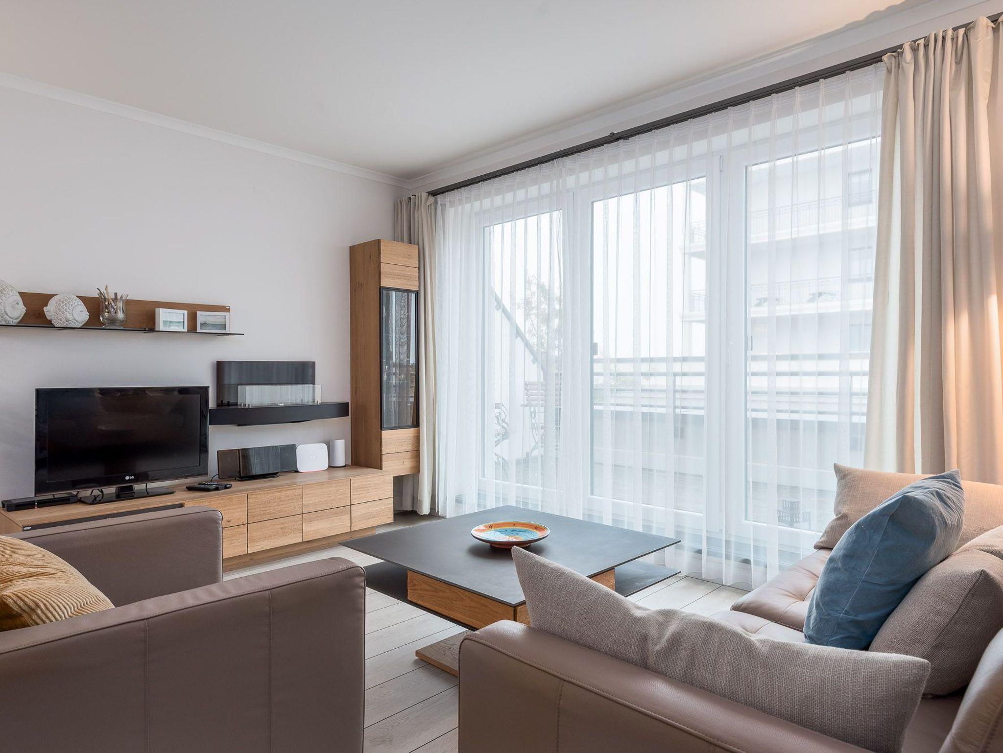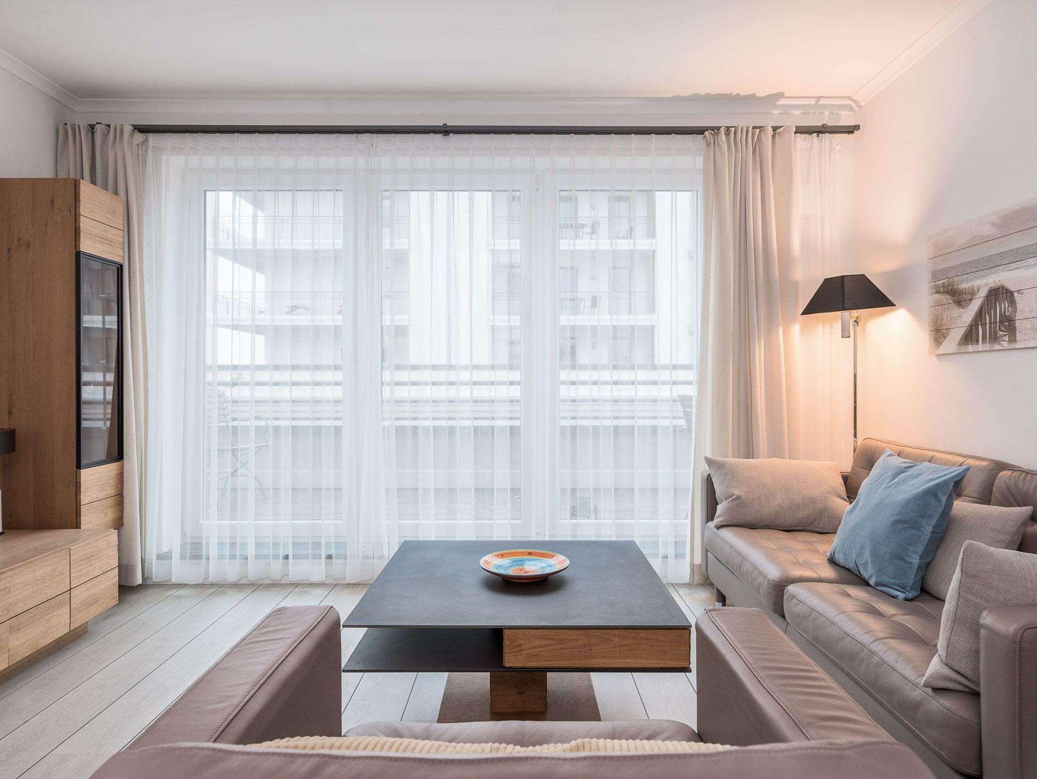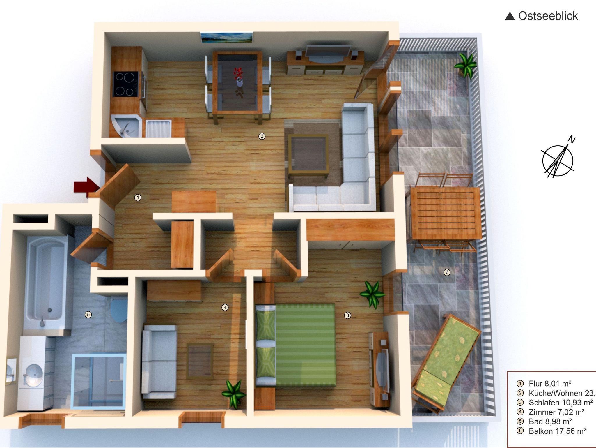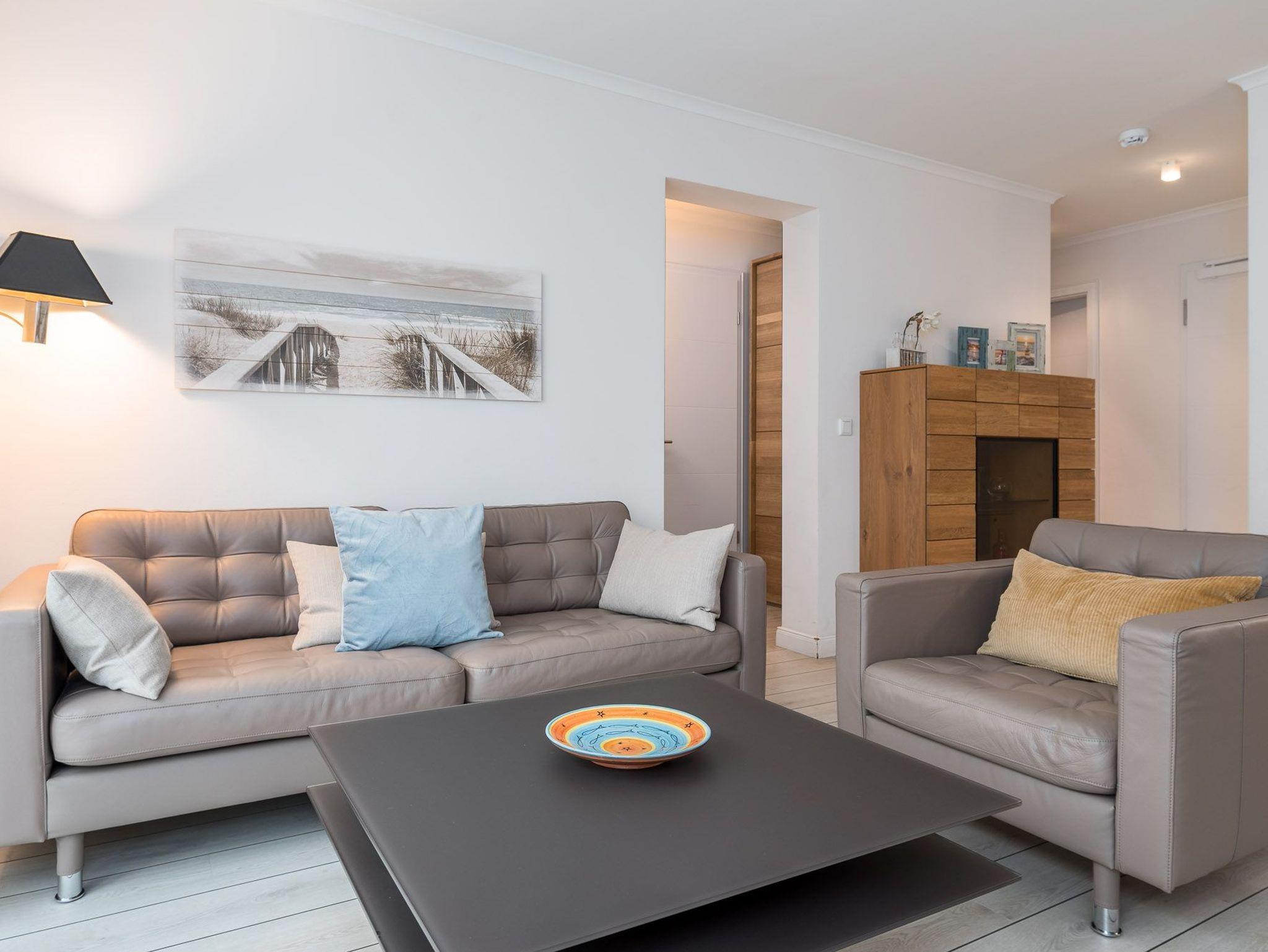 Strandnahe 3-Raumwohnung für max. 2 Erwachsene und 2 Kinder, 2 Schlafräume, Wannenbad, Balkon mit Strandkorb und seitlichem Meerblick im 1.OG.