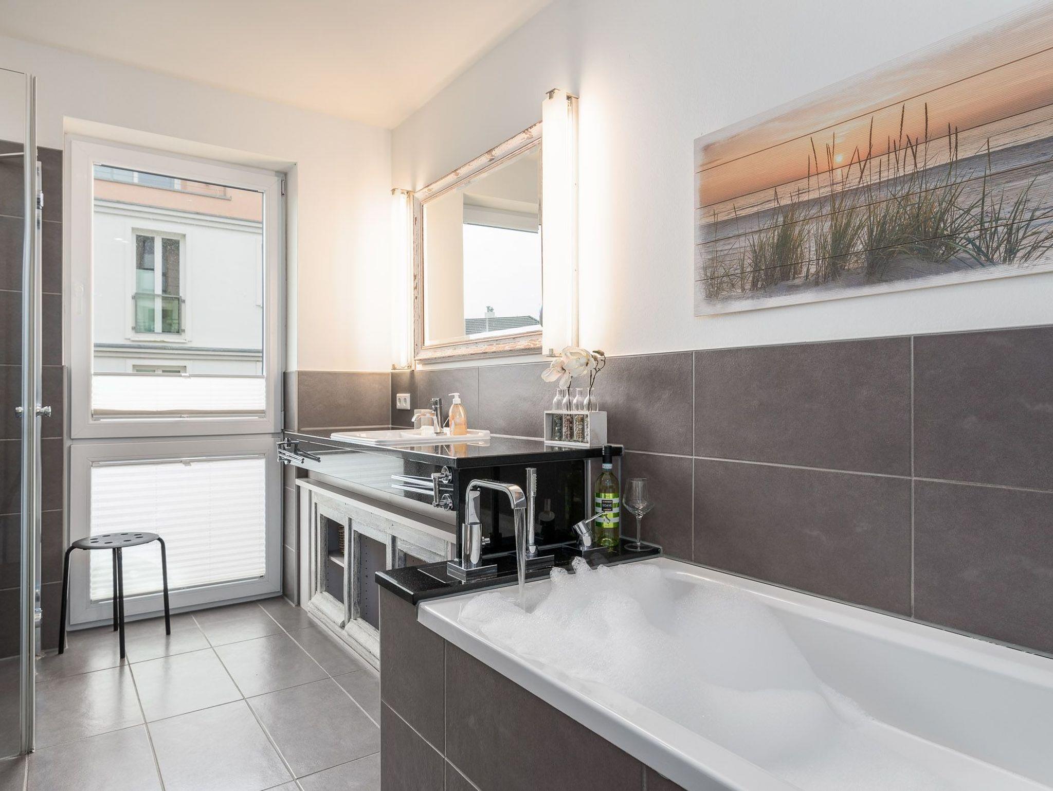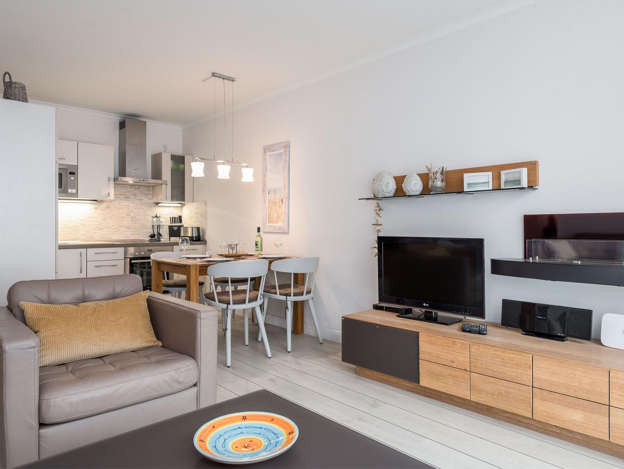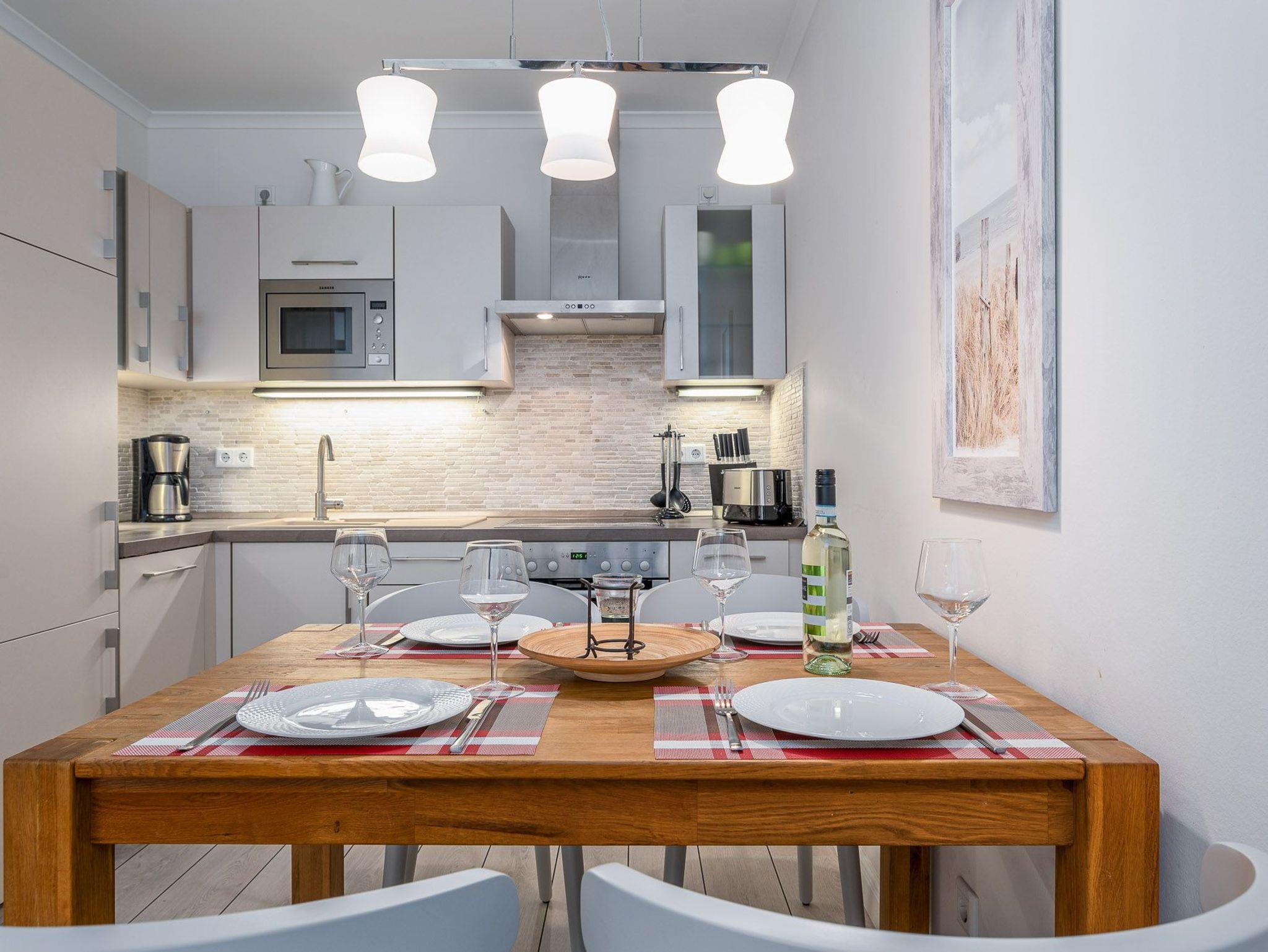 Genießen Sie im Sommer das erfrischende Nass der Ostsee und im Winter entspannen Sie nach einem ausgedehnten Spaziergang am Meer bei einem warmen Bad und lassen es sich anschließend bei einem Glas Wein gut gehen. Die perfekte Wohnung zu jeder Jahreszeit! Der lichtdurchflutete Wohnraum empfängt Sie mit einer bequemen Ledercouch und dem passenden Sessel, Couchtisch und Sideboard. Bunte Unterhaltung bieten Ihnen ein Flat-TV (32 Zoll), eine Musikanlage für iPod, iPhone, CD und ein Radio mit RDS. Ein Esstisch mit vier dazugehörigen Stühlen bietet Platz für gemeinsame Mahlzeiten. Die offene Einbauküche ist voll ausgestattet mit Geschirrspüler, Mikrowelle, Cerankochfeld, Backofen, Dunstabzugshaube, Kühl-Gefrierkombischrank, Kaffeemaschine, Wasserkocher und Toaster. Im ersten Schlafzimmer erwarten Sie ein gemütliches Doppelbett (180 x 200 cm / getrennte Matratzen), ein Kleiderschrank, ein Sideboard, ein Flat-TV und ein Radiowecker. Im zweiten Schlafzimmer befinden sich ein ausklappbares Schlafsofa (140 x 200 cm), ein Radiowecker und ein schmaler Kleiderschrank. Das elegante großes Bad besticht mit einem bodentiefen Fenster, einer ebenerdigen Dusche, einer herrlichen Badewanne sowie mehreren Ablagemöglichkeiten. Über den Wohnbereich gelangen Sie auf die traumhafte Dachterrasse (Balkon) in Nord-Ost-Ausrichtung mit seitlichem Meerblick. Diese ist komfortabel ausgestattet. Sitzmöbeln, ein Strandkorb als Ganzlieger sowie eine Markise. Die Ferienwohnung verfügt über einen Abstellraum, welcher von zwei Seiten nutzbar ist. Eine Seite bietet weiteren Stauraum für Ihr Gepäck und eine Seite fungiert als Hauswirtschaftsschrank (Staubsauger, Wischer, Besen, Eimer, Handfeger, Wäscheständer, Bügelbrett, Bügeleisen und Fußtritt vorhanden). Diverse Möbel in Wildeiche und der helle Eichenlaminatboden schaffen eine behagliche Atmosphäre in allen Räumen. Eine Fußbodenheizung sorgt überall für wohlige Wärme. Hier noch einige Hinweise: Zu Ihrer Ferienwohnung gehört ein kostenfreier Tiefgaragenstellplatz. Bitte beachten Sie die Durchfahrtshöhe von max. 1,90 m. Der im Gebäude installierte Aufzug erleichtert den Transport der mitgebrachten Koffer. Das kostenfreie WLAN in der Unterkunft ist ausschließlich für die Verwendung von Social Media und den Austausch von Bildern mit Familie und Freunden gedacht. Die Nutzung zum Streamen von Filmen ist nicht vorgesehen. Wäscheset, Kinderreisebett und Kinderhochstuhl können kostenpflichtig zugebucht werden. Über den Innenhof der Villa erreichen Sie den abschließbaren Fahrradraum sowie den angrenzenden Waschraum. Eine Waschmaschine und ein Trockner stehen zu Ihrer Verfügung (gegen Gebühr / 1,00 € Münzen). Es handelt sich um eine Nichtraucherwohnung. Die Mitnahme eines Hundes ist erlaubt und wird gesondert berechnet (10,00 €/ÜN und einmalig 20,00 € Haustierendreinigung). Hundestrände finden Sie in Richtung Heiligendamm in ca. 500m Entfernung. Ab Aufgang 9. In Richtung Nienhagen ab Aufgang 1. Für die dritte und vierte Person (ab 3 Jahre) wird ein Aufpreis in Höhe von 10,00 €/ÜN pro Person berechnet. Sichern Sie sich einen der begehrten Strandkörbe nur ein paar Meter entfernt von den rauschenden Wellen der Ostsee (Anfang Mai - Ende August) und buchen Sie jetzt zu besonderen Konditionen (12,00 € pro Tag oder 75,00 € pro Woche).