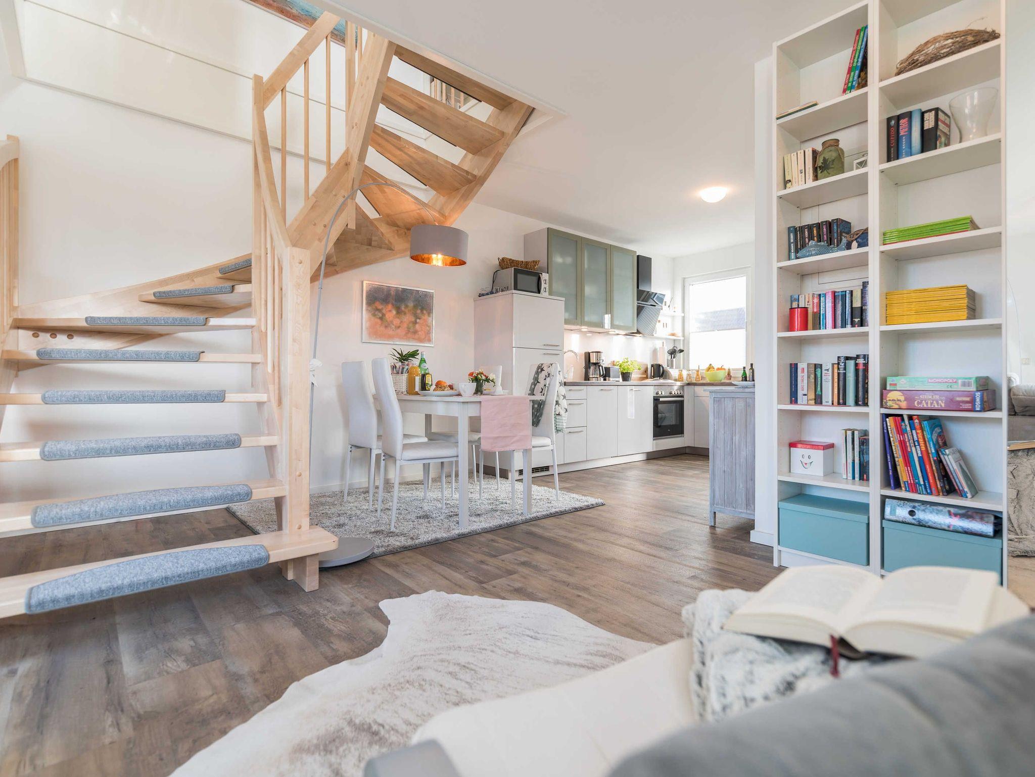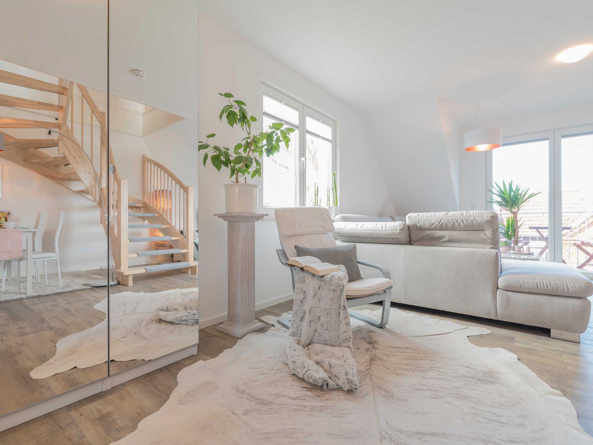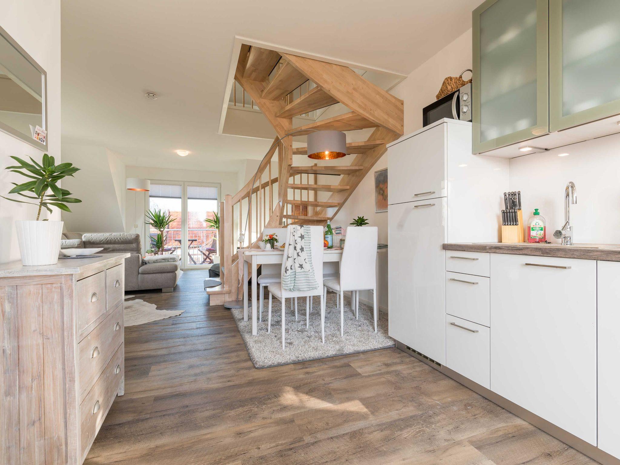 Die liebevoll eingerichtete 2-Zimmer-Maisonette-Zimmerwohnung (1. Obergeschoss und Dachgeschoss) bietet genug Platz für 4 Personen. Bitte beachten Sie, dass die Wohnung nur über eine Gittertreppe erreichbar ist.