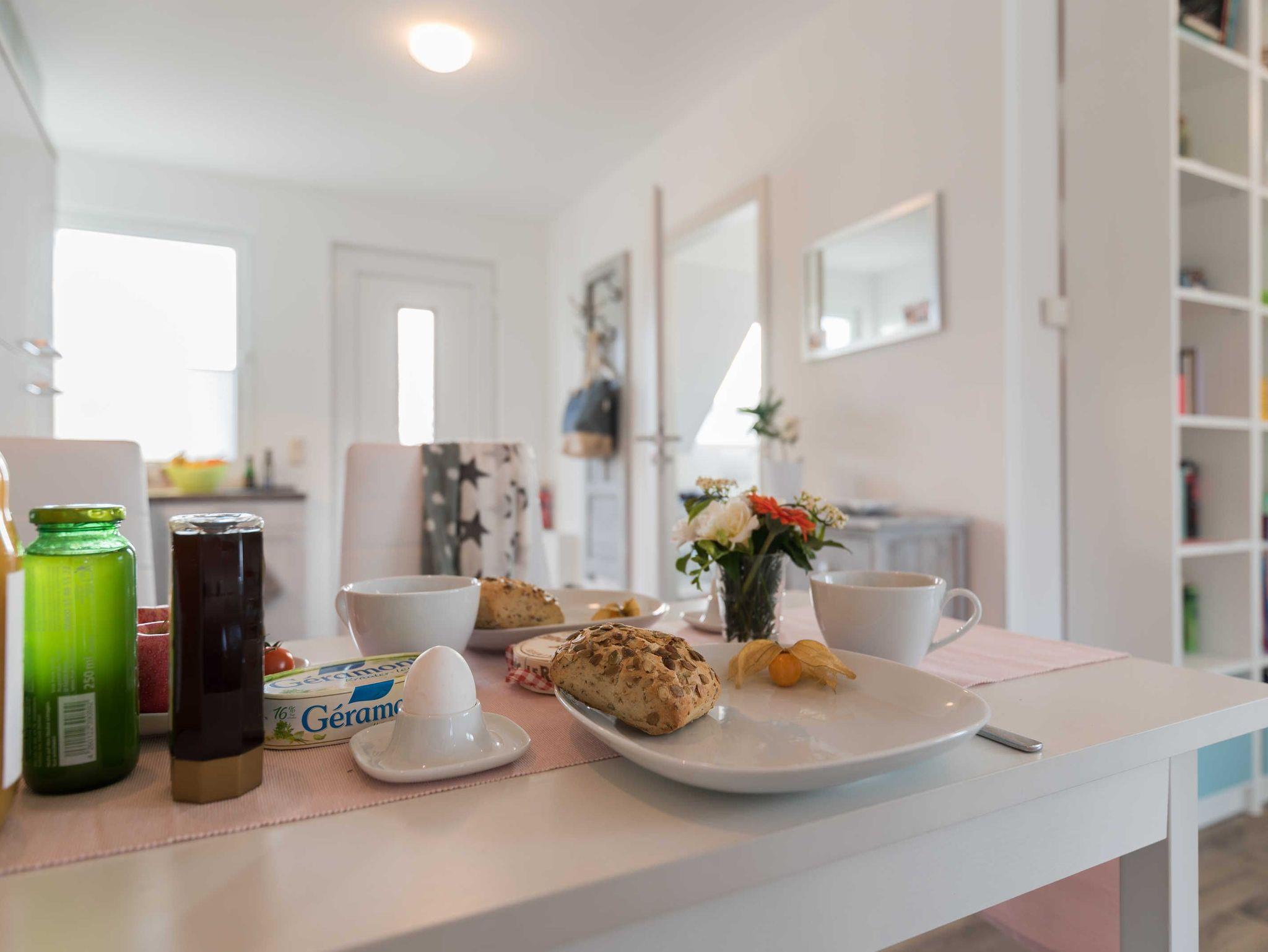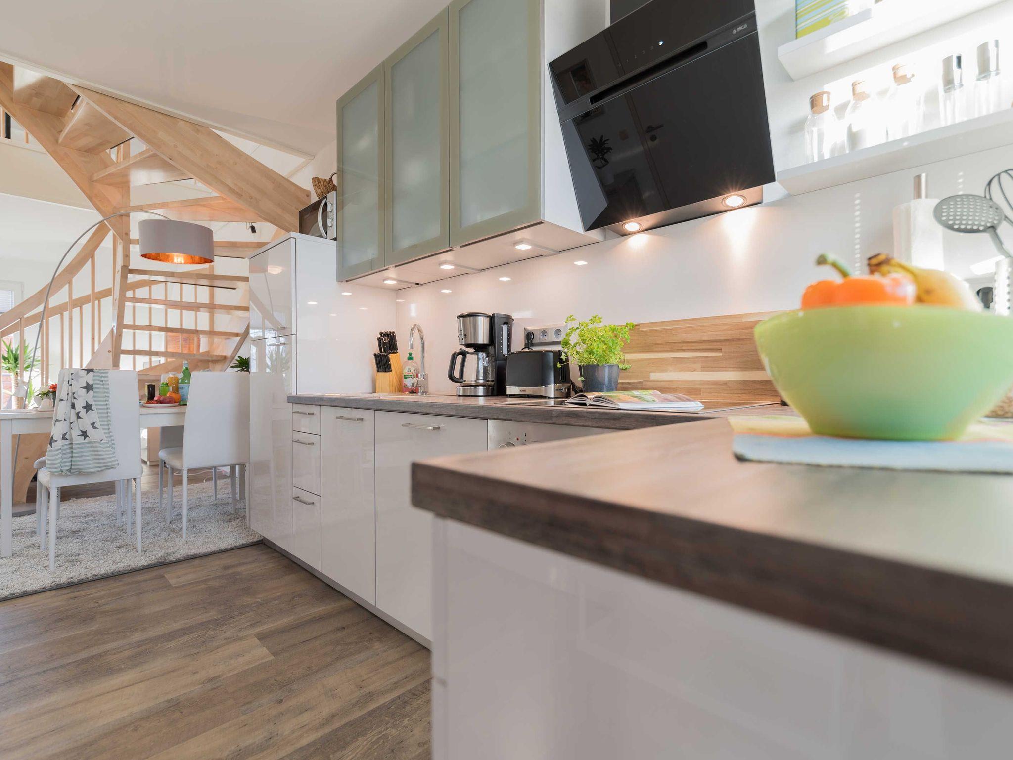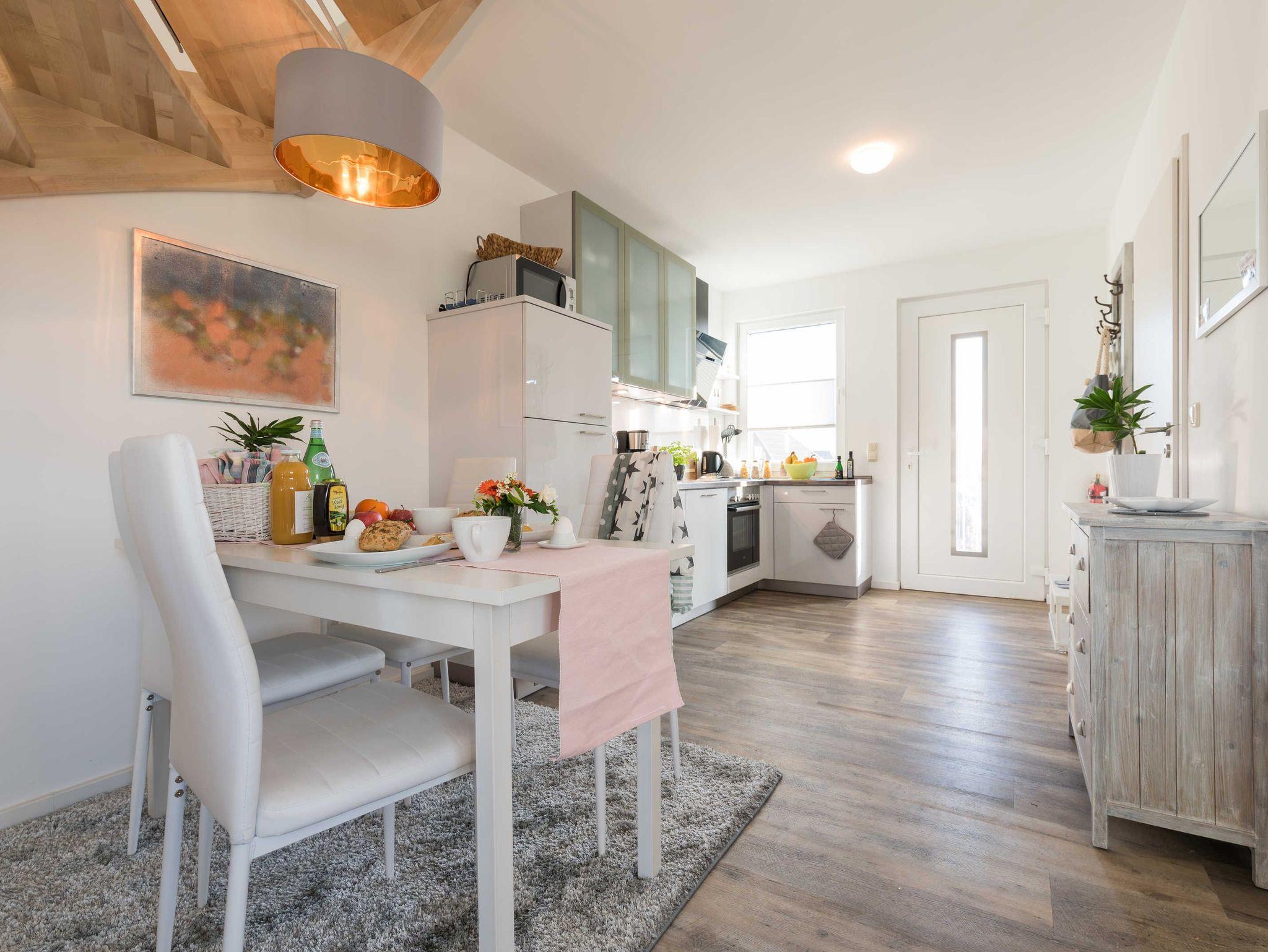 Die liebevoll eingerichtete 2-Zimmer-Maisonette-Zimmerwohnung (1. Obergeschoss und Dachgeschoss) bietet genug Platz für 4 Personen. Bitte beachten Sie, dass die Wohnung nur über eine Gittertreppe erreichbar ist.