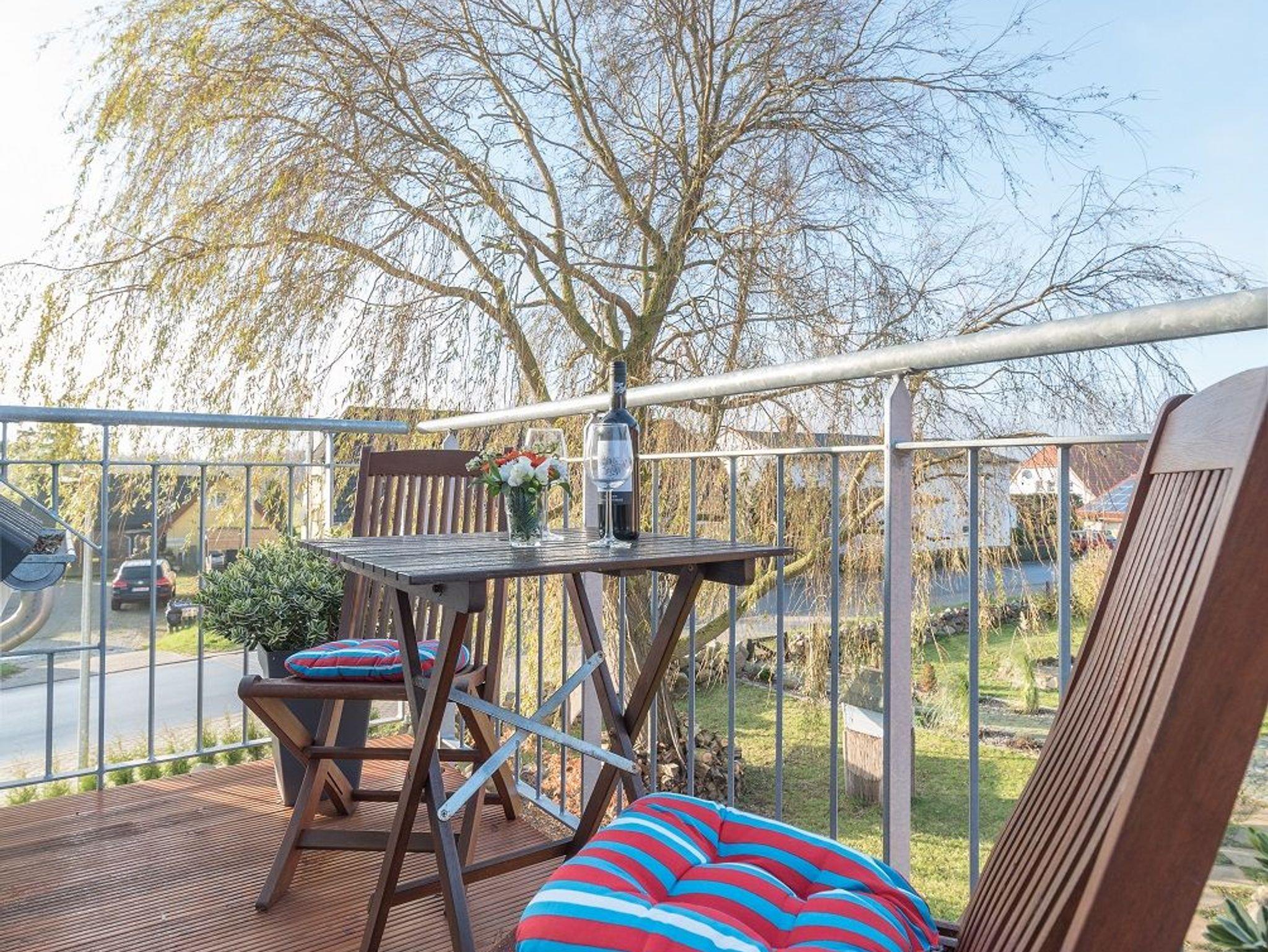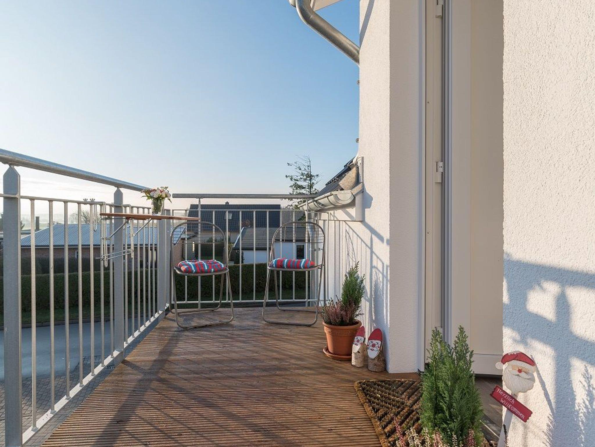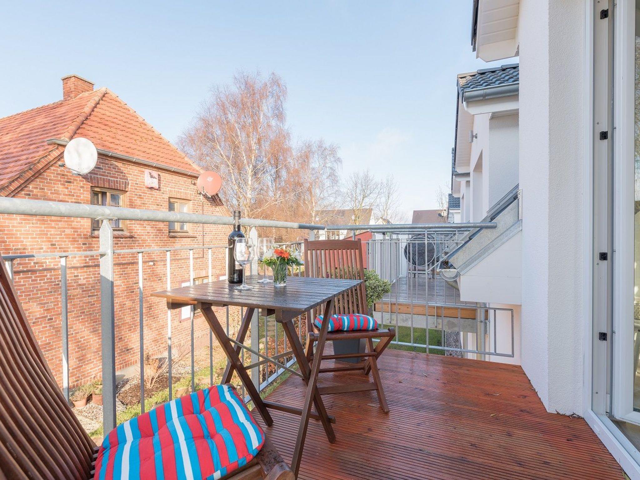 Auf dem Balkon mit Süd-West-Ausrichtung, ausgestattet mit Tisch und Stühlen, können Sie entspannt den Tag ausklingen lassen und die Nachmittags-und Abendsonne genießen.