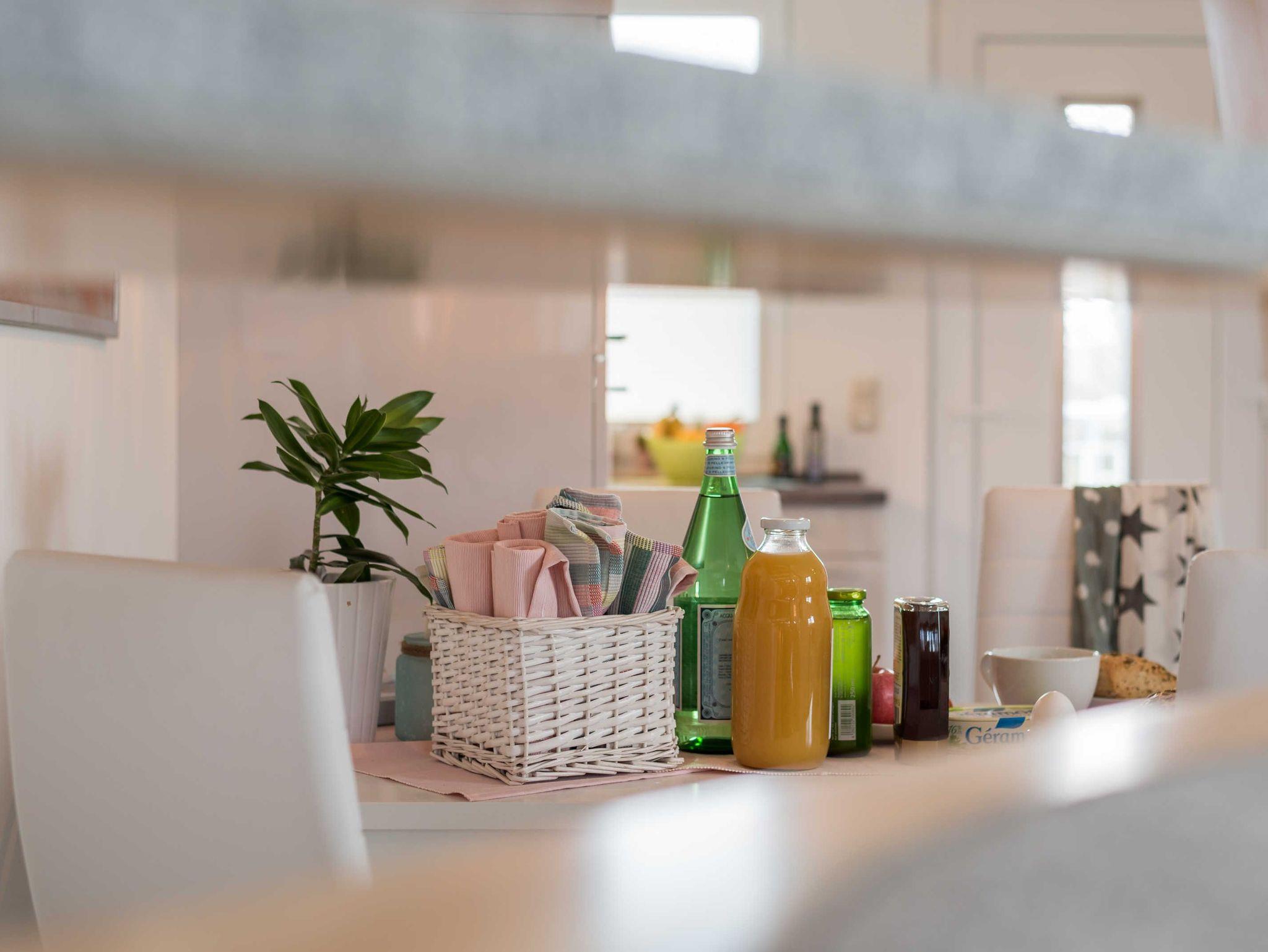 Zudem sind in der Unterkunft ein Staubsauger, ein Dampfbügeleisen mit Tischbügelbrett sowie eine Bücher- und Spielesammlung vorhanden.