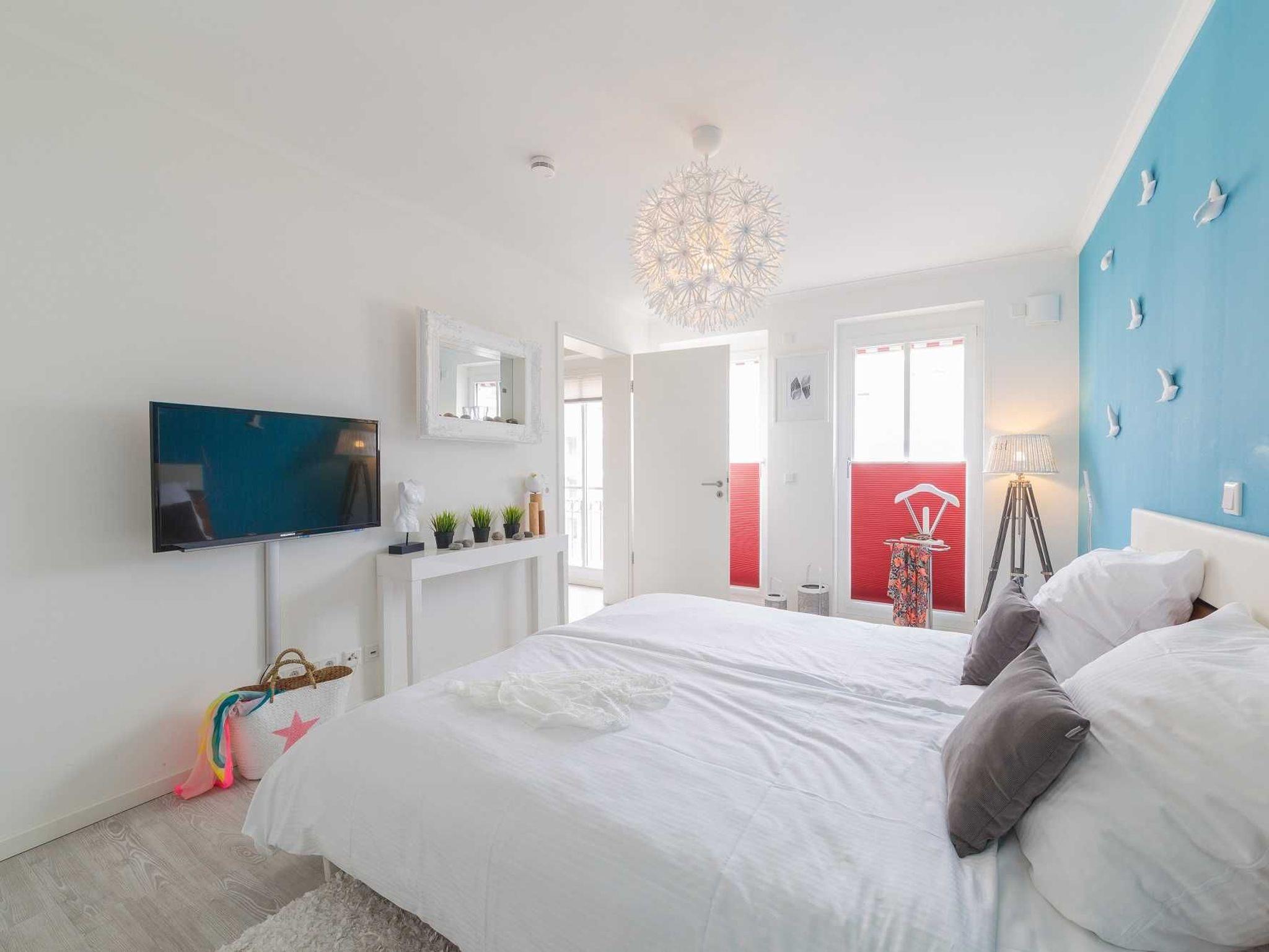 Das Schlafzimmer ist mit hochwertigen Möbeln von HÜLSTA ausgestattet. Das Doppelbett mit Qualitätsmatratzen sichert höchsten Schlafkomfort. Auch im Schlafzimmer steht ein HD-TV-Gerät zur Verfügung.