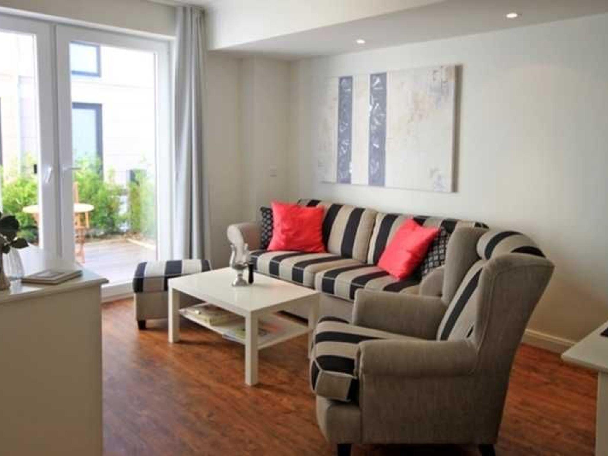 Endlich Zeit zu zweit. Es empfängt Sie der liebevoll eingerichtete Wohn-/ Essbereich mit einer Zweisitzer-Couch, Flatscreen-TV und einem Sessel mit Hocker. Ein großzügiger Esstisch lädt zu gemeinsamen Mahlzeiten. Die Einbauküche ist ausgestattet mit Geschirrspüler, Kühlschrank, inklusive Gefrierfach, Kaffeemaschine, Wasserkocher, Toaster und Mikrowelle. Der offene Schlafbereich verfügt über ein gemütliches Doppelbett (180 x 200 cm /durchgehende Matratze). Das Duschbad besticht mit einem modernen Design, bodengleicher Dusche, Föhn, Waschtisch und Kosmetikspiegel. Im Eingangsbereich befindet sich ein raumhoher Kleiderschrank für Ihr Reisegepäck. Neben Ihrem Wohnungseingang befindet sich zum Innenhof der Villa gelegen eine von einer Hecke umrundete herrliche Terrasse. Die kompakte Ferienwohnung liegt nur 50 m vom Strand entfernt. Eine Fußbodenheizung sorgt in allen Räumen zu jeder Jahreszeit für angenehme Wärme. Zu Ihrer Ferienwohnung gehört ein kostenfreier Tiefgaragenstellplatz. Bitte beachten Sie die Durchfahrtshöhe von max. 1,90 m. Der im Gebäude installierte Aufzug erleichtert den Transport der mitgebrachten Koffer. Über den Innenhof der Villa erreichen Sie den abschließbaren Fahrradraum sowie den angrenzenden Waschraum. Eine Waschmaschine und ein Trockner stehen zu Ihrer Verfügung (gegen Gebühr / 1,00 Euro Münzen). Noch einige Hinweise: Es handelt sich um eine Nichtraucherwohnung. Bis zu zwei Haustiere sind willkommen (10,00 Euro/ÜN pro Tier und einmalig 20,00 Euro Haustierendreinigung). Hundestrände finden Sie in Richtung Heiligendamm in ca. 500m Entfernung. Ab Aufgang 9. In Richtung Nienhagen ab Aufgang Wäschesets müssen kostenpflichtig separat gebucht werden. Sichern Sie sich zusätzlich den einen der begehrten Strandkörbe nur ein paar Meter entfernt von den rauschenden Wellen der Ostsee (Anfang Mai - Ende August) und buchen Sie jetzt zu besonderen Konditionen (12,00 Euro pro Tag oder 75,00 Euro pro Woche).
