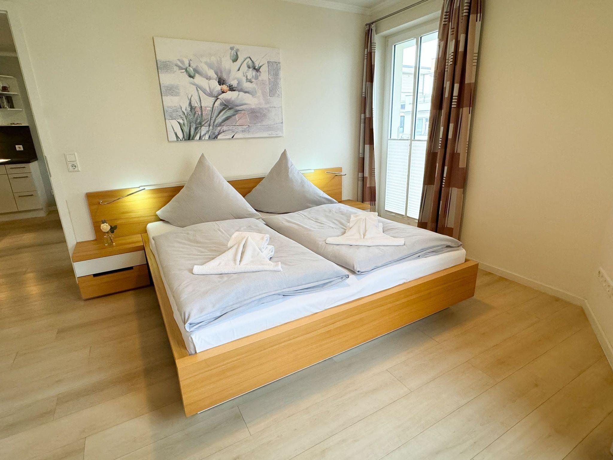 Der im Jahre 2023 neu möblierte große Wohn- und Essbereich bietet Ihnen ein bequemes Sofa mit Ottomanen, einen separaten Sessel sowie zwei kleine Beistelltische. Von hier blicken Sie direkt auf einen hyggeligen Kaminofen (Kaminholz wird nicht bereitgestellt). Die Couch kann schnell zum Schlafsofa für die dritte Person ausgeklappt werden. Außerdem ist ein Samsung Smart TV mit Blu-ray-/CD-/DVD-Player und integriertem Radio vorhanden. Zu Ihrer Unterhaltung finden Sie zudem eine Spielesammlung und einige Bücher. In der offenen Küche finden Sie, unter anderem, ein Cerankochfeld, Backofen, Kühlschrank, Gefrierfach, Mikrowelle, Kaffeemaschine, Wasserkocher, Toaster sowie Handmixer und Pürierstab. An einem großen Holztisch mit Freischwingern aus Leder, können Sie Ihre zubereiteten Mahlzeiten genießen. Oder, bei gutem Wetter, auch auf dem Balkon. Das Schlafzimmer ist mit hochwertigen Möbeln von HÜLSTA eingerichtet und besticht mit einem Doppelbett (180 x 200 cm/ getrennte Matratzen)) mit höhenverstellbarem Kopf- und Fußteil sowie einem geräumigen Kleiderschrank. Von hier aus können Sie ebenfalls den Balkon betreten und einen Blick auf die Ostsee werfen. Im eleganten Duschbad erwartet Sie eine bodengleiche Dusche mit Glaswand. Ein Handtuchtrockner, ein geräumiger Waschtisch mit großem Spiegel und ein Fön, gehören zur Badausstattung. Den möblierten Balkon dieser Wohnung können Sie entweder aus dem Wohnbereich oder auch aus dem Schlafzimmer betreten. Dieser ist nach Osten ausgerichtet und ideal für ein Frühstück bei Sonnenschein. Im Abstellraum finden Sie ausreichend Platz, um Ihre Koffer unterzubringen. Dort finden Sie auch Auflagen für die Balkonmöbel sowie ein Bügeleisen und Bügelbrett. Alle Räume der Unterkunft sind mit einer Fußbodenheizung ausgestattet worden. Ein PKW-Stellplatz steht Ihnen kostenfrei direkt am Objekt zur Verfügung. Außerdem erleichtert der im Gebäude installierte Aufzug den Transport der mitgebrachten Urlaubssachen in Ihr Domizil. Auf dieser Ebene gibt es zudem eine Abstellmöglichkeit für Ihre Fahrräder. Hier noch einige Hinweise: Es handelt sich um eine Nichtraucherwohnung. Haustiere sind nicht erlaubt. Das kostenfreie WLAN in der Unterkunft ist ausschließlich für die Verwendung von Social Media und den Austausch von Bildern mit Familie und Freunden gedacht. Die Nutzung zum Streamen von Filmen ist nicht vorgesehen. Wäscheset, Kinderreisebett und Kinderhochstuhl können kostenpflichtig zugebucht werden. Eine Waschmaschine und ein Trockner stehen im separaten Hauswirtschaftsraum im Untergeschoss der Villa zu Ihrer Verfügung (gegen Gebühr / 1,00 € Münzen). Sichern Sie sich einen der begehrten Strandkörbe nur ein paar Meter entfernt von den rauschenden Wellen der Ostsee (Anfang Mai - Ende August) und buchen Sie jetzt zu besonderen Konditionen (12,00 € pro Tag oder 75,00 € pro Woche). Anmerkung: Auch im Frühling, Herbst und Winter können Sie hier wunderbar entspannen und schöne Ausflüge oder Fahrradtouren zum Gespensterwald in Nienhagen, nach Warnemünde oder nach Heiligendamm, Kühlungsborn und Bad Doberan unternehmen. Dort können Sie das Doberaner Münster besichtigen sowie mit der historischen Bäderbahn „Molli“ fahren.