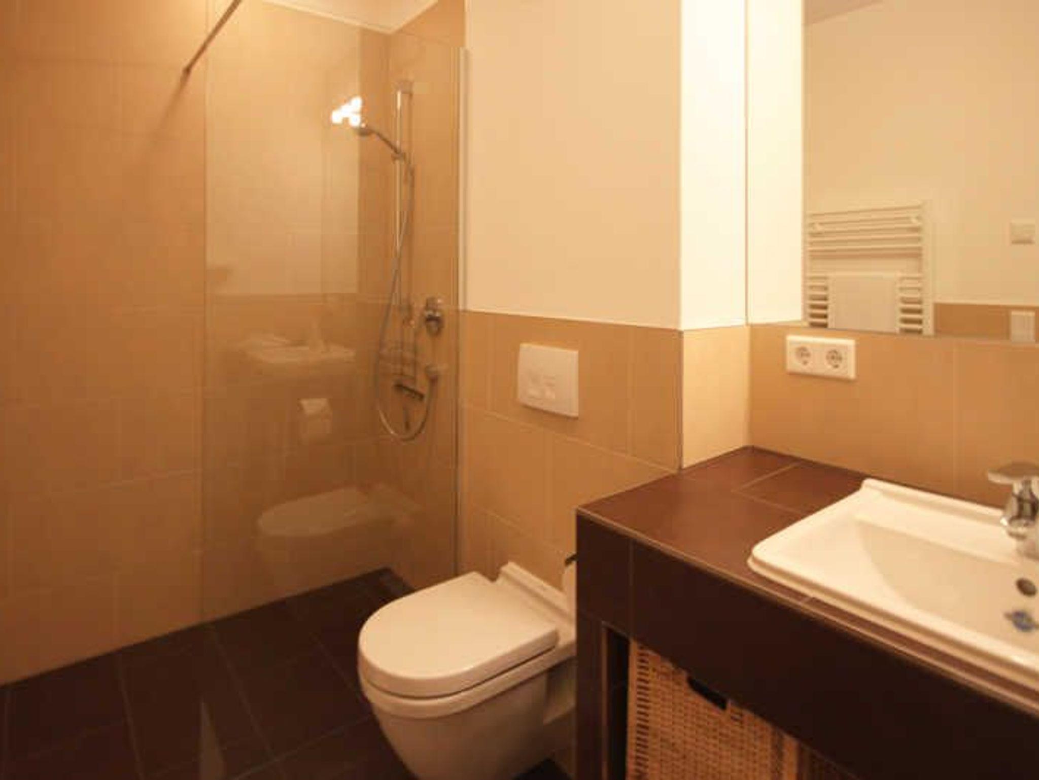 Der Wohnraum dieser Ferienwohnung bietet Ihnen eine große, L-förmige Couch zum Relaxen und Schlafen an. Zur Entspannung gehören auch ein großes TV-Gerät und eine kleine Hi-Fi-Anlage. Im angrenzenden offenen Koch- und Essbereich befindet sich die Einbauküche mit Geschirrspüler, Kühlschrank, inklusive Gefrierfach, Backofen, Herd (Ceranfeld) einer Mikrowelle sowie weiterem Küchenzubehör. Der große Holztisch mit vier gemütlichen Rattan Stühlen lädt Sie zu gemeinsamen Mahlzeiten und Spieleabenden ein. Ein großes Doppelbett und zwei Einzelbetten finden Sie in den beiden Schlafräumen vor. Im großen Schlafzimmer steht Ihnen ein dreitüriger geräumiger Kleiderschrank zur Verfügung. Im kleineren Schlafraum zwei Einzelbetten sowie ein kleiner Schrank. Diese Ferienwohnung wartet praktischerweise mit zwei Duschbädern auf. Beide verfügen über eine bodengleiche Dusche und einen großen Waschtisch mit passendem Spiegel. Eines davon ist mit einem Handtuchtrockner ausgestattet. Auf dem großzügigen, nach Nordwesten hin ausgerichteten Balkon mit einem kleinem Meerblick, lässt sich die Nachmittags- und Sonnenuntergangstimmung perfekt genießen. Natürlich stehen dafür bequeme Balkonmöbel bereit. Ein Abstellraum für Ihr großes Urlaubsgepäck finden Sie ebenfalls in dieser Unterkunft. Eine Fußbodenheizung in allen Räumen sorgt auch im Winter für Behaglichkeit. Zur Ferienwohnung gehört zudem ein kostenfreier Tiefgaragenstellplatz. Bitte beachten Sie die Durchfahrtshöhe von max. 1,90 m. Bei Überschreitung der maximalen Durchfahrtshöhe, besteht die Möglichkeit auf einen kostenpflichtigen Parkplatz in unmittelbarer Nähe auszuweichen. Der im Gebäude installierte Aufzug erleichtert den Transport der mitgebrachten Koffer. Zudem befindet sich im Objekt eine Abstellmöglichkeit für Ihre Fahrräder. Und hier noch einige Hinweise: Es handelt sich um eine Nichtraucherwohnung. Haustiere sind nicht gestattet. Ein Kinderreisebett sowie ein Wäscheset pro Person können kostenpflichtig zugebucht werden. Eine Waschmaschine und ein Trockner (beides Münzautomaten) stehen im separaten Hauswirtschaftsraum im Untergeschoss der Villa bereit. Sichern Sie sich einen der begehrten Strandkörbe nur ein paar Meter entfernt von den rauschenden Wellen der Ostsee (Anfang Mai - Ende August) und buchen Sie jetzt zu besonderen Konditionen (12,00 Euro pro Tag oder 75,00 Euro pro Woche).