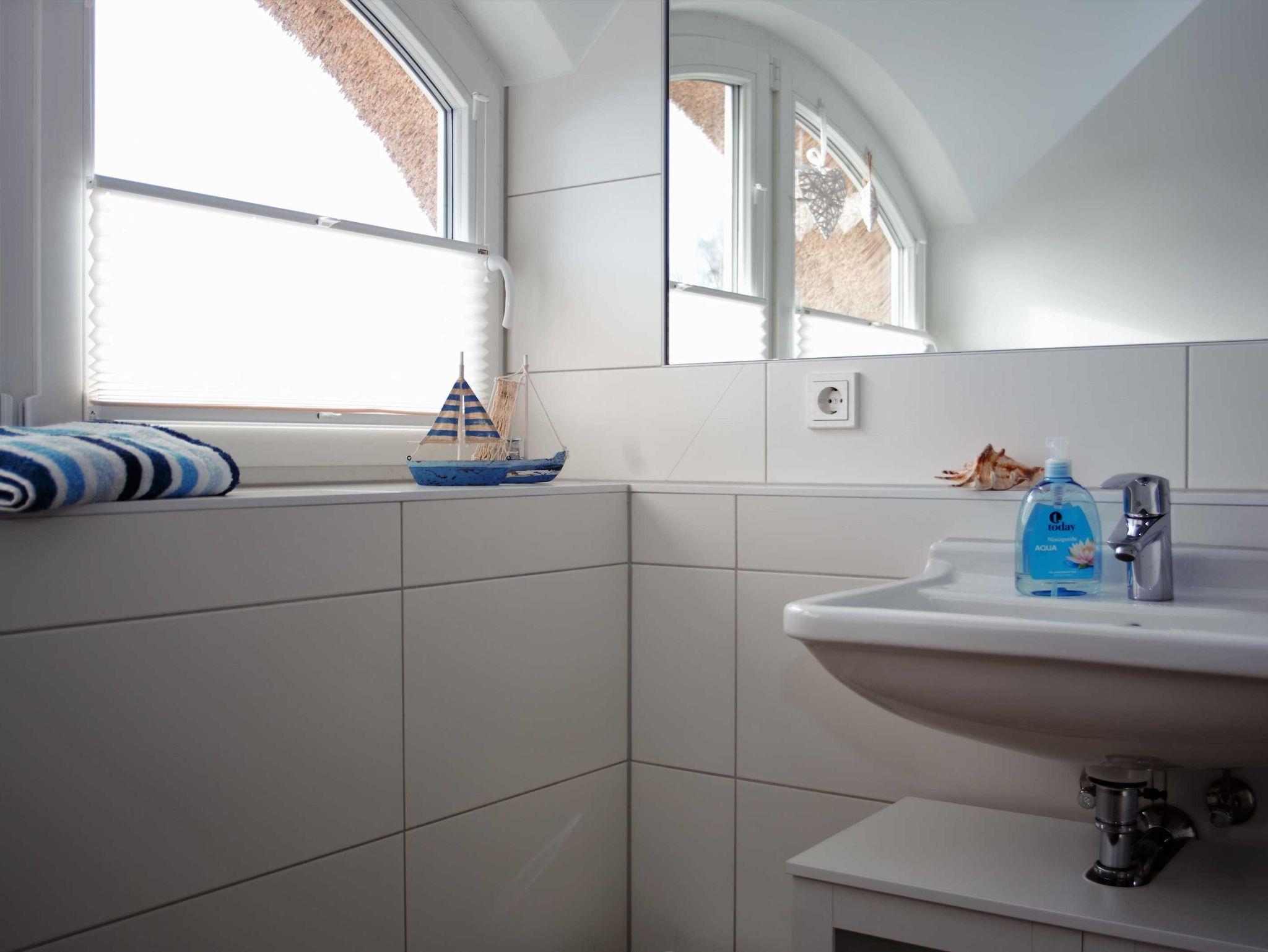 Das fussbodenbeheizte Reetdachhaus erstreckt sich über zwei Etagen, welche über eine wunderschöne, im Wohnbereich integrierte, gewendelte Treppe verbunden sind. Die liebevoll, hochwertig eingerichtete Doppelhaushälfte bietet Platz für vier Erwachsene und zwei Kinder bis 16 Jahre. Zwei Doppelbetten sowie zwei ausklappbare Schlafsessel mit einer Liegefläche von 80 x 195 cm stehen zu Ihrer Verfügung.