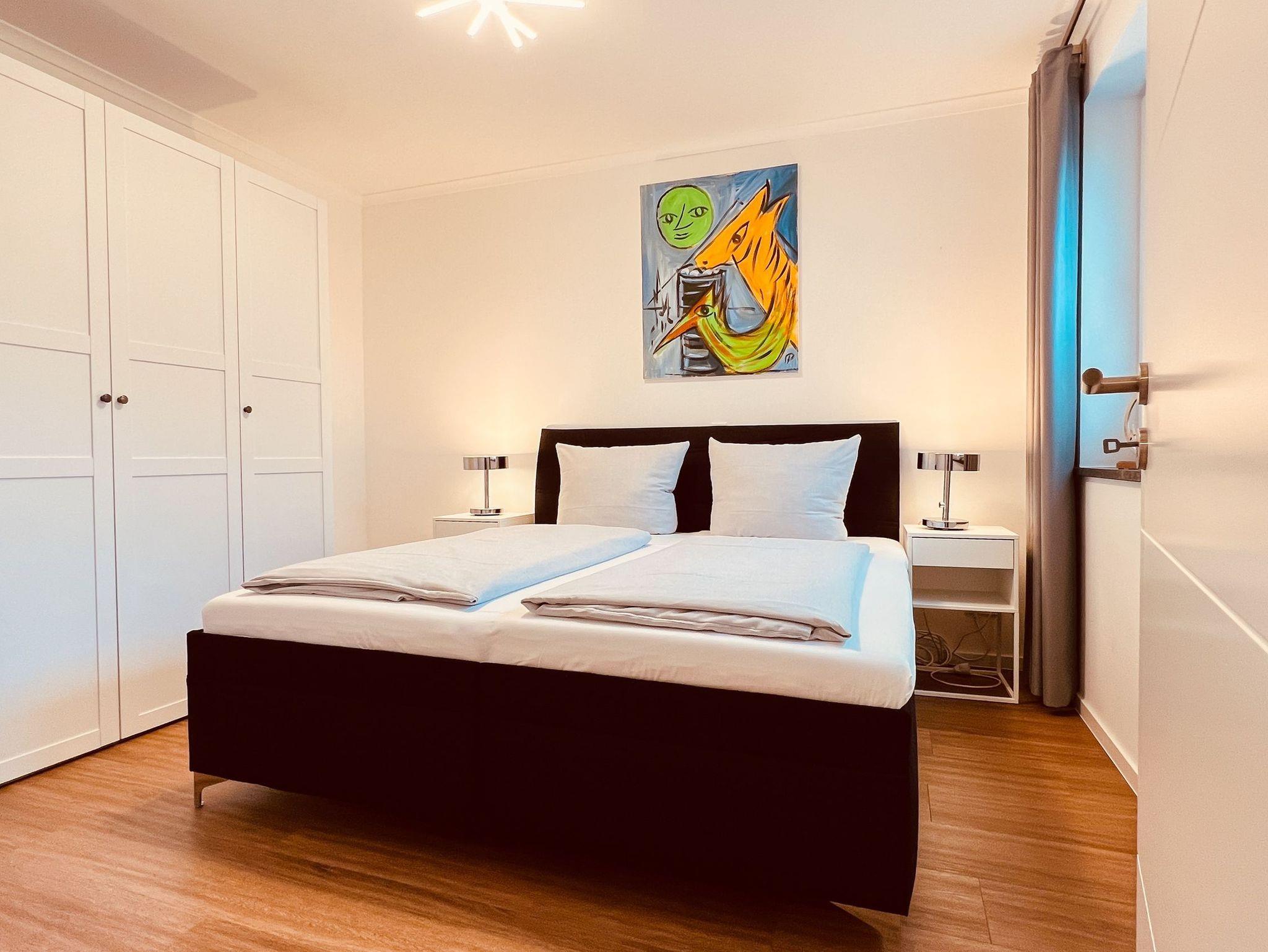 Die beiden großen Schlafzimmer verfügen je über ein großzügiges Boxspringbett (180 x 200 cm / getrennte Matratzen) und ausreichend Stauraum.