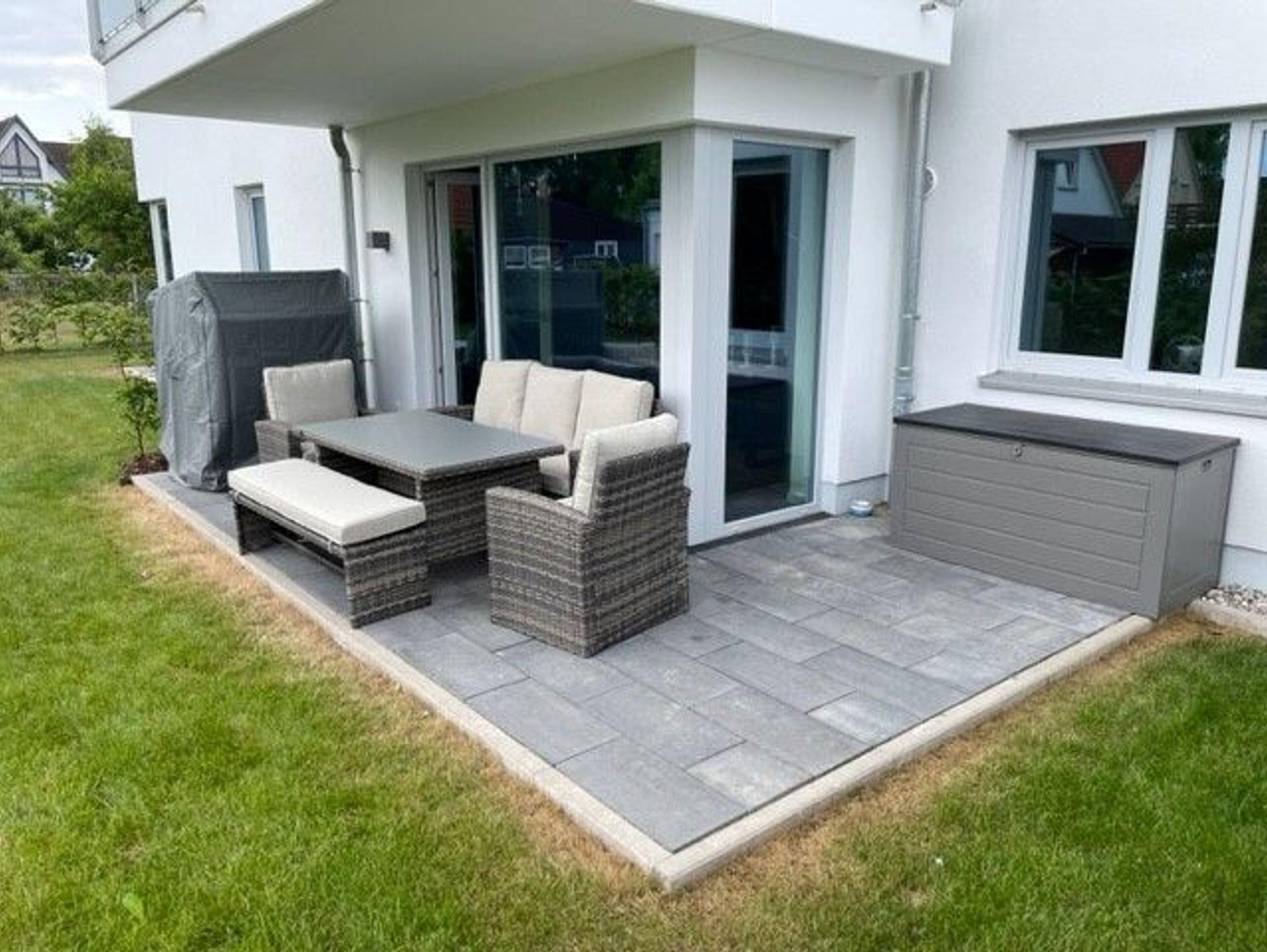 Die Terrasse mit Nord-Ausrichtung, welche Sie direkt über das Wohnzimmer erreichen, bietet ebenfalls einen schönen Essplatz für 6 Personen. Egal zu welcher Tages- oder Nachtzeit - Ruhe und Entspannung finden Sie auch in dem zugehörigen Strandkorb sowie den Gartensesseln.