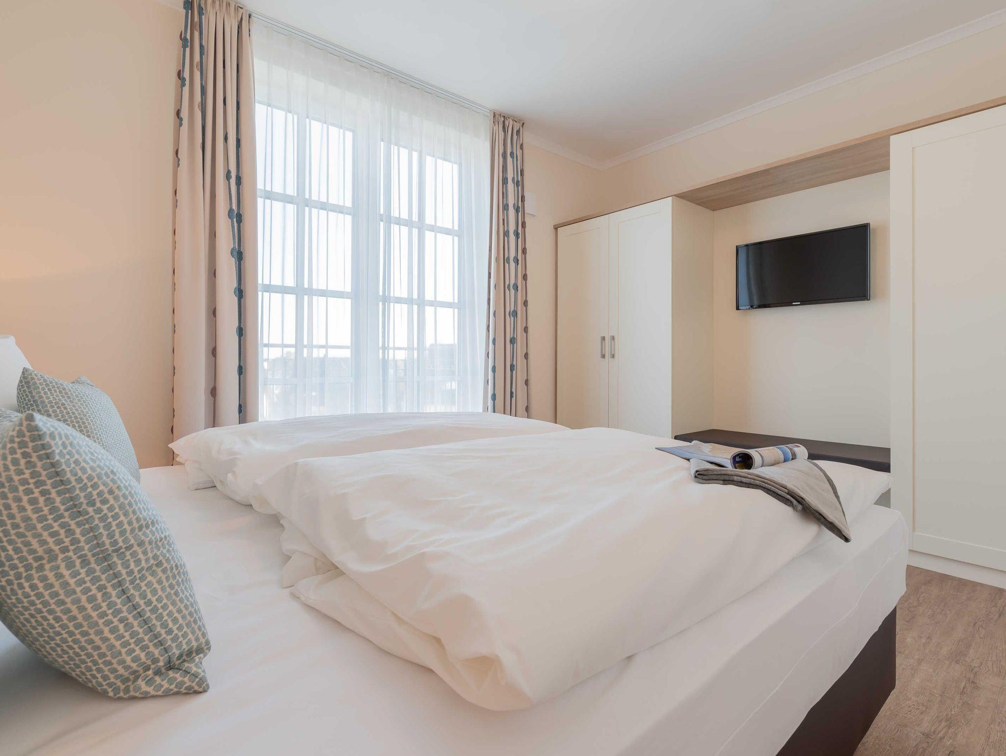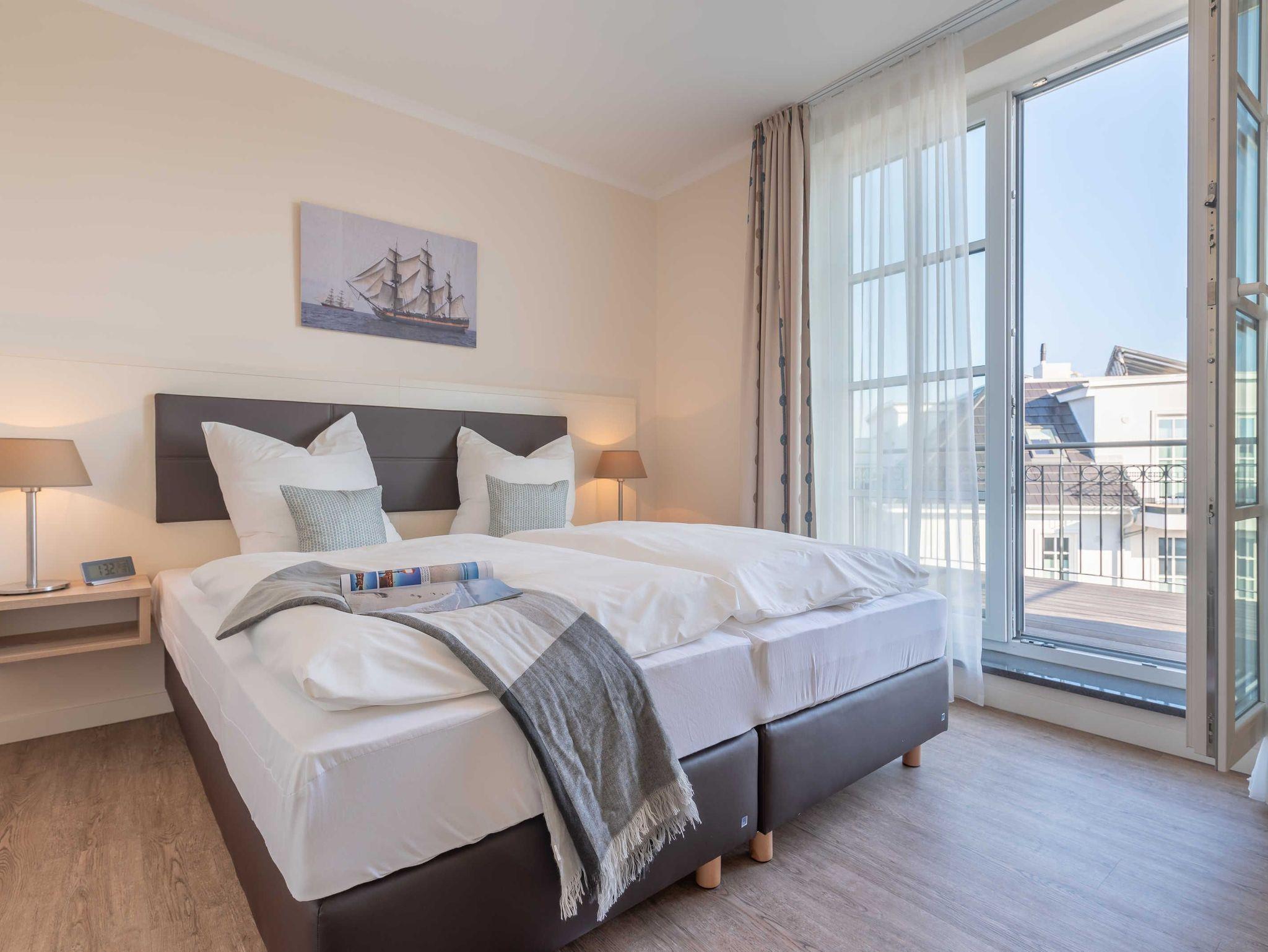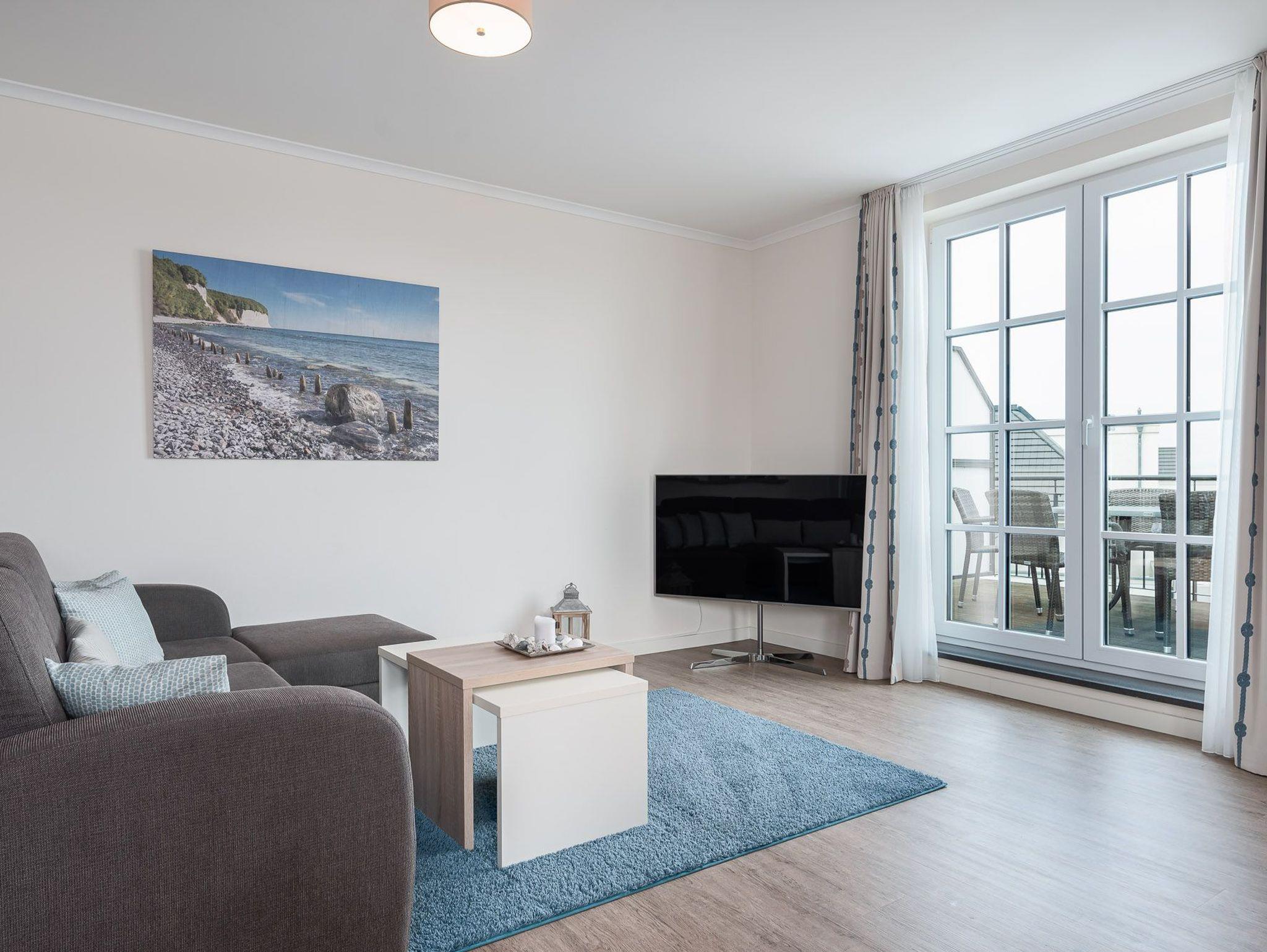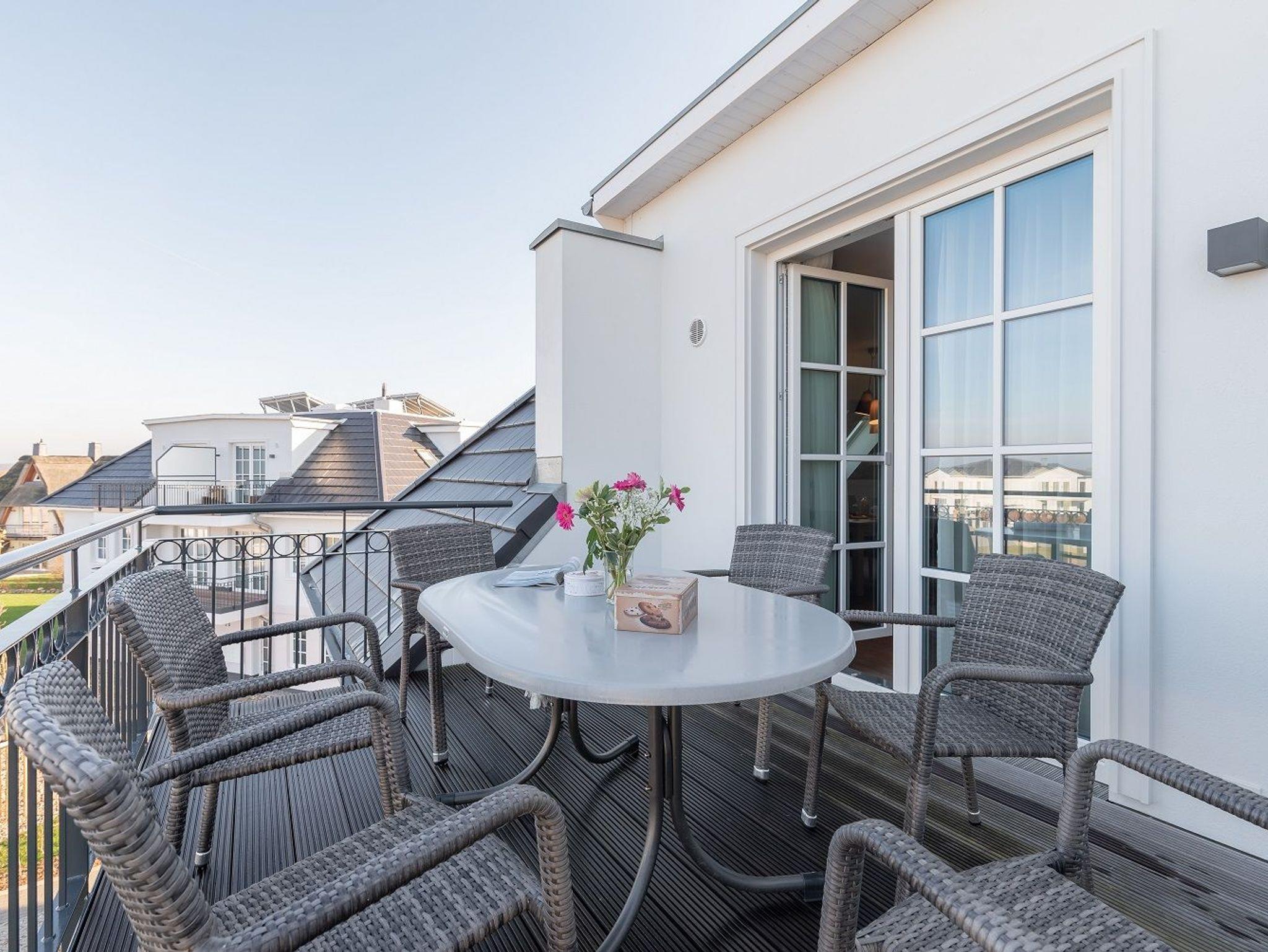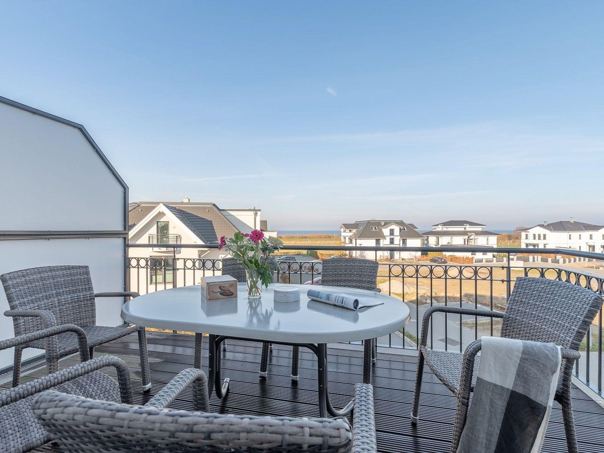 Die liebevoll und maritim eingerichtete 3-Zimmer-Wohnung im Penthouse-Stil in der Villa Strandhafer bietet mit 85 m² und zwei Balkonen (Nord- und Ost-Ausrichtung) viel Platz zur Entspannung und Erholung für bis zu sechs Personen. Der großzügige Wohn- und Essbereich lädt nicht zuletzt durch eine gemütliche Couch mit TV und einer kleinen Leseecke zum Wohlfühlen ein. Im Wohnbereich befindet sich eine Schlafcouch für zwei Personen. Der direkt vom Wohnzimmer aus betretbare Dachbalkon bietet einen schönen Blick zur Ostsee und macht gerade in lauen Sommernächten Lust auf einen Spieleabend. In den Herbst- und Wintermonaten sorgt die Fußbodenheizung in der kompletten Wohnung für Wärme und Gemütlichkeit. Des Weiteren verfügt die Wohnung über ein großes Schlafzimmer mit Doppelbett, zwei Kleiderschränken und TV. Als kleines Highlight betreten Sie nur von diesem Zimmer aus einem großzügigen Balkon der zu romantischen Abenden zu zweit einlädt. Im zweiten Schlafzimmer befinden sich zwei Einzelbetten (90 x 200 cm) sowie ein Kleiderschrank. Im geräumigen modernen Badezimmer finden Sie eine ebenerdige Dusche und ein Waschbecken mit großem Spiegel. Die sich in der Wohnung befindliche ?smarte? Einbauküche lässt mit Backofen, Geschirrspüler, Ceran-Kochfeld mit Abzugshaube sowie einem Kühlschrank mit Gefrierfach keine Wünsche offen. Wasserkocher, Kaffeemaschine, weitere Küchengeräte und Geschirr sind selbstverständlich enthalten. Ein Föhn, Staubsauger und weitere Haushaltsutensilien gehören zur Ausstattung der Wohnung. Eine Fußbodenheizung sorgt in allen Räumen für wohlige Wärme.